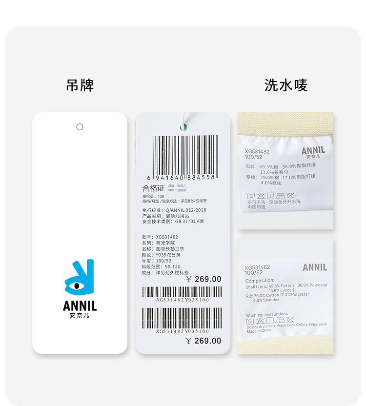 【实体店同款】女童圆领长袖卫衣秋季新款安奈儿童装XG531482