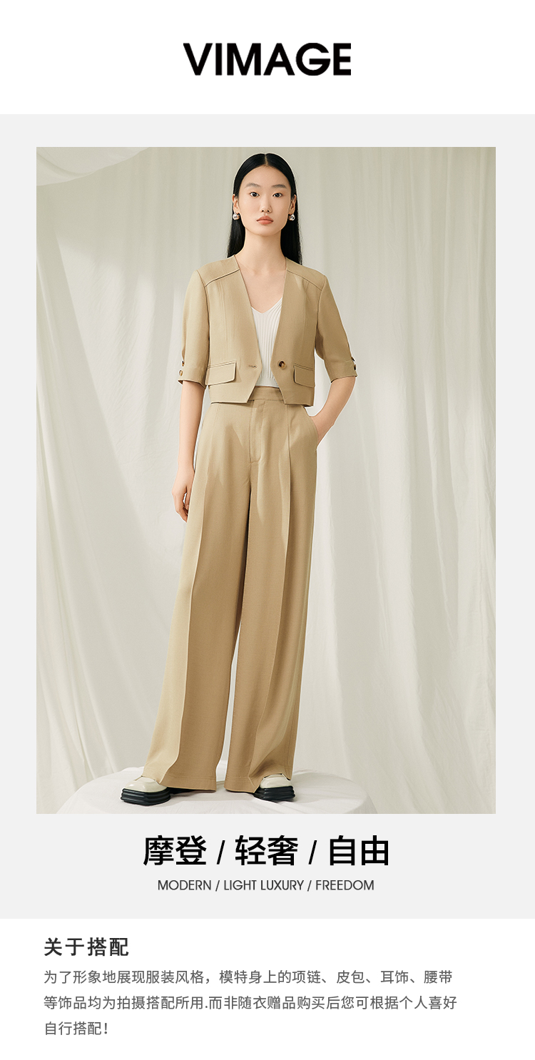 VIMAGE纬漫纪通勤职业显瘦直筒长裤女裤VA2105103