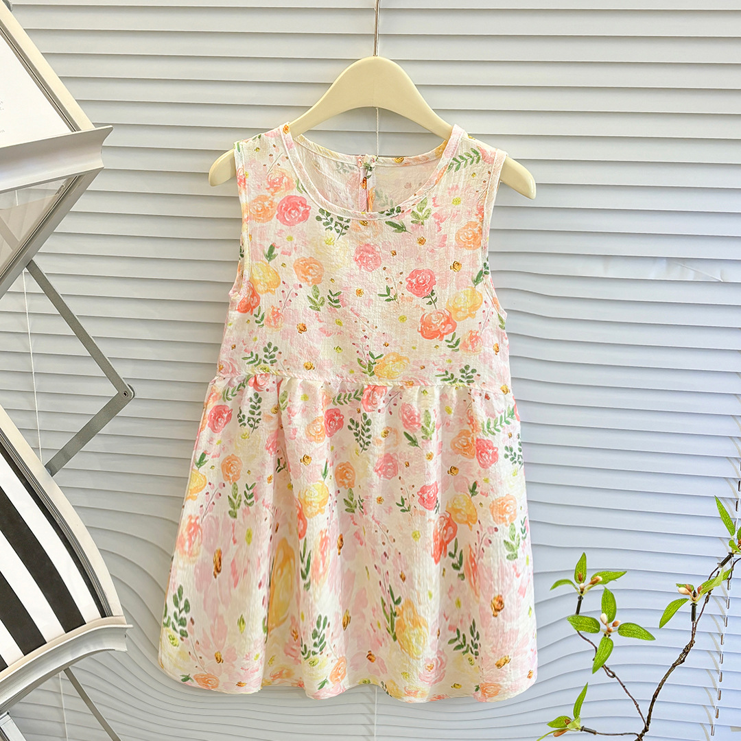 【29.9/任选2件起女童夏季薄款连衣裙】儿童泡泡棉宽松无袖背心裙宝宝碎花休闲长裙子