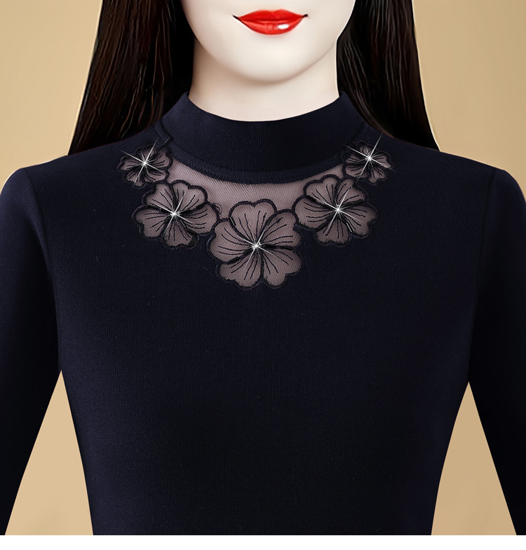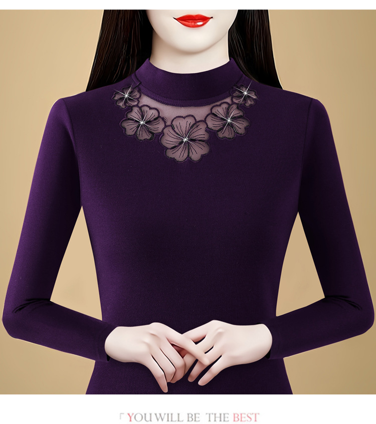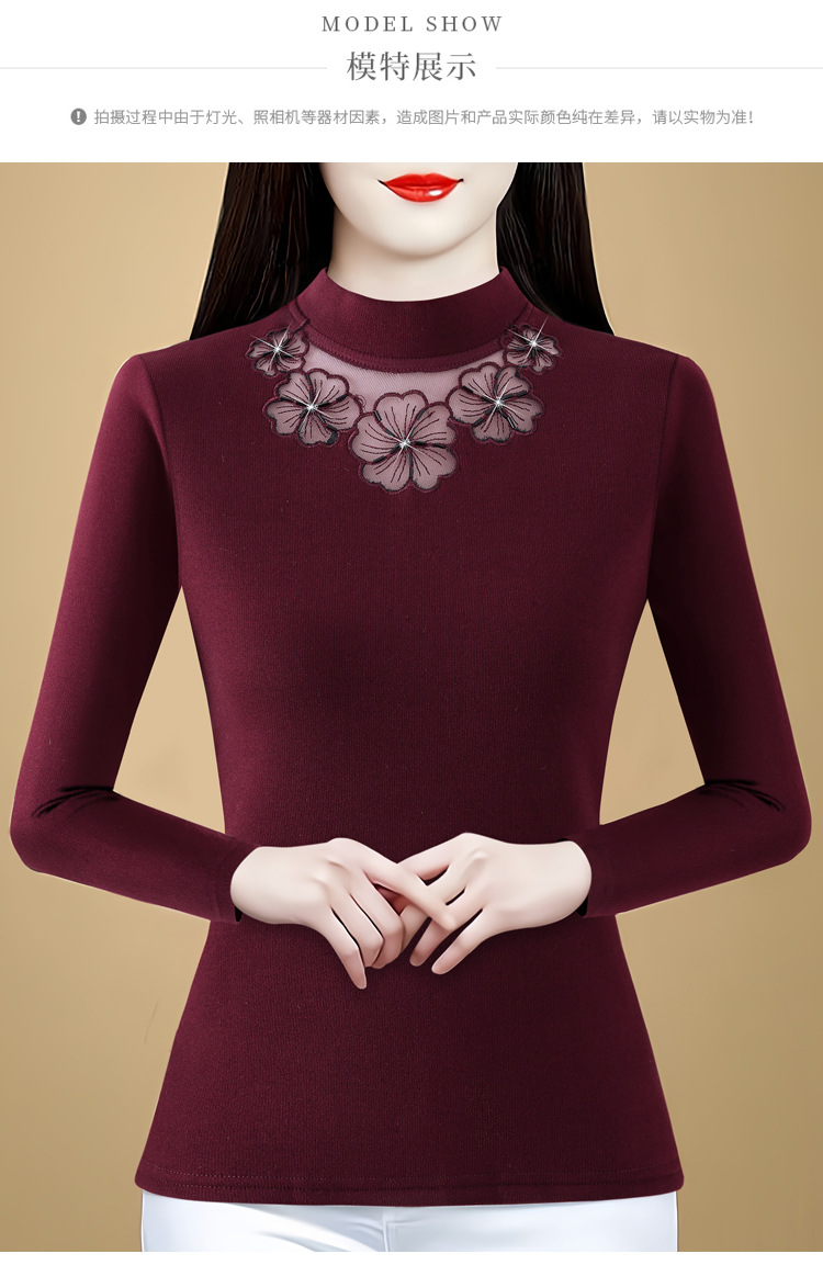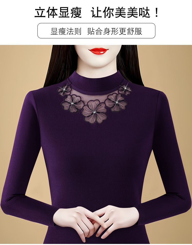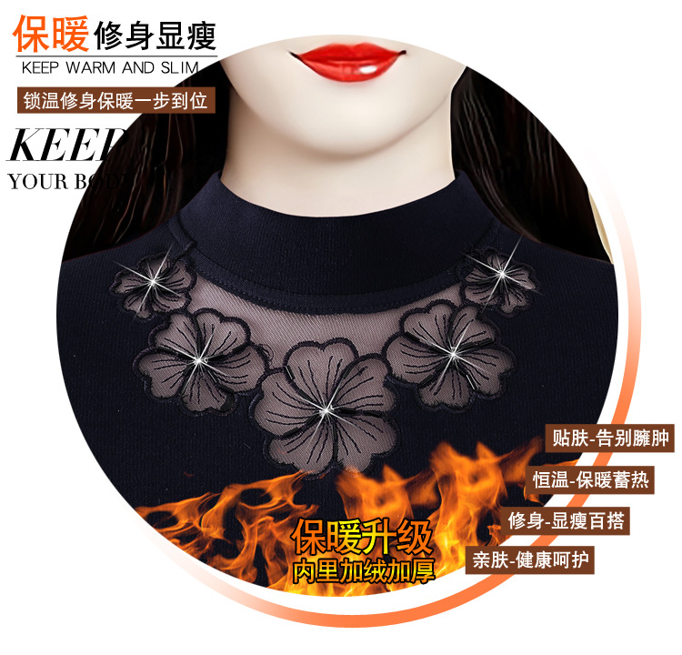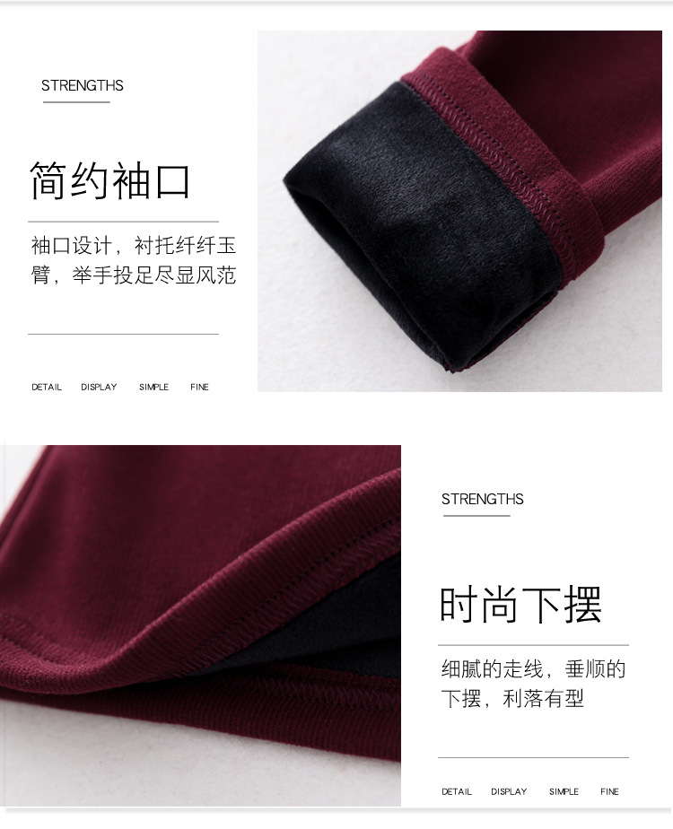 KQL 765G509圆领长袖加绒加厚一体双面绒打底衫小衫洋气上衣