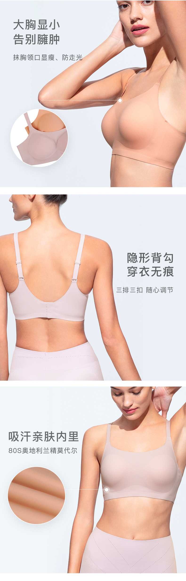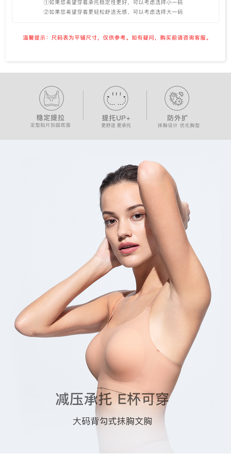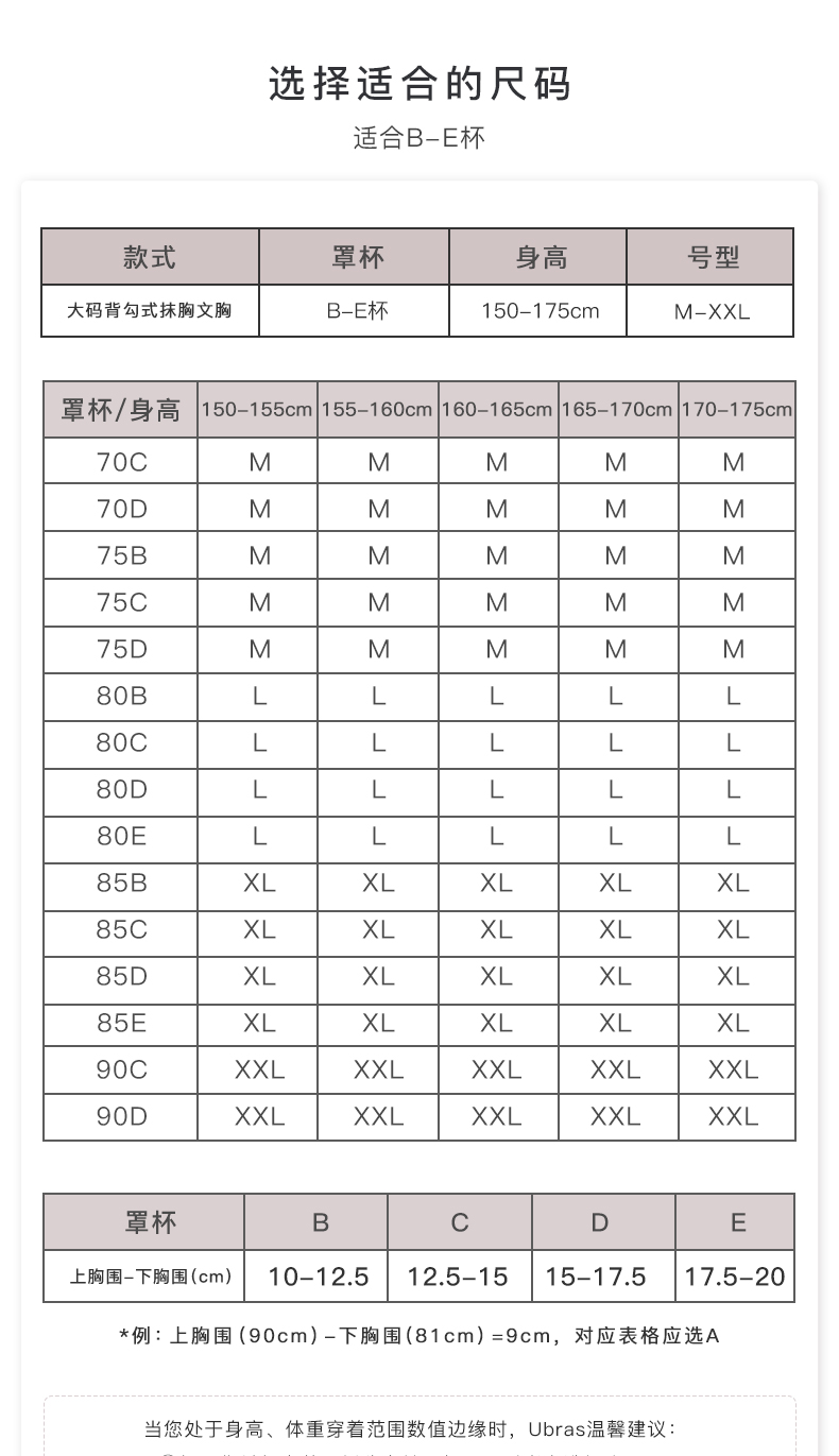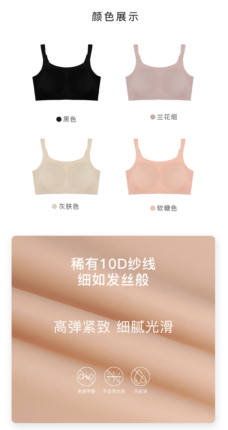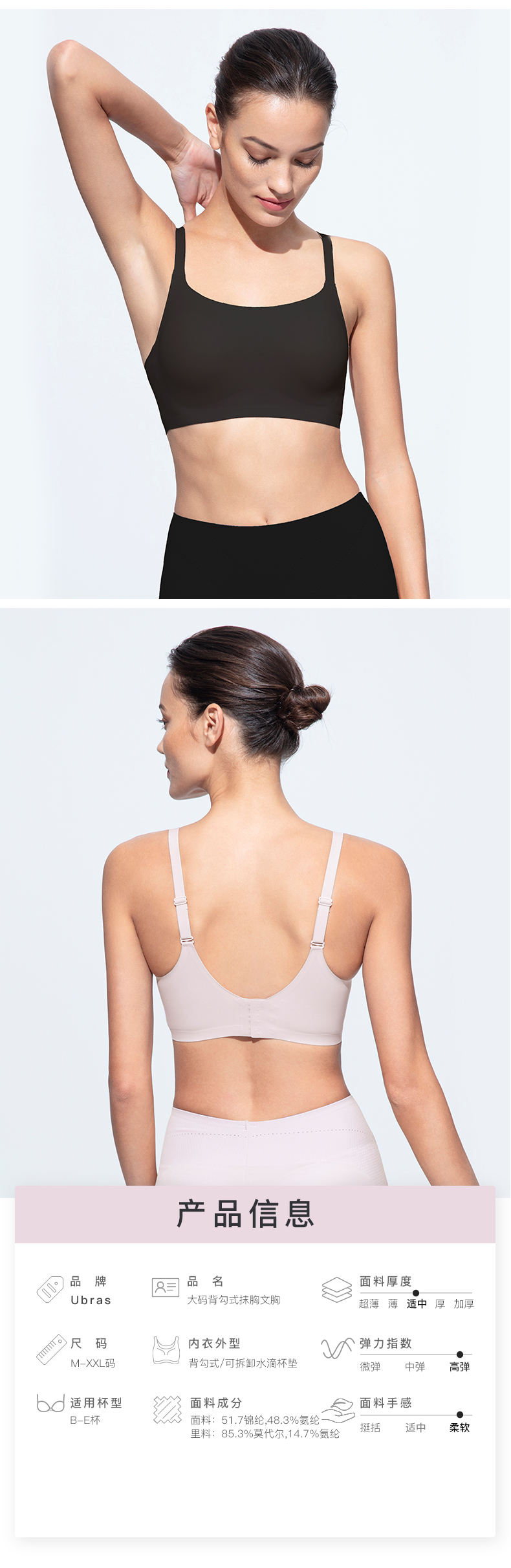 Ubras大码背勾式抹胸文胸内衣女无钢圈无痕轻薄透气
