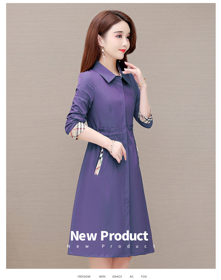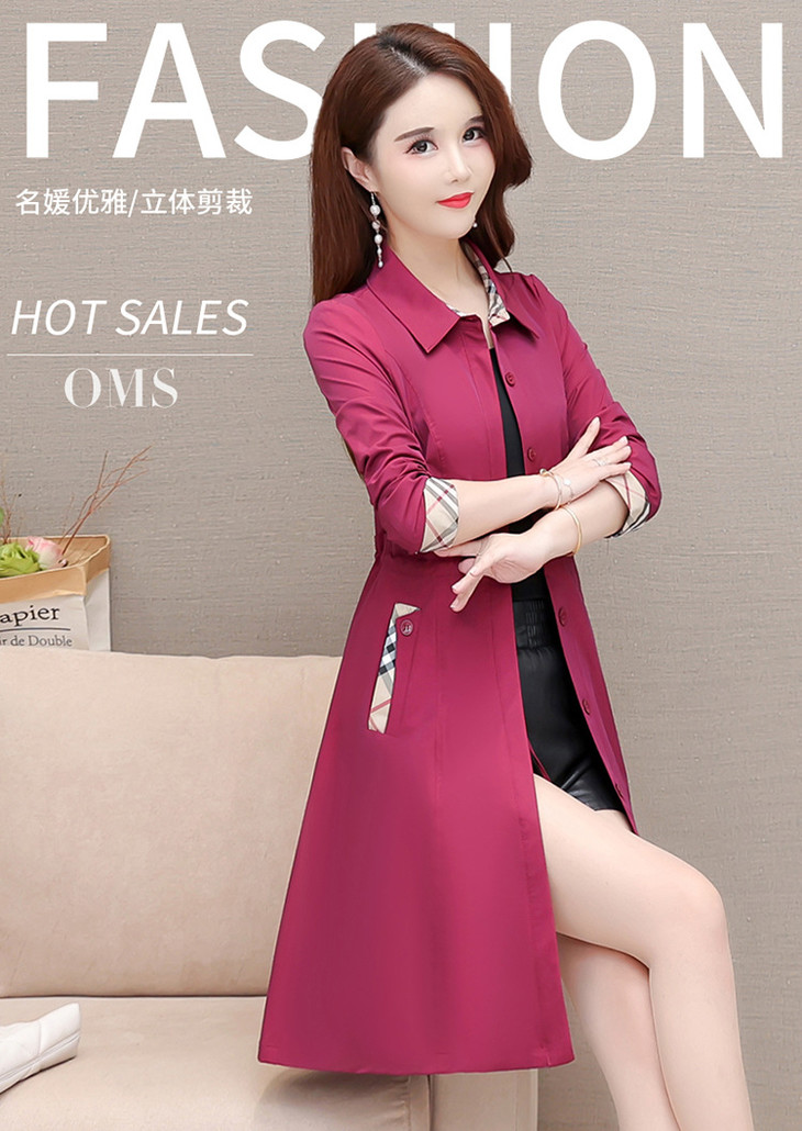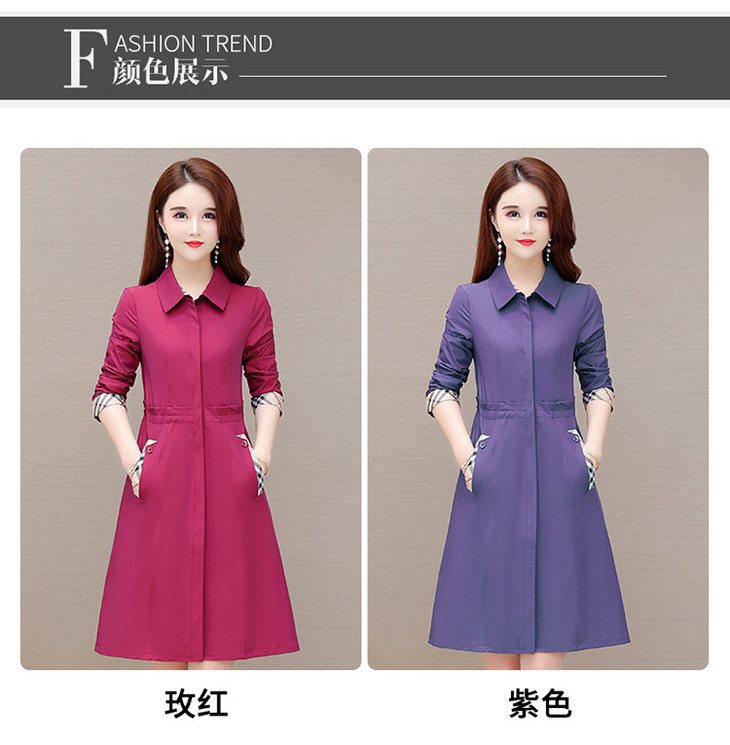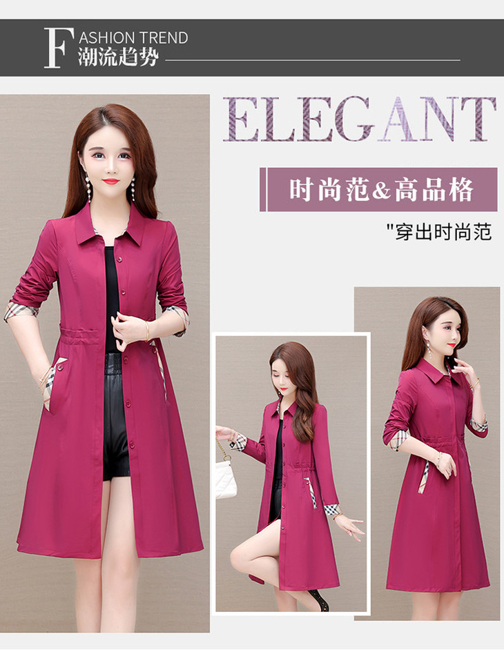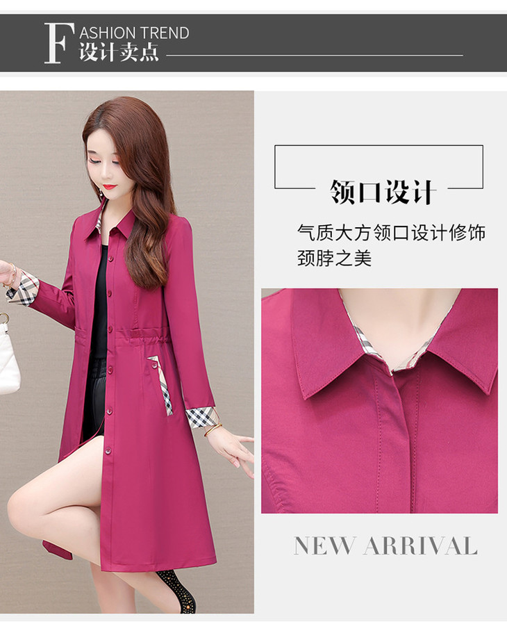 QYM-OMS-SLB102-L翻领长袖格子拼接气质风衣