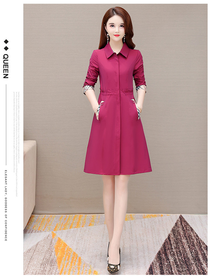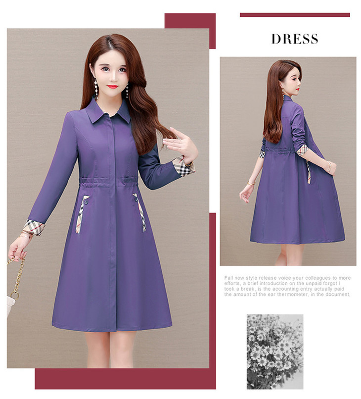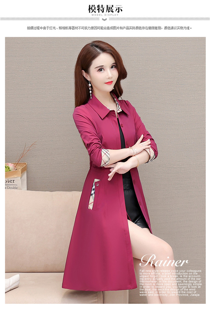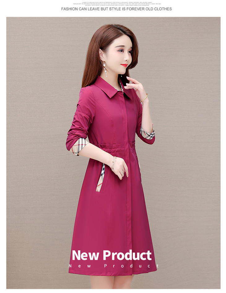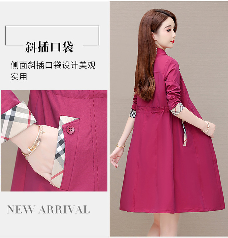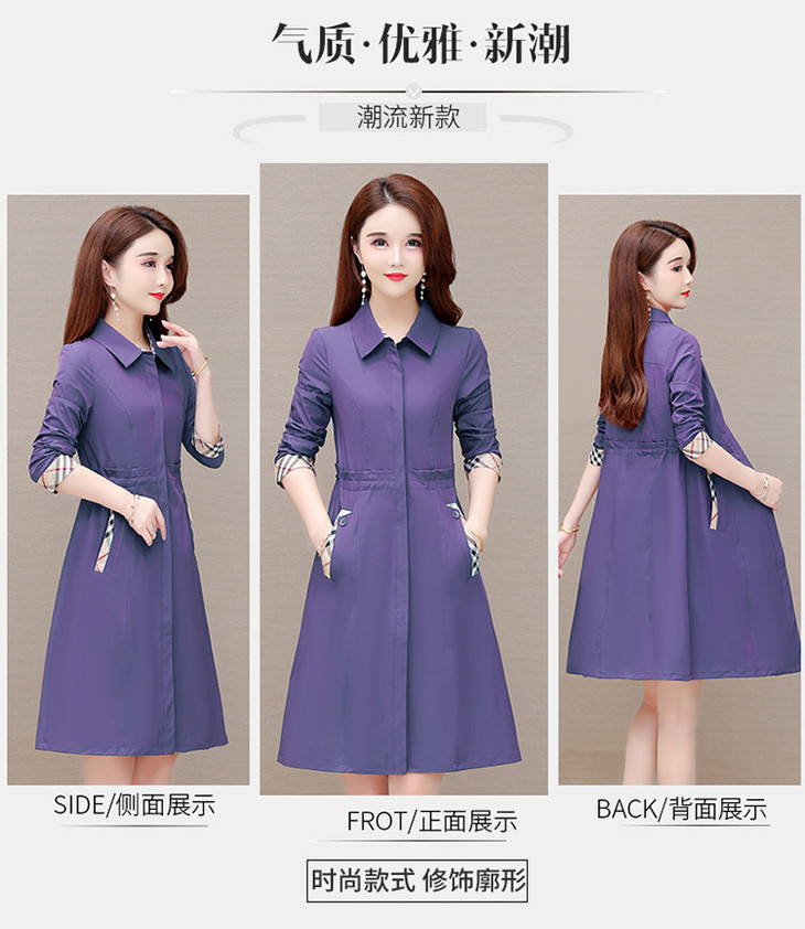 QYM-OMS-SLB102-L翻领长袖格子拼接气质风衣