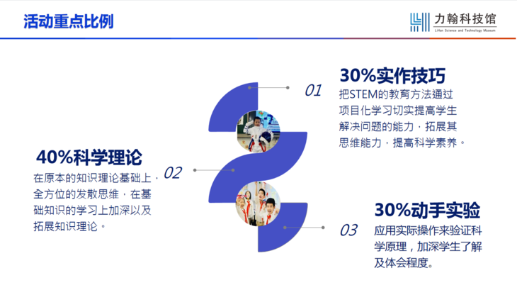 - 力翰科技馆积极响应国家政策,设置了丰富有趣的中小学生课后服务活动,不仅能协助学校课后服务工作的开展,也能解决家长在工作日按时接送学生困难,更能在活动中培养学生的素养与动手实践能力。