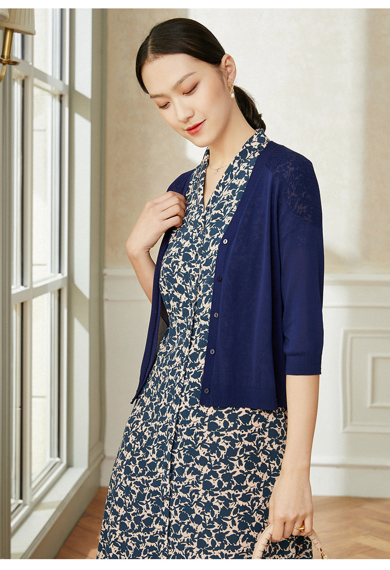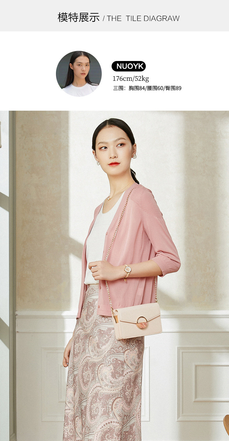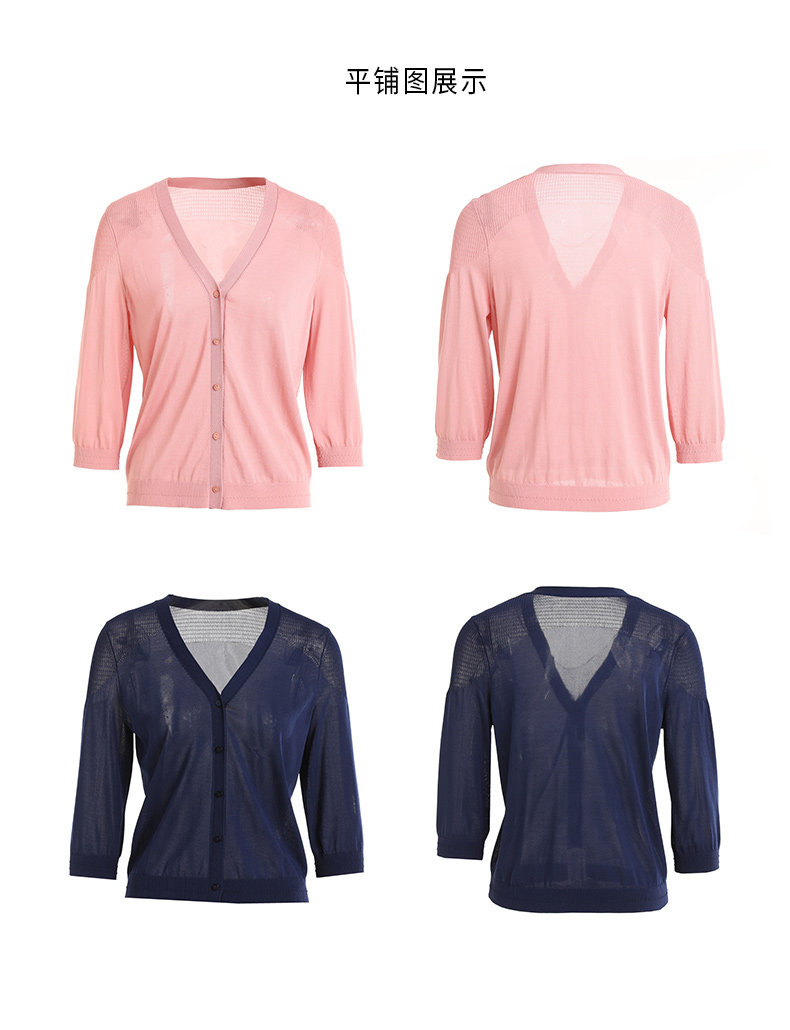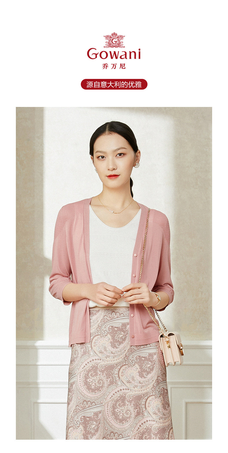 【两色可选】乔万尼针织衫薄款女开衫冰丝上衣女v领外套七分袖早春新款EI2M813