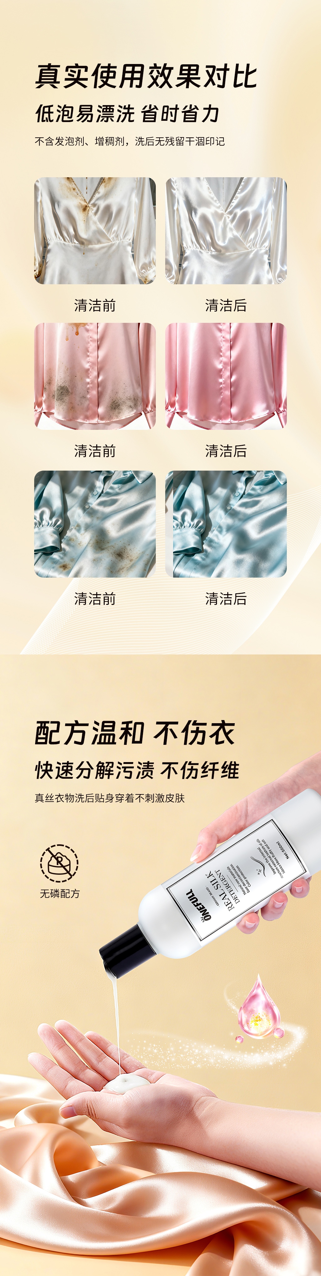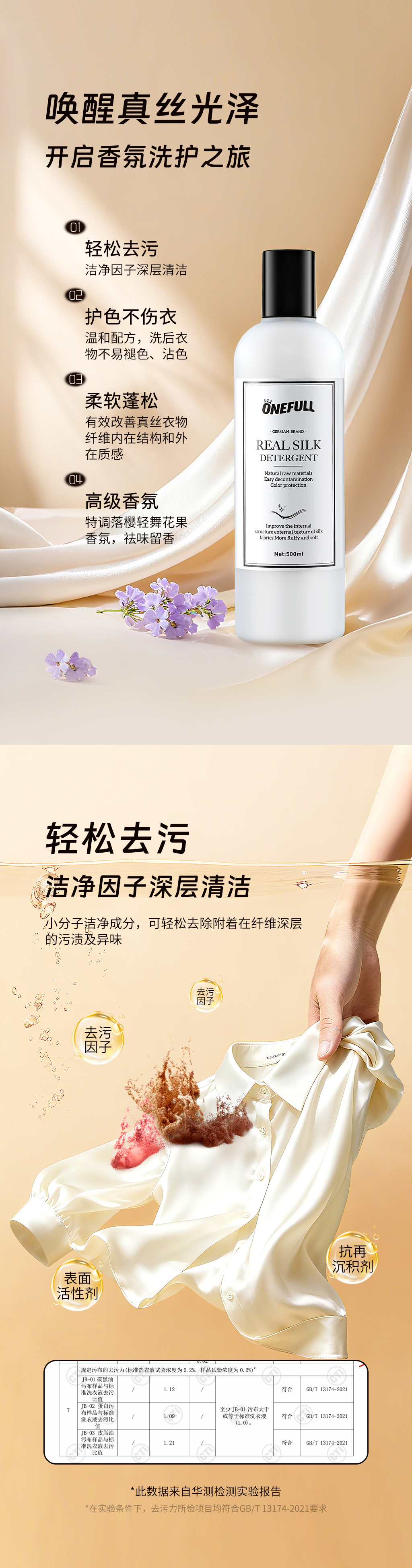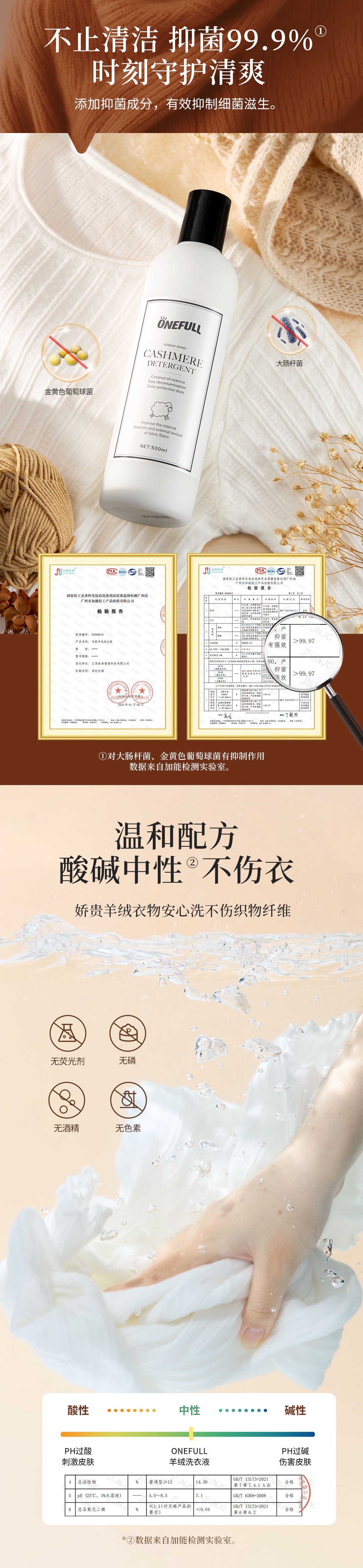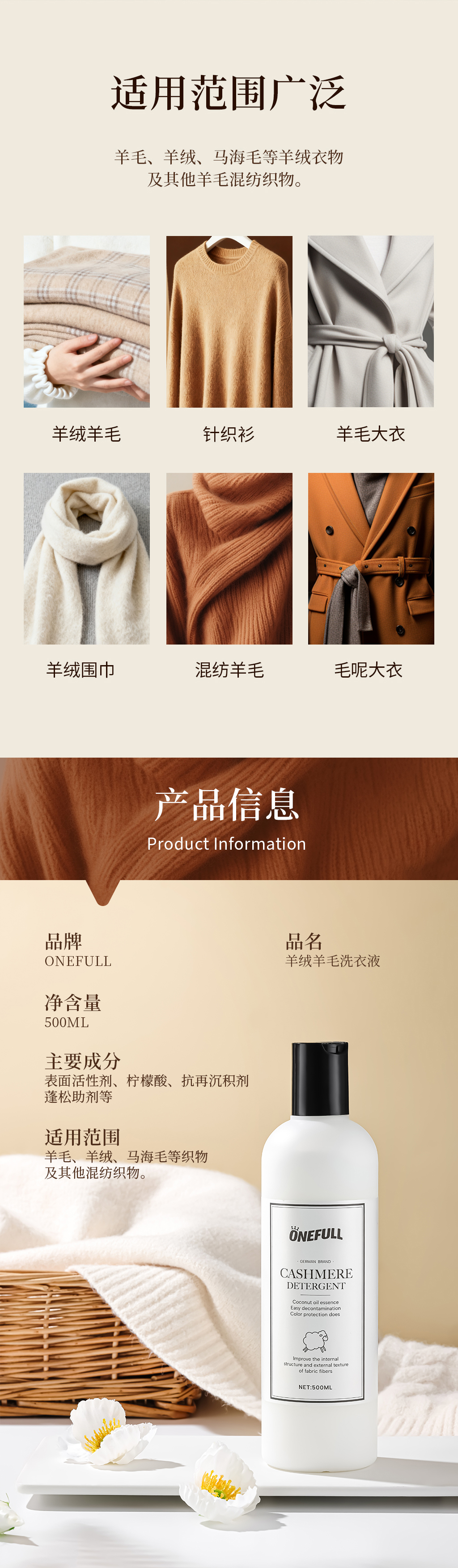 onefull羊毛/真丝/羽绒服/羊毛还原蓬松剂高端洗护系列(下单即赠羽绒服清洁湿巾12片/包*2包)