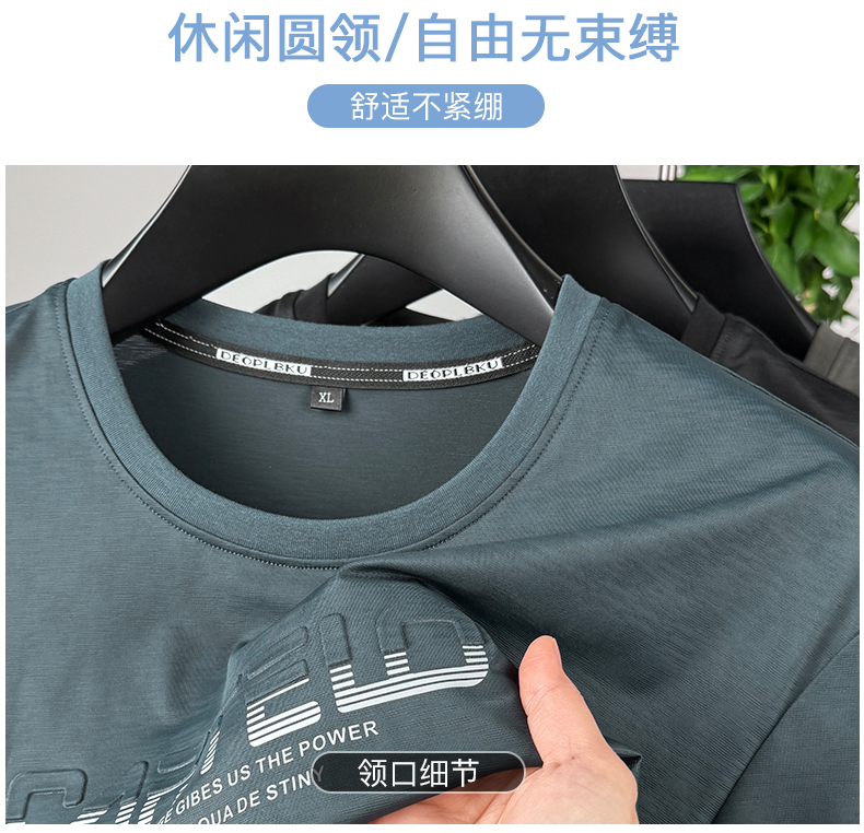【冰丝高弹】【新款DPF】大依优型大码短袖T恤加肥加大男装大号大码上衣男士休闲半袖夏季