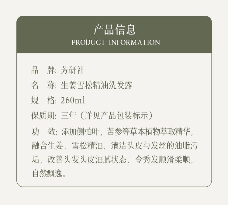 【买1送1】 芳研社 | 第三代生姜雪松洗护套洗发露260ml+护发素260ml