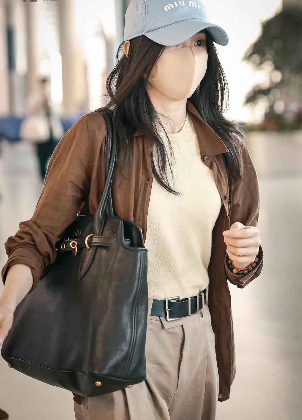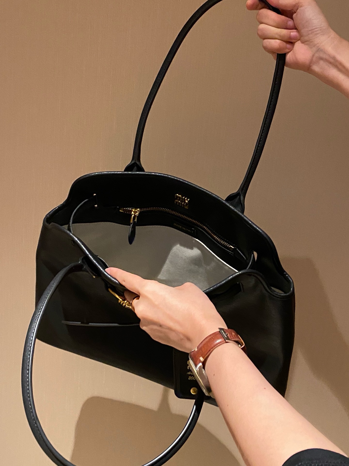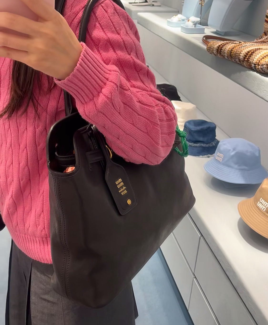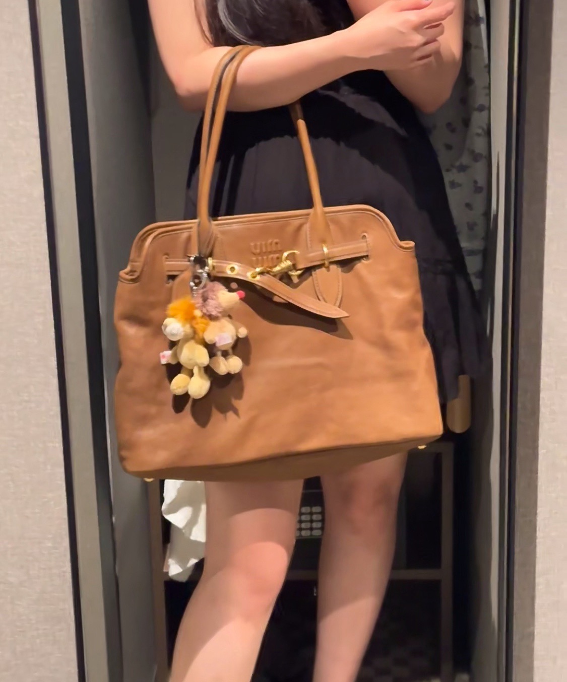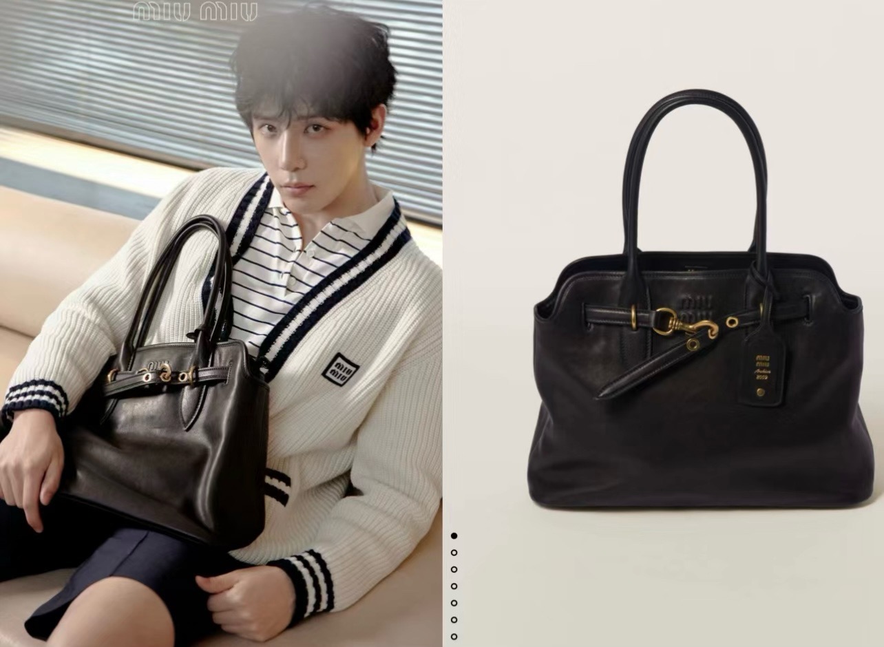 miu'miu这么多款式里,我最喜欢的还是大手提包,简单的 Logo浮雕设计,搭配长方形的包身和偏长的手柄,拎在手里更有年轻、潇洒的态度!