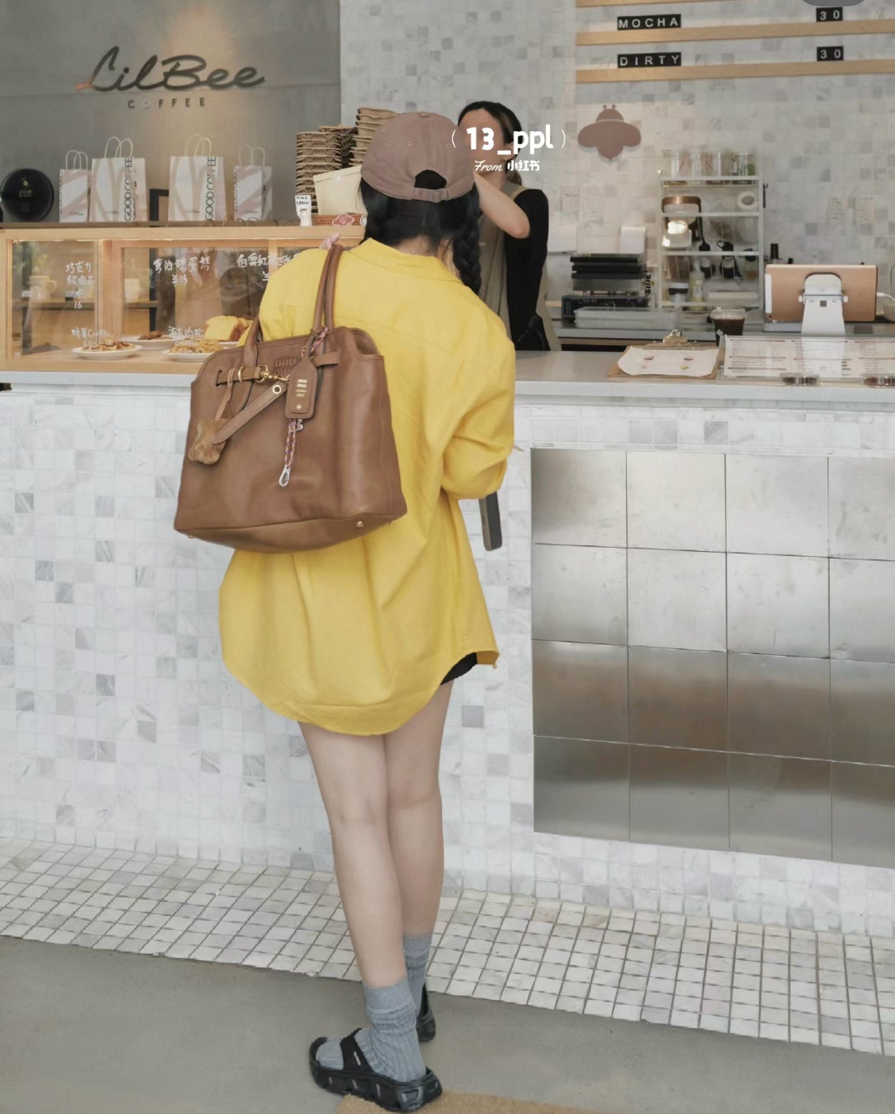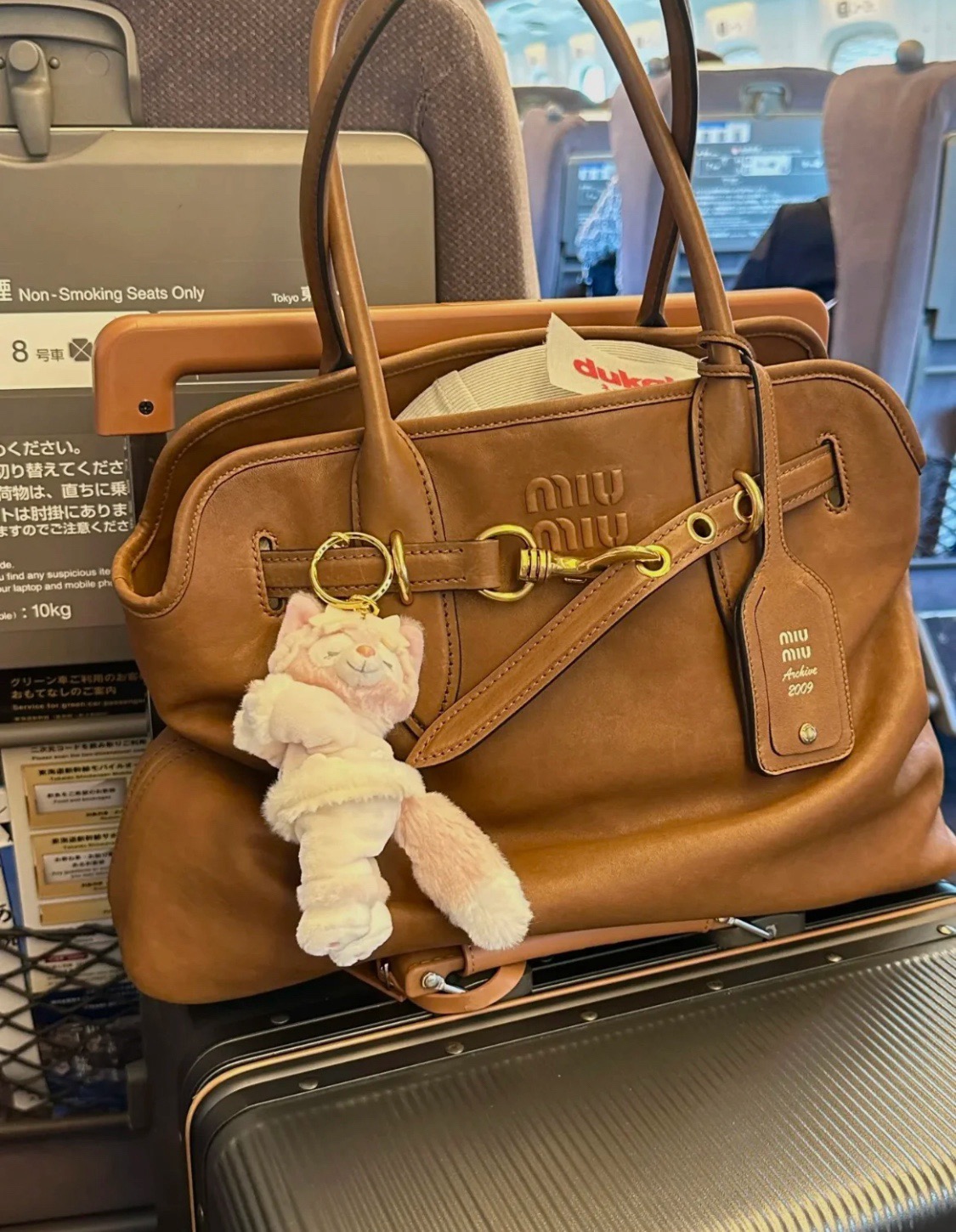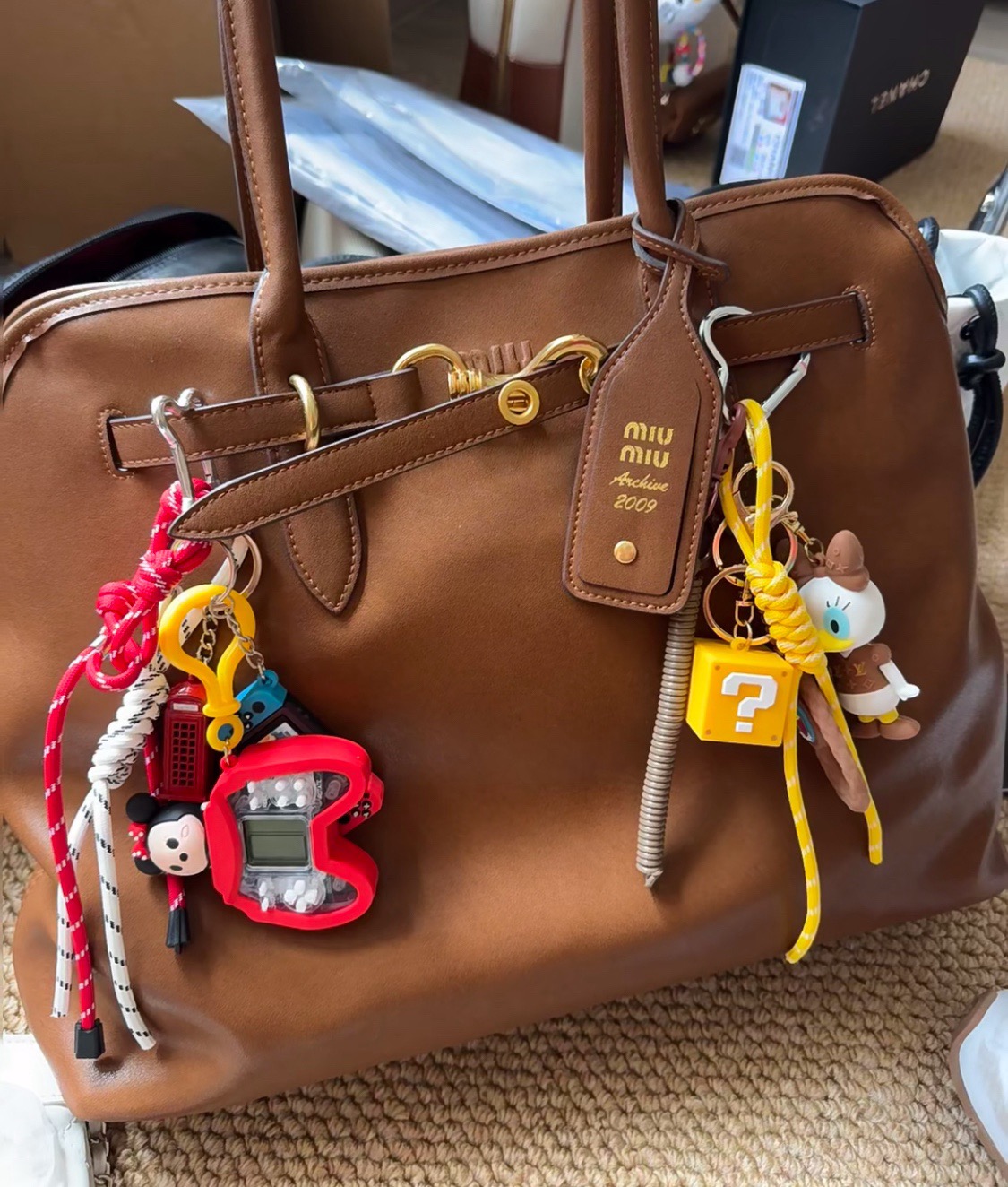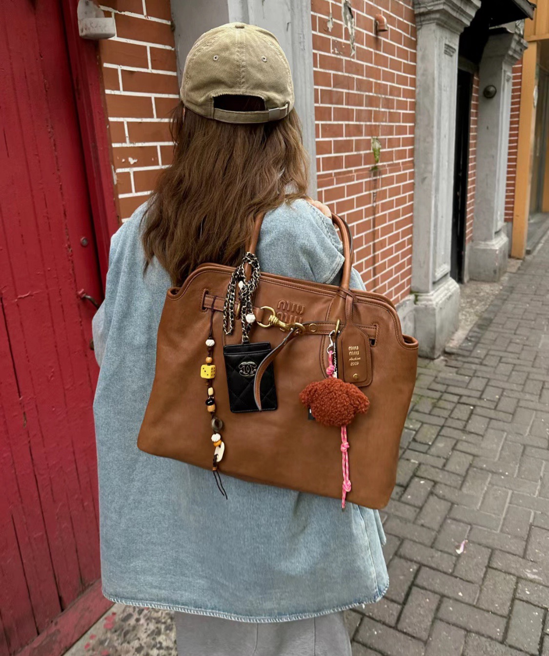 miu'miu这么多款式里,我最喜欢的还是大手提包,简单的 Logo浮雕设计,搭配长方形的包身和偏长的手柄,拎在手里更有年轻、潇洒的态度!