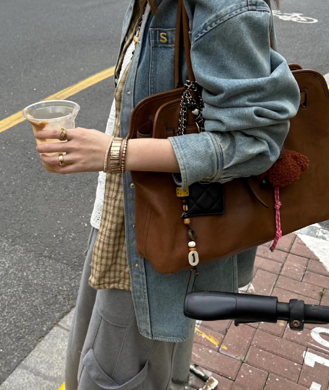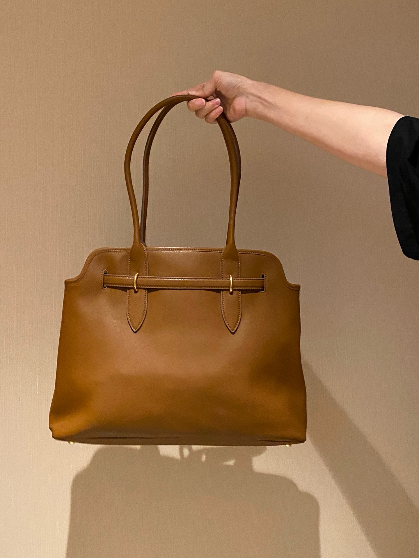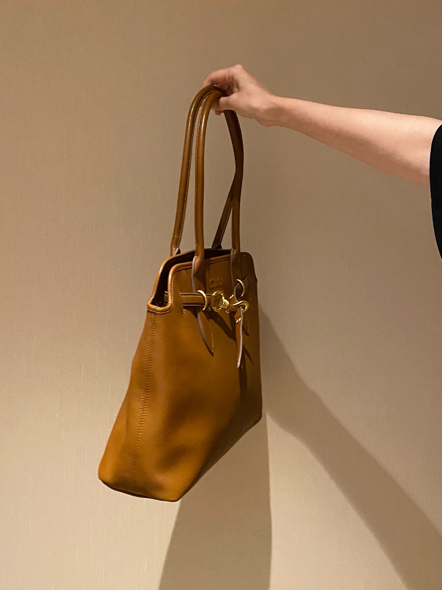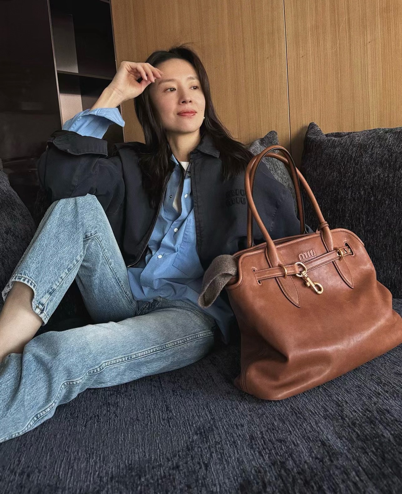 miu'miu这么多款式里,我最喜欢的还是大手提包,简单的 Logo浮雕设计,搭配长方形的包身和偏长的手柄,拎在手里更有年轻、潇洒的态度!