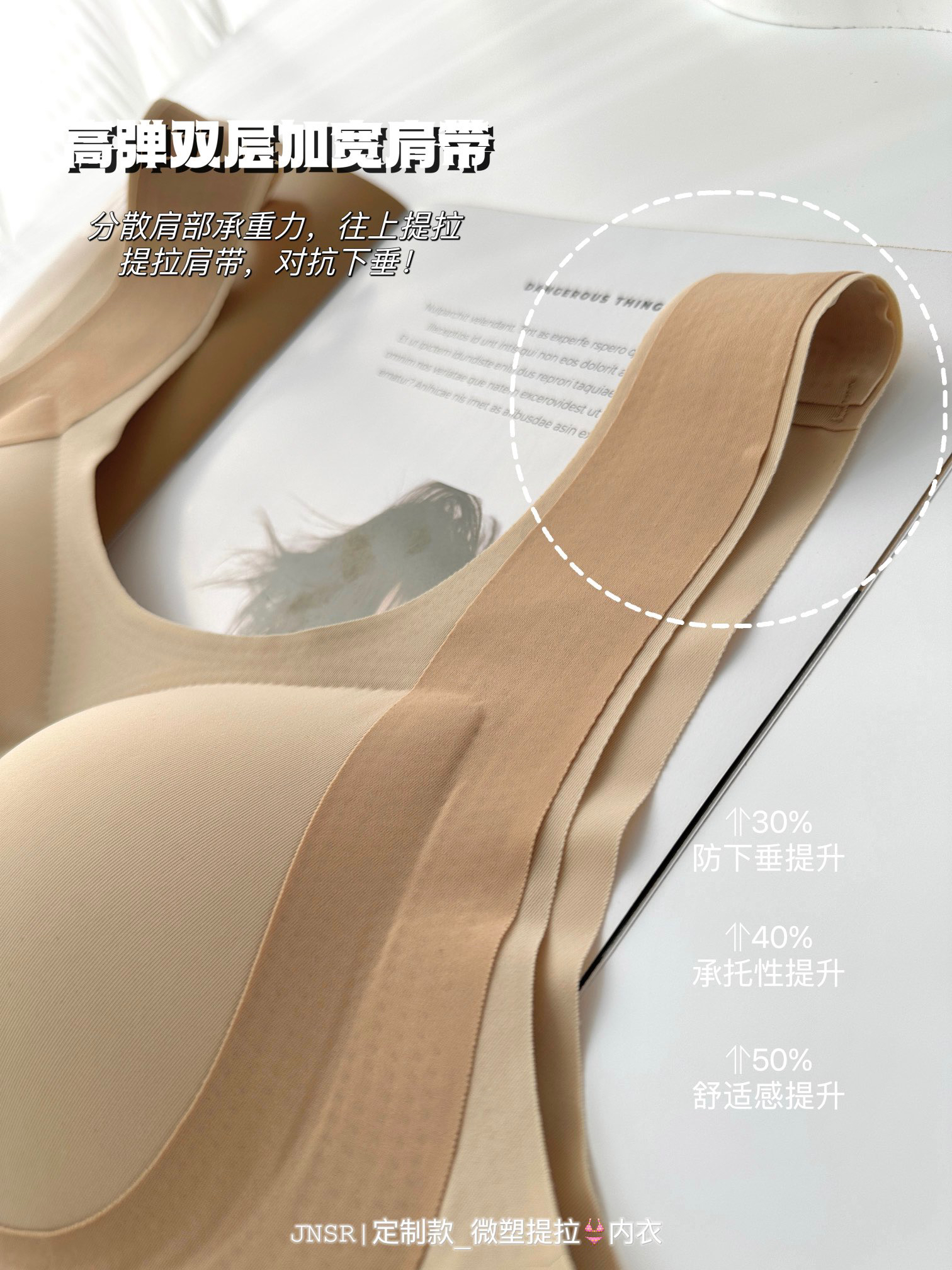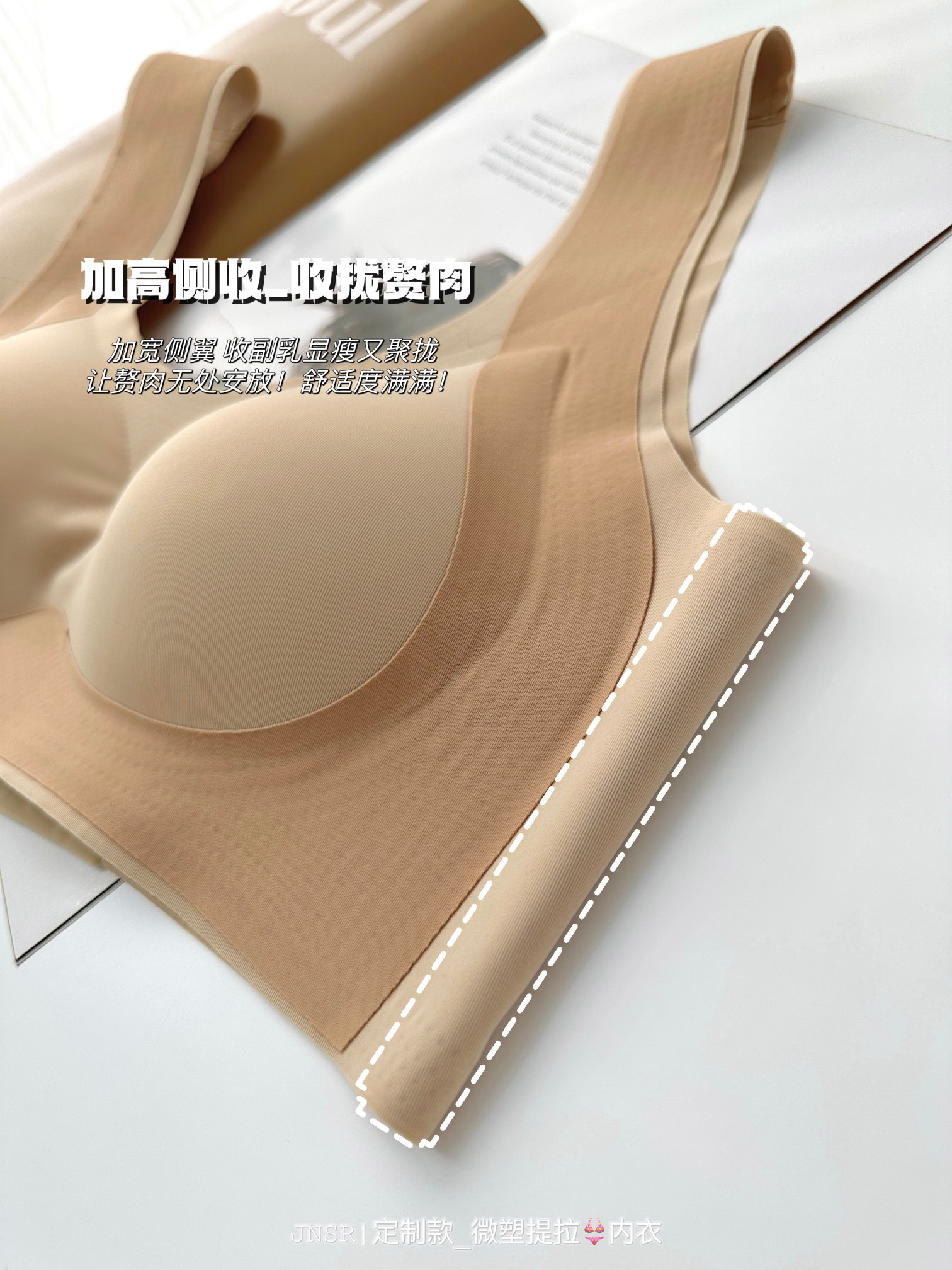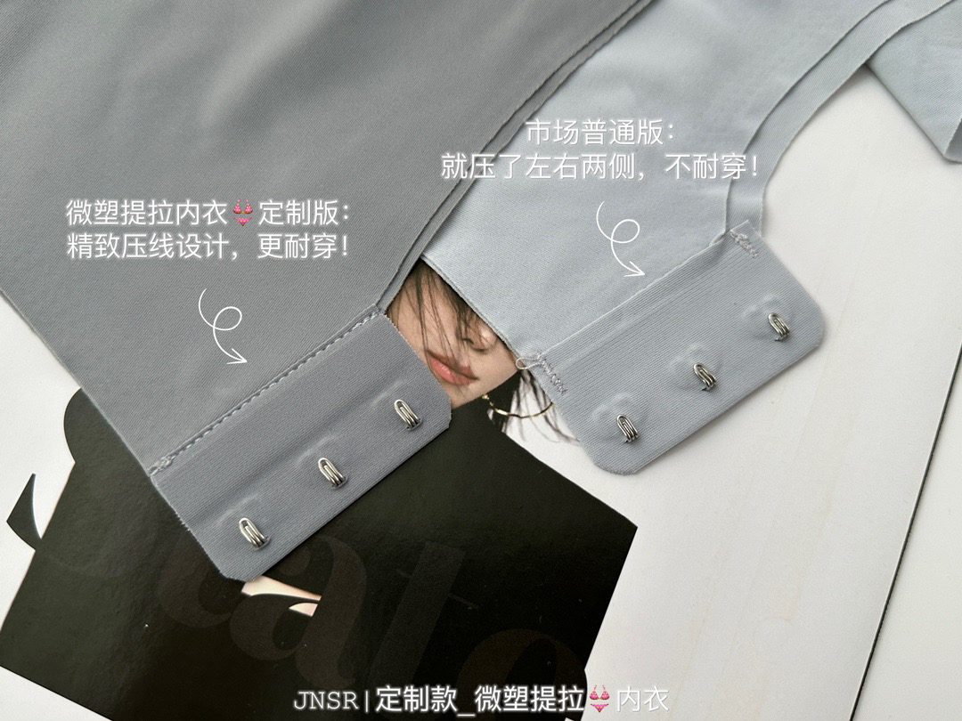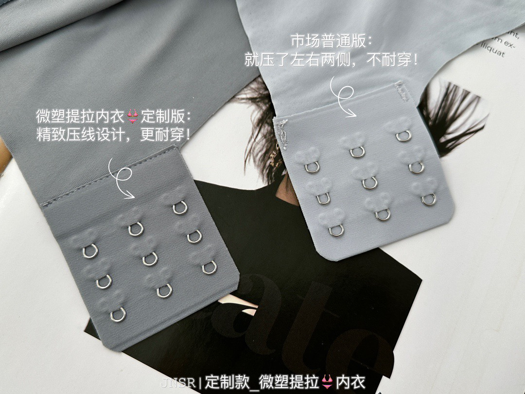 ✅但这款不同:采用了三重提拉设计,来加强塑形效果,直接用大片式的软支撑提拉条,来代替钢圈!