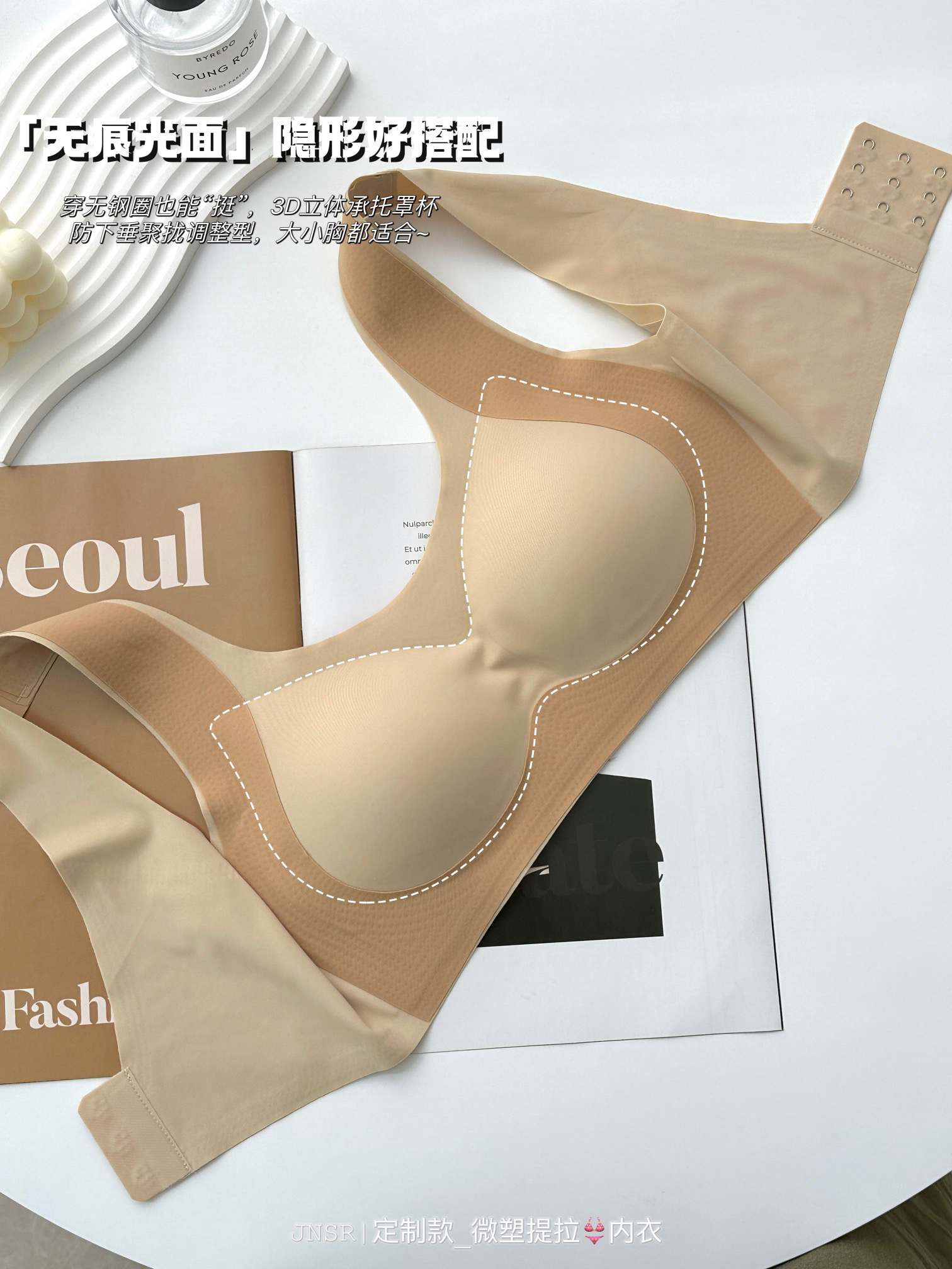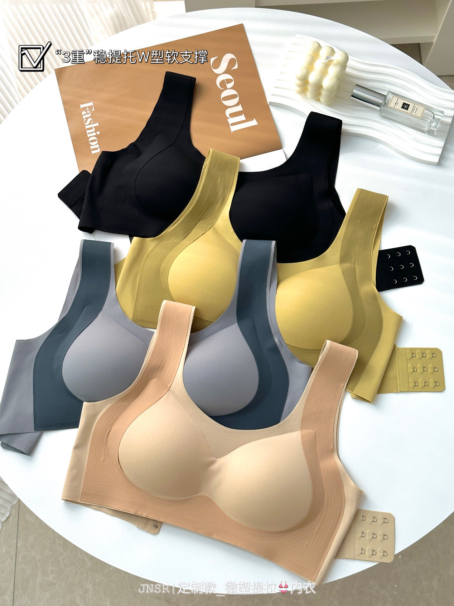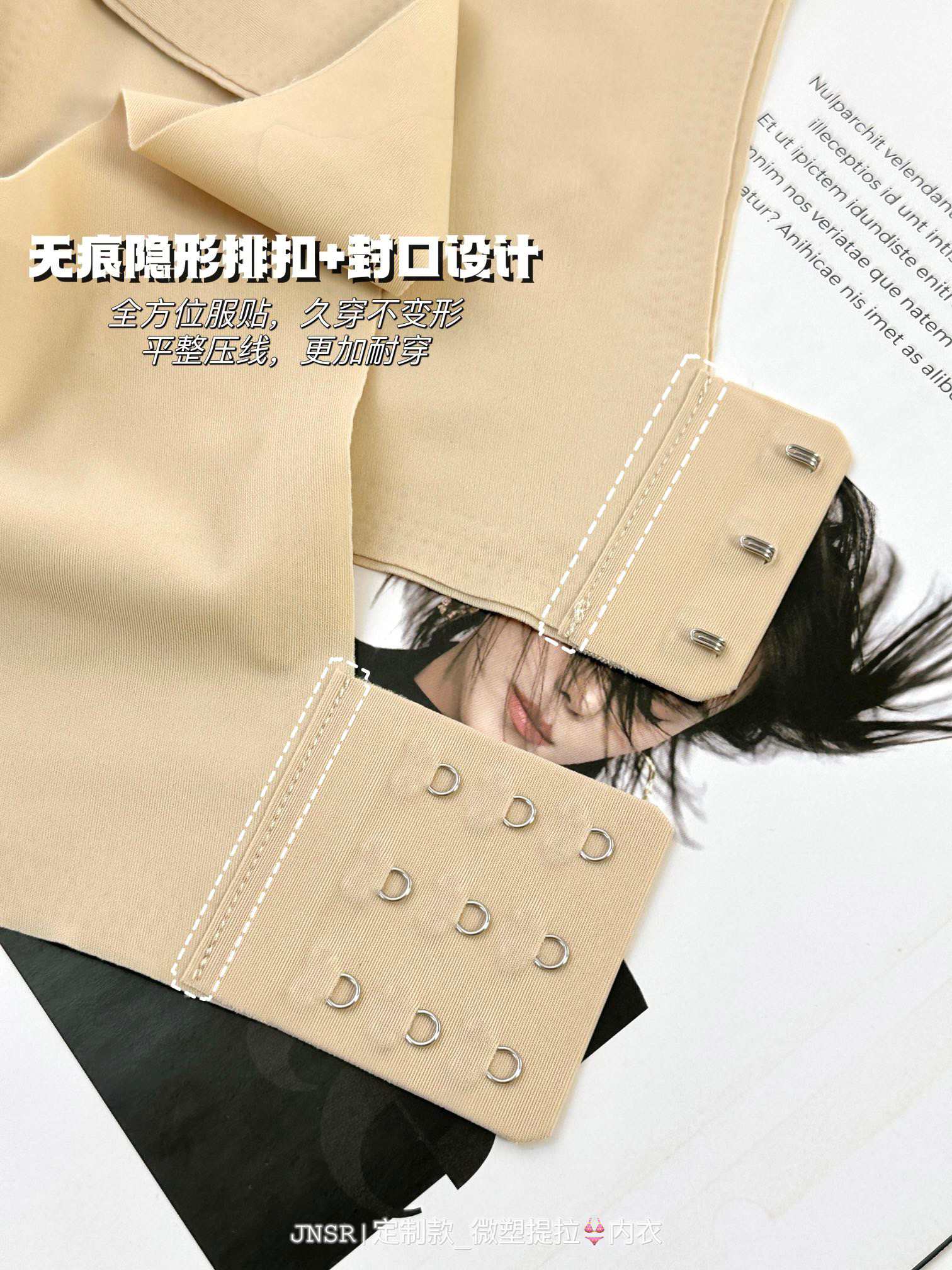 ✅但这款不同:采用了三重提拉设计,来加强塑形效果,直接用大片式的软支撑提拉条,来代替钢圈!