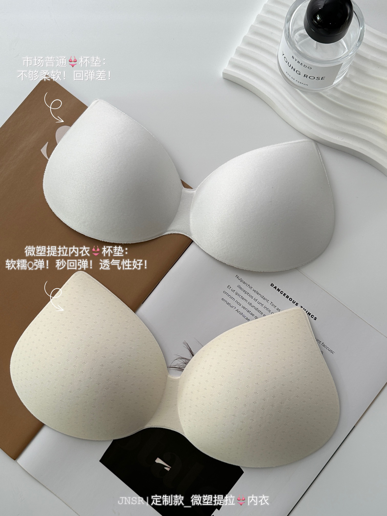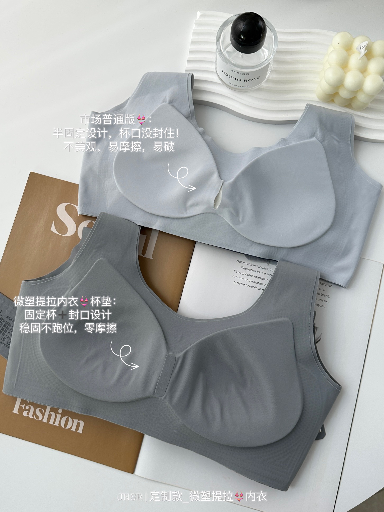 ❎普通塑形内衣:通过强挤压或钢圈来提拉聚拢的,紧绷感强的,上身不舒服!