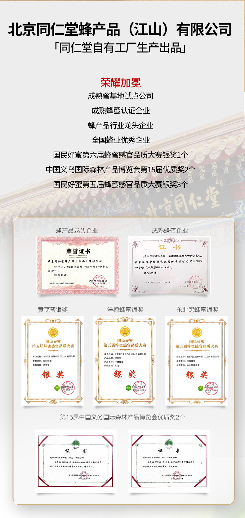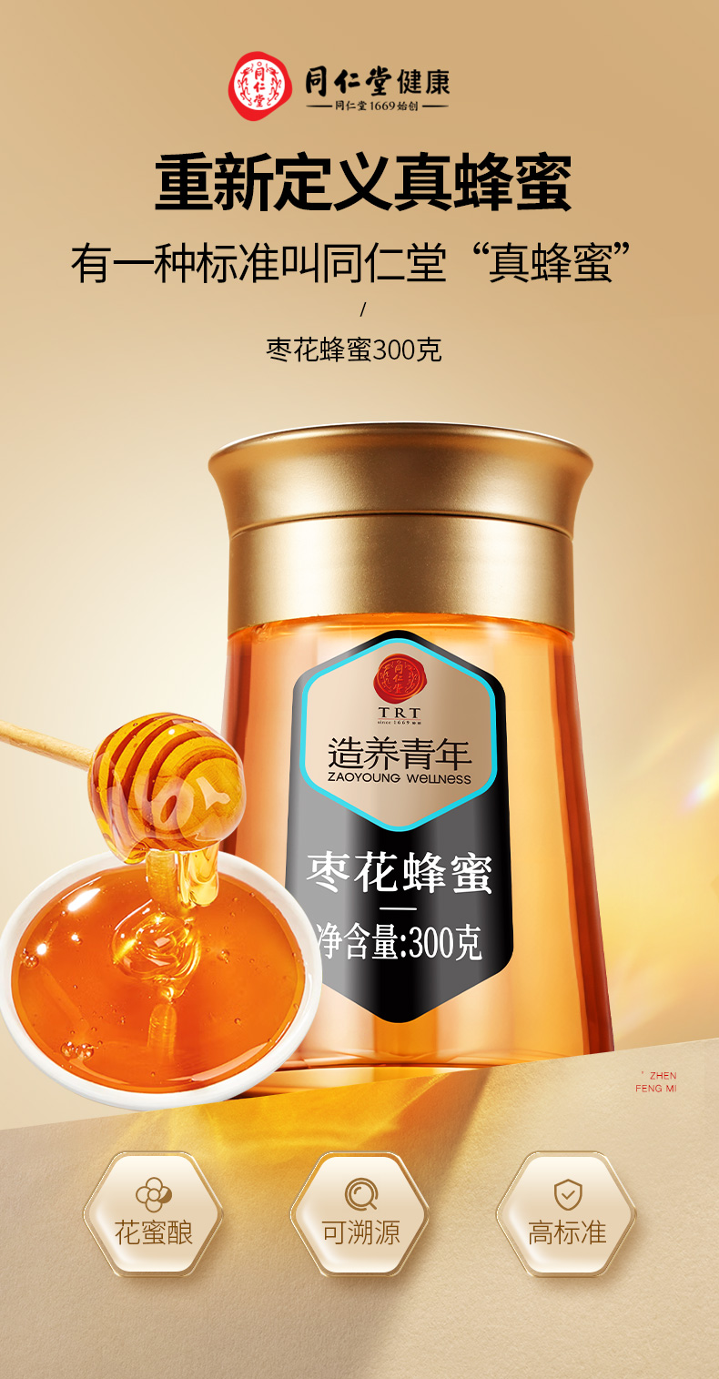 【正宗同仁堂品牌】北京同仁堂 枣花蜂蜜300克 漏斗型瓶装 原料纯粹 拒绝添加 便携易使用SY
