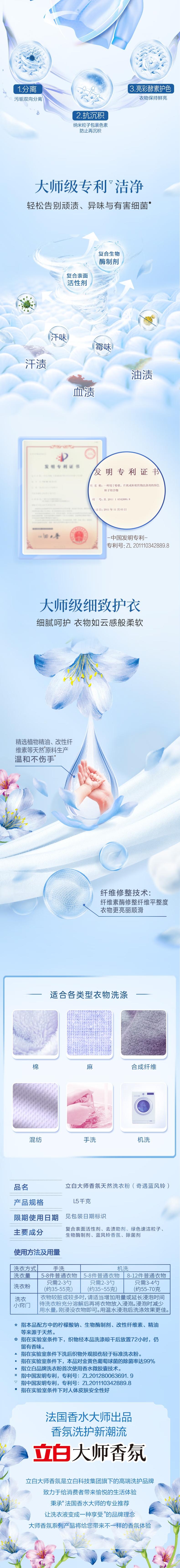 立白 大师香氛蓝风铃洗衣粉1.5kg*6袋 BOXSL156DJ