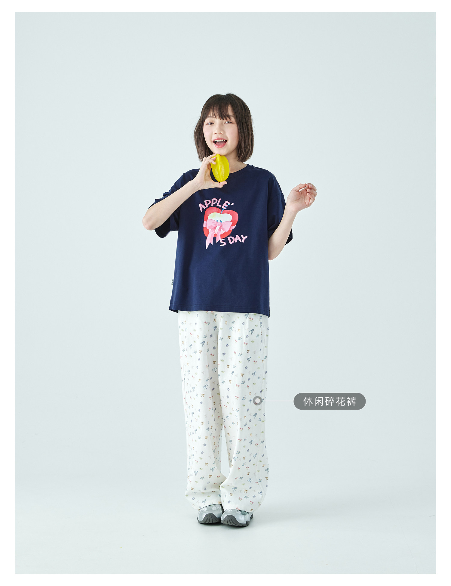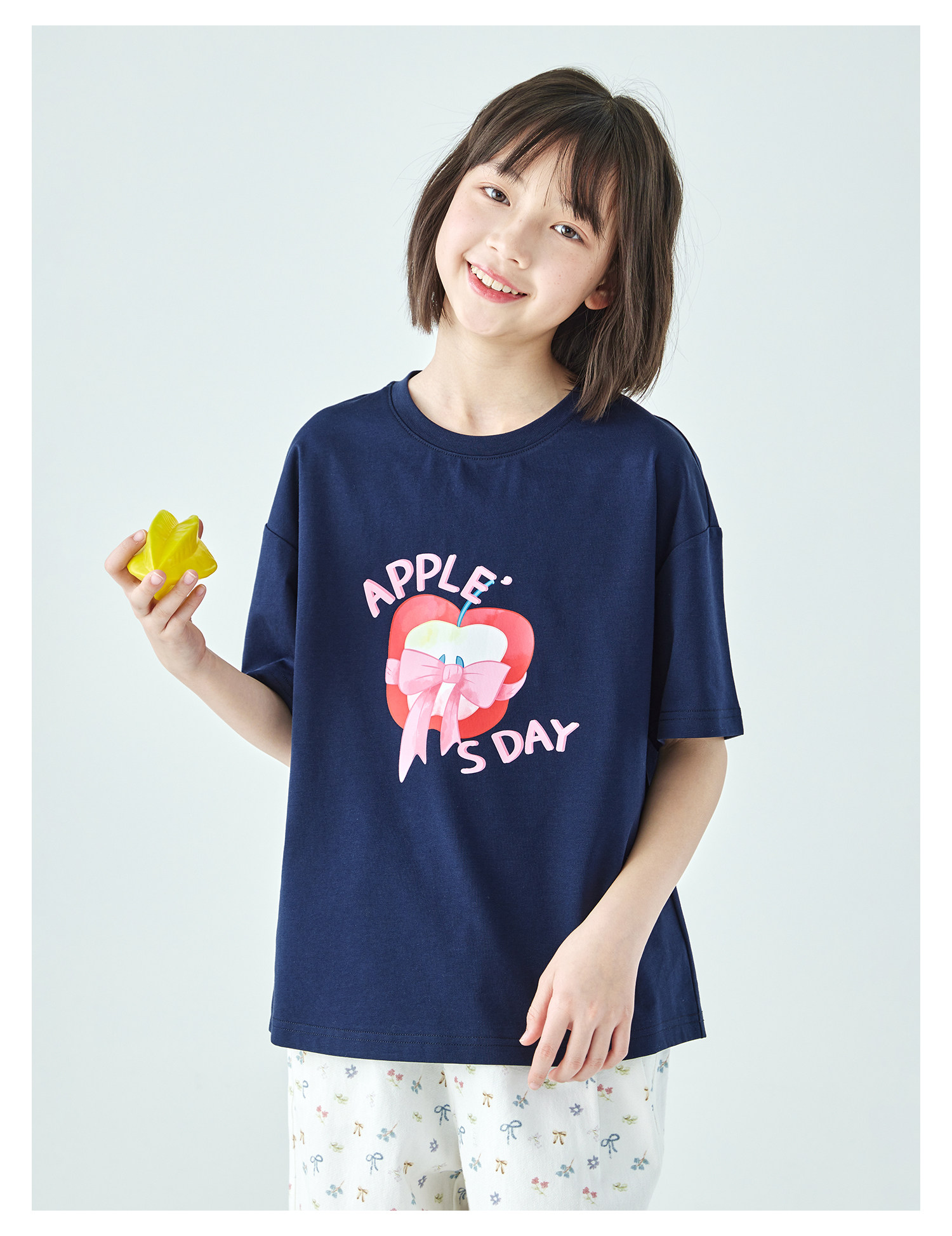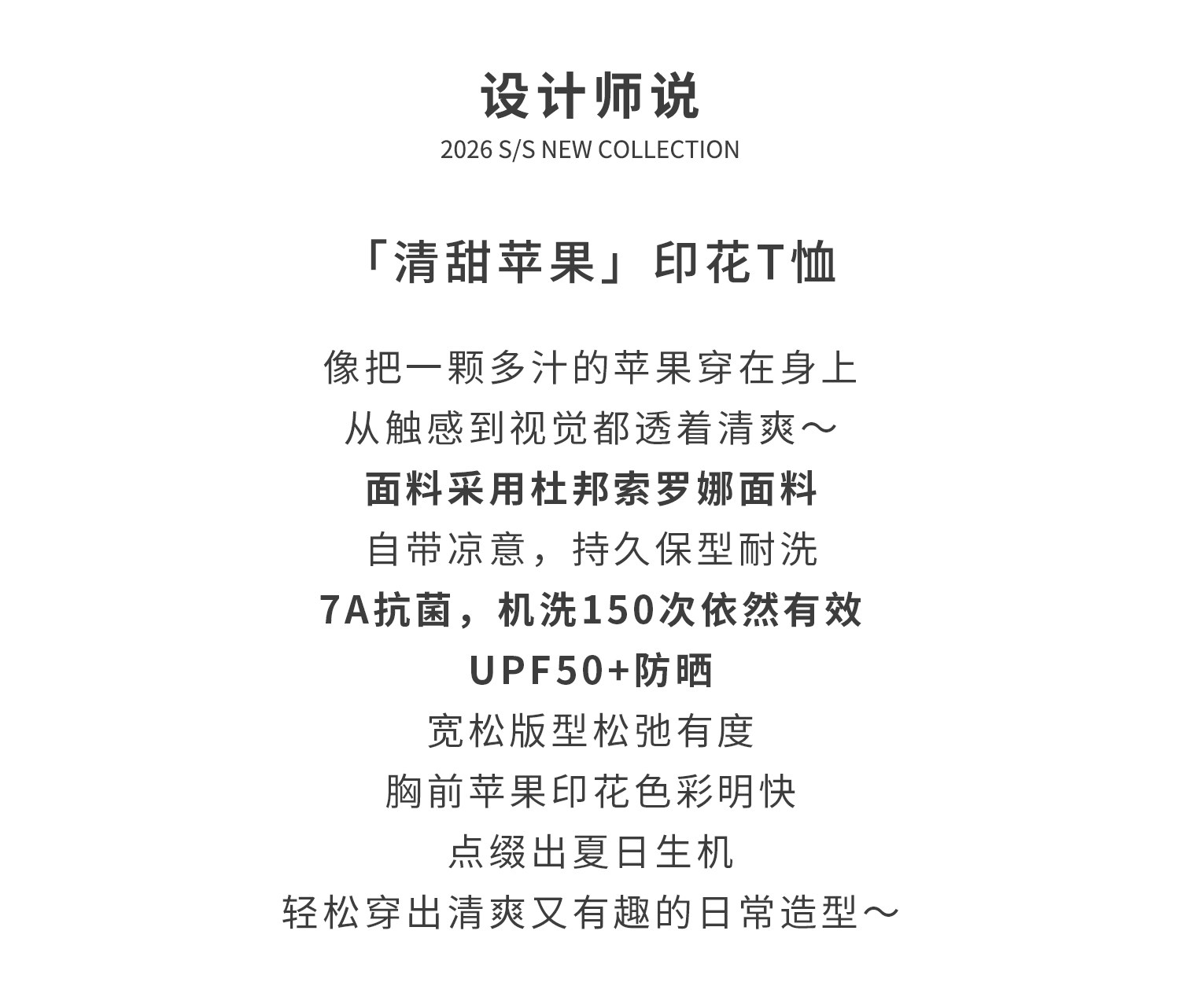 棵初26年夏新款亲子中大女童图案印花宽松短袖凉感7A抗菌防晒T恤