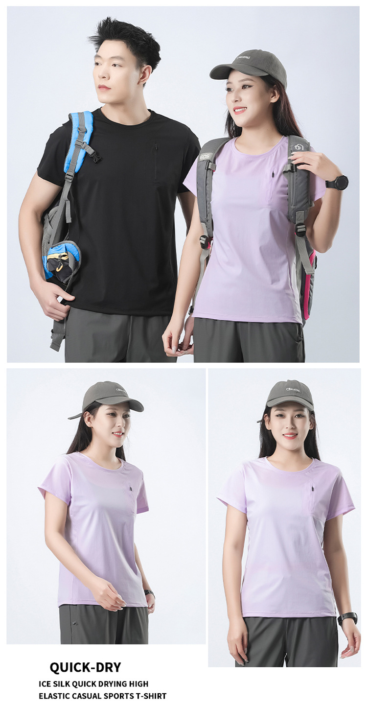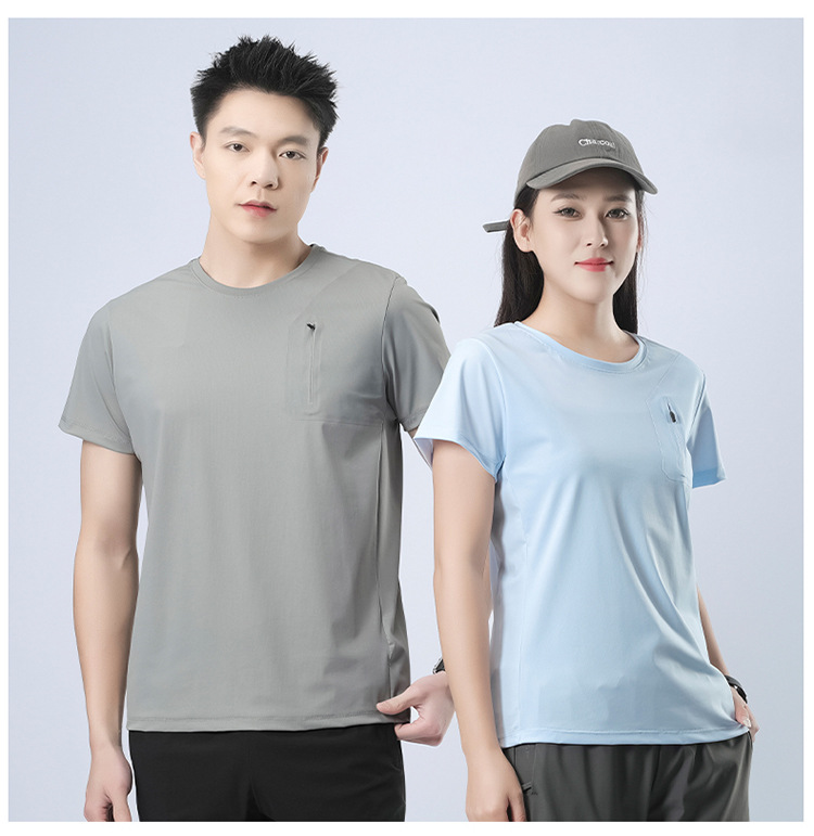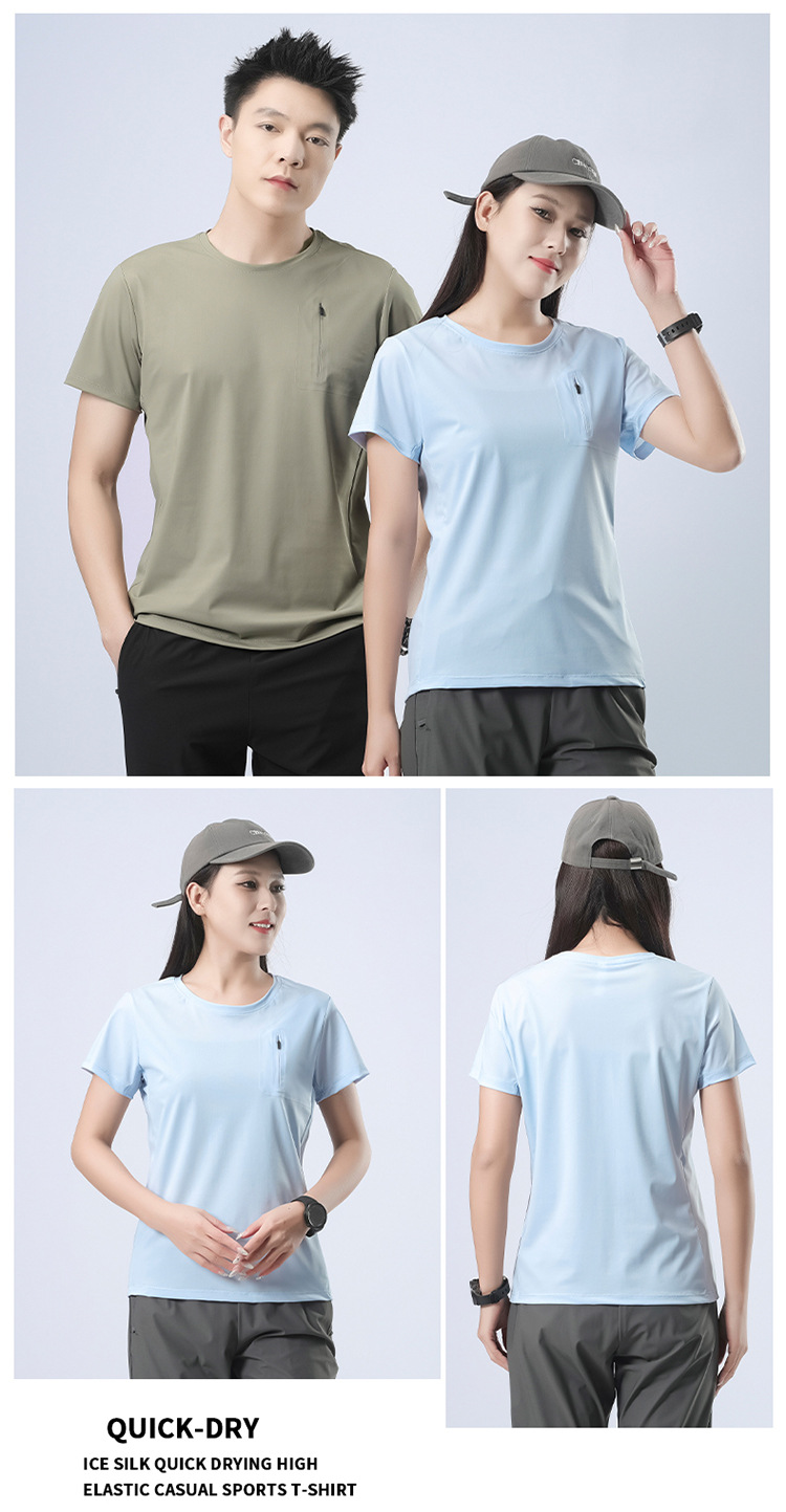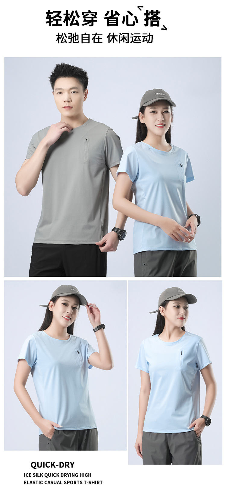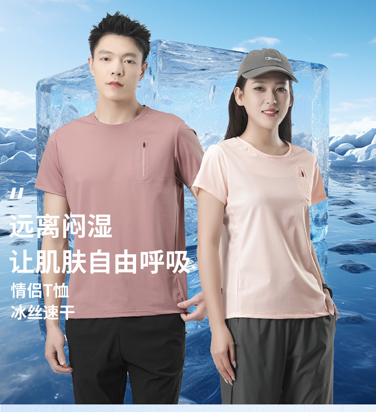 百媚生 凉感冰丝T恤夏季户外透气圆领短袖8507