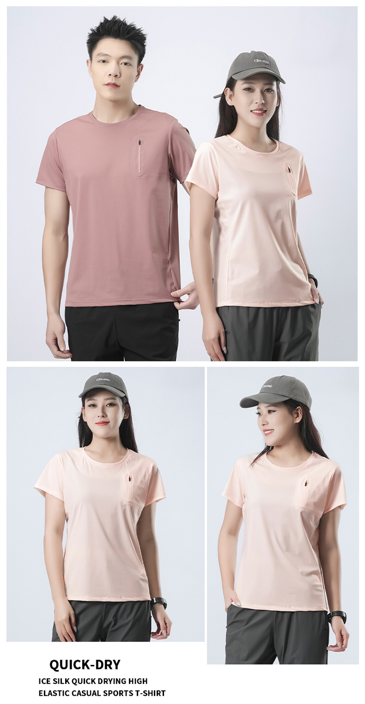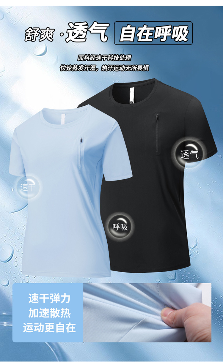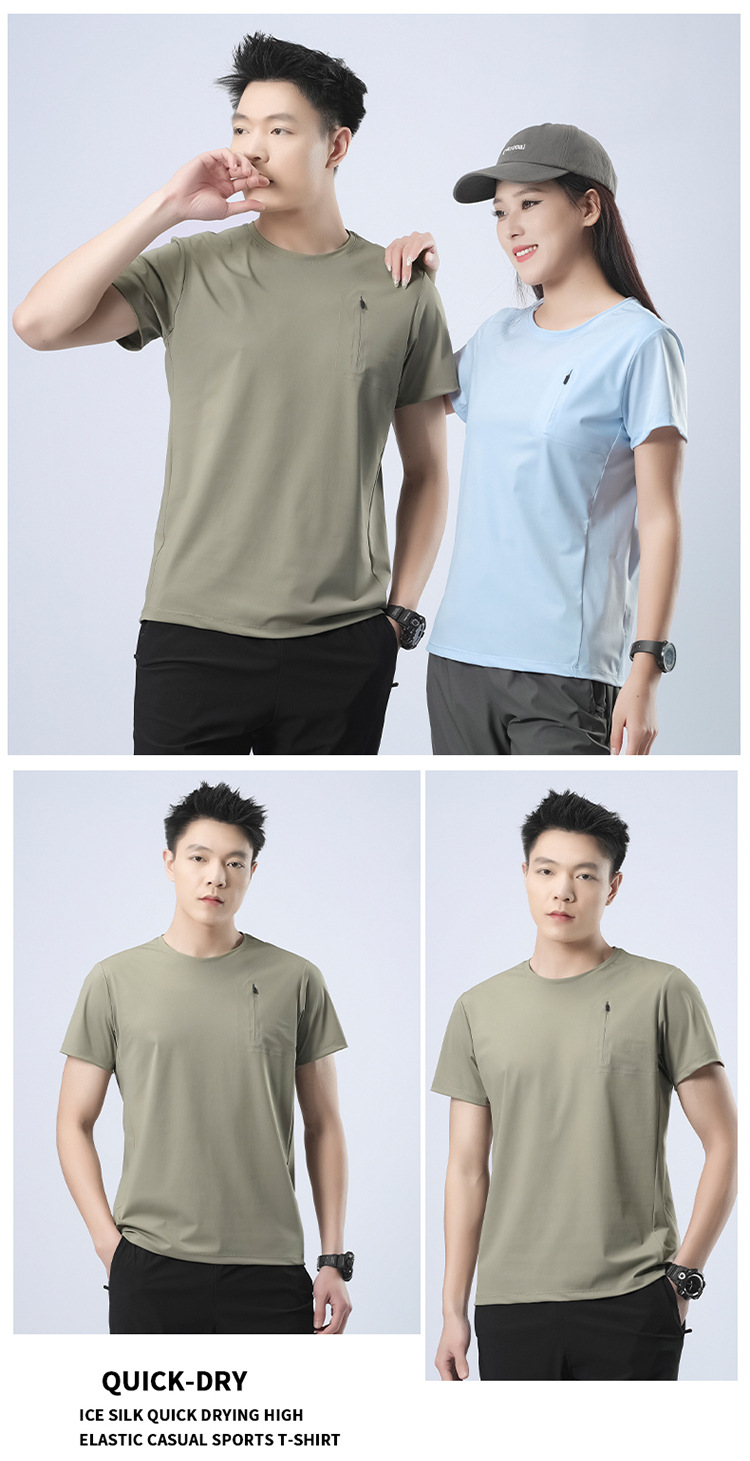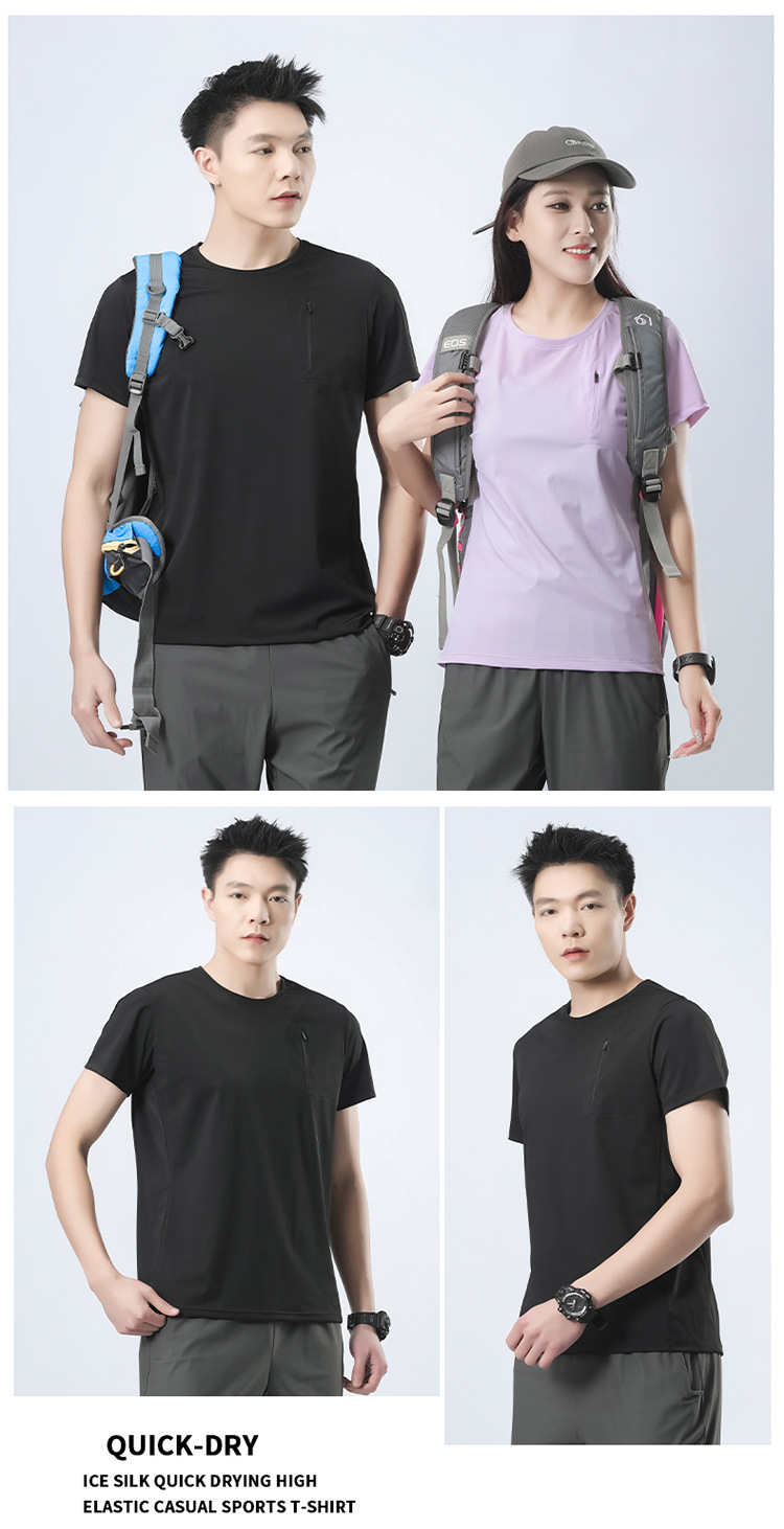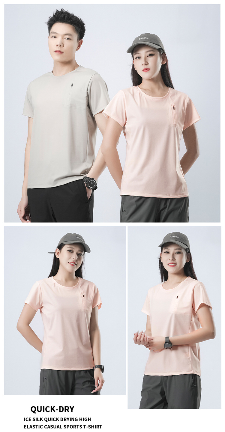 百媚生 凉感冰丝T恤夏季户外透气圆领短袖8507