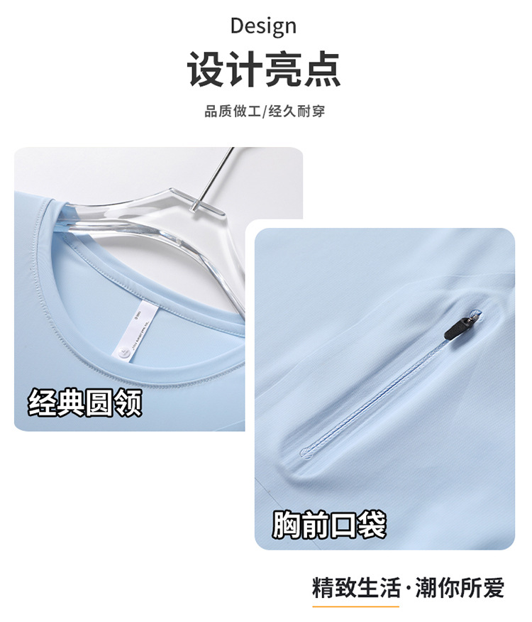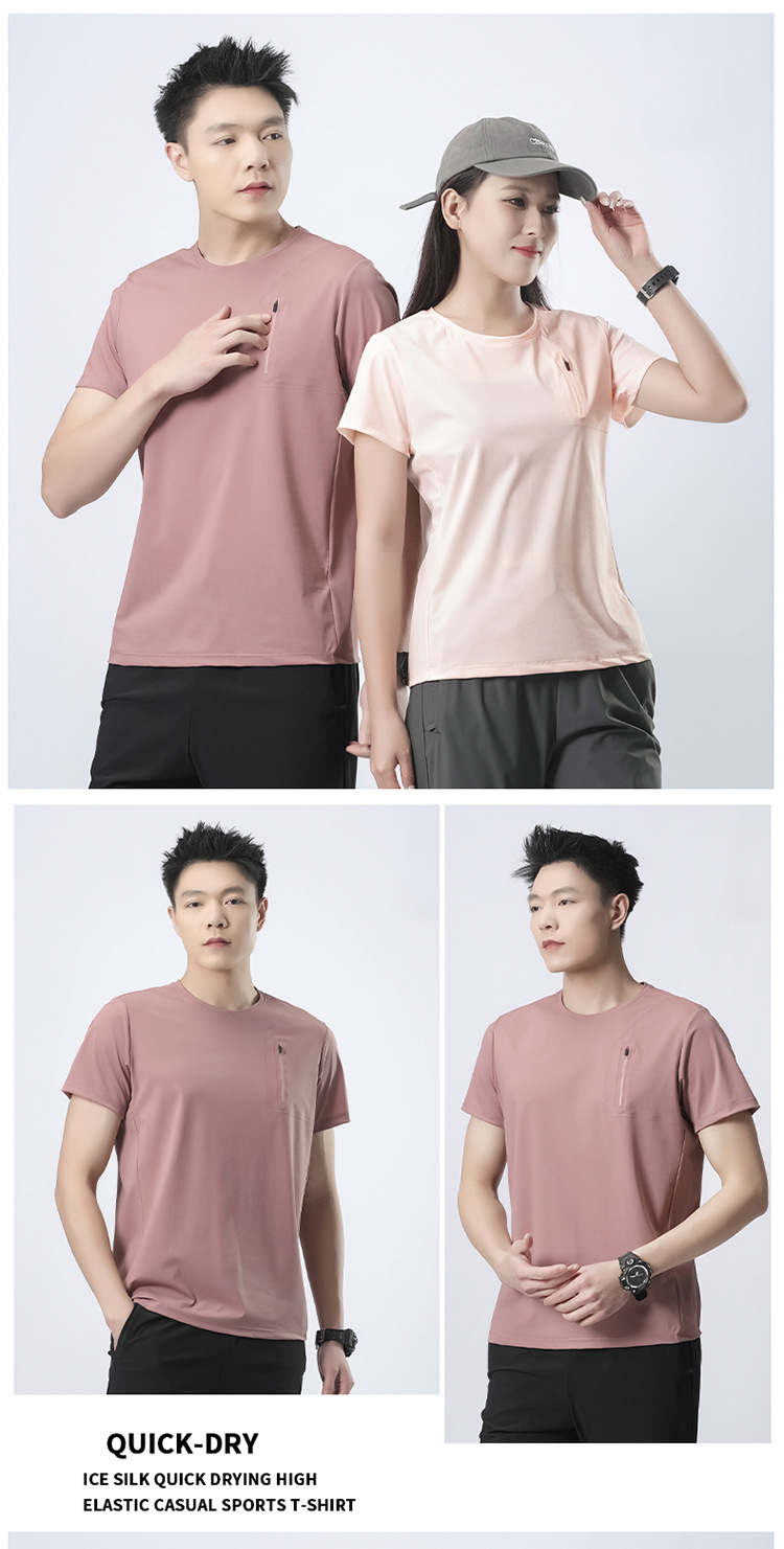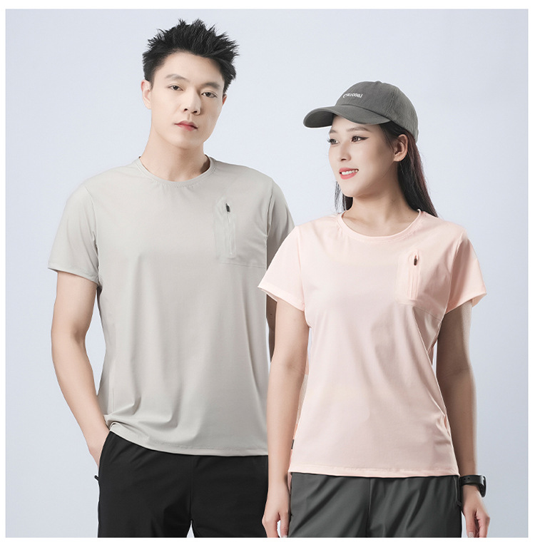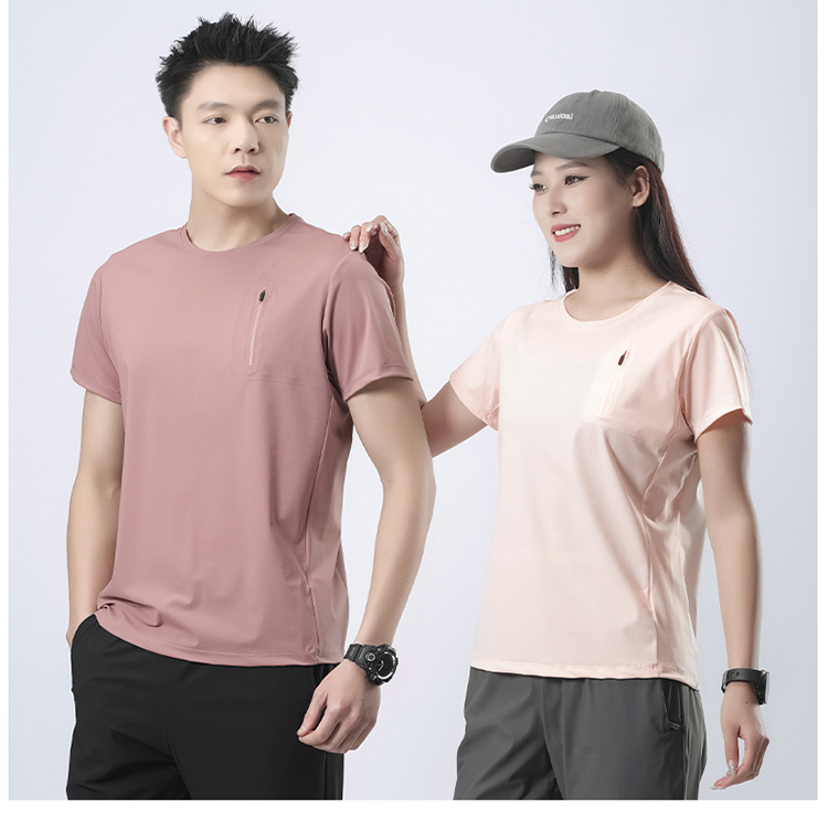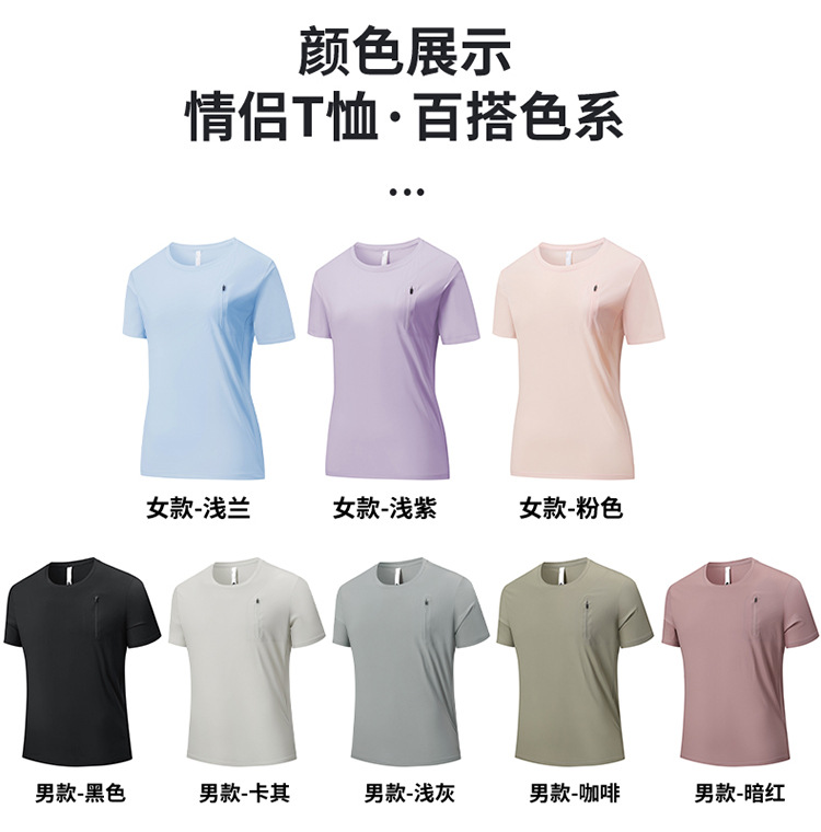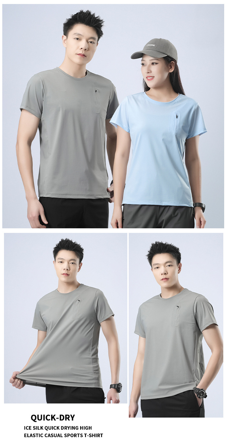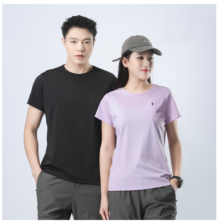 百媚生 凉感冰丝T恤夏季户外透气圆领短袖8507