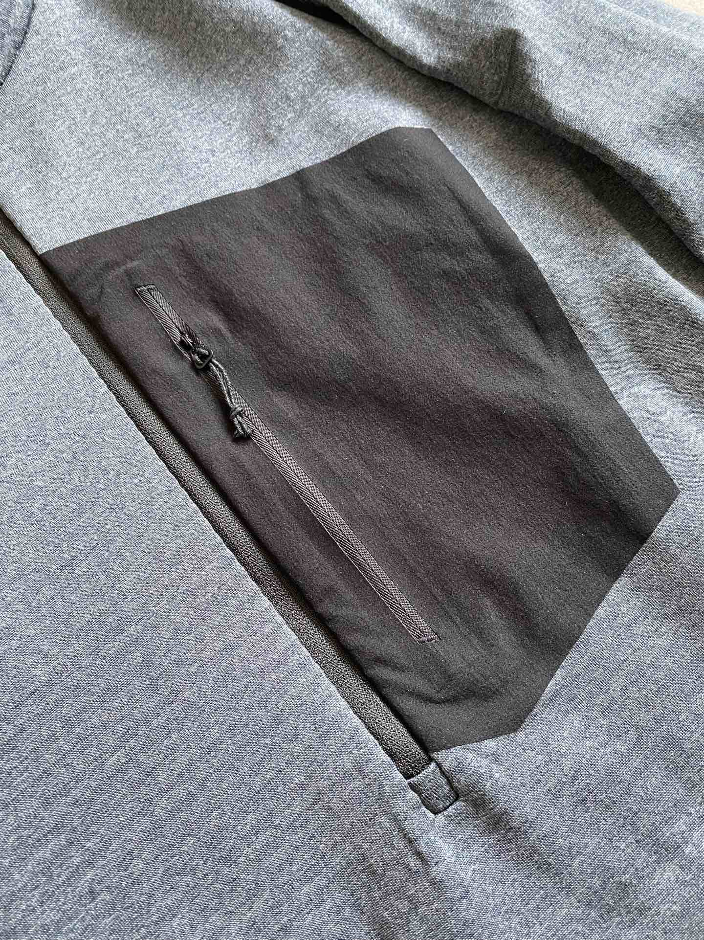 定制轻量化弹力舒适的抓绒布面料,具有舒适保暖性和耐磨性!有效排出汗水,保持体温!良好的保暖/重量比,即又轻又保暖!肩部平缝工艺,有效减少背包背带的摩擦!