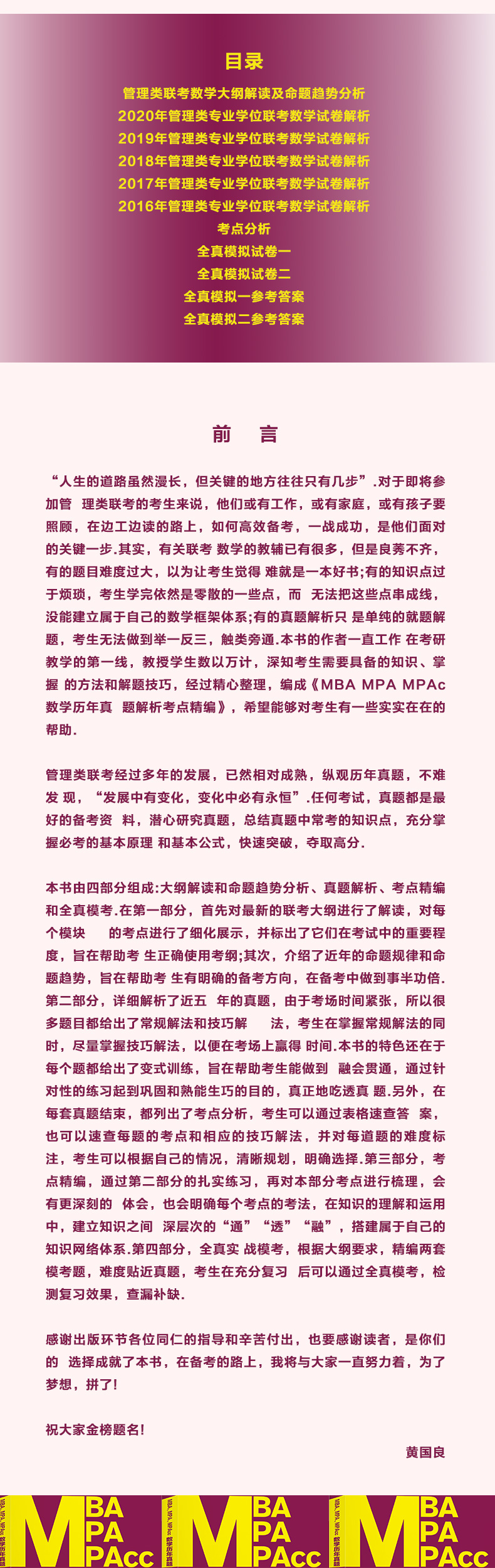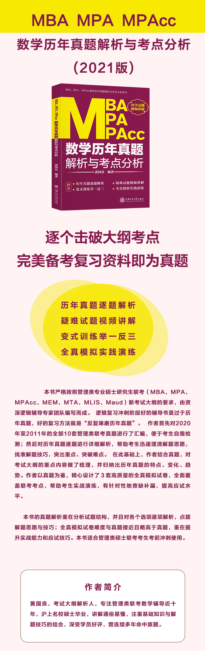 【2021新版】MBA、MPA、MPAcc数学历年真题解析与考点分析(2021版) 黄国良