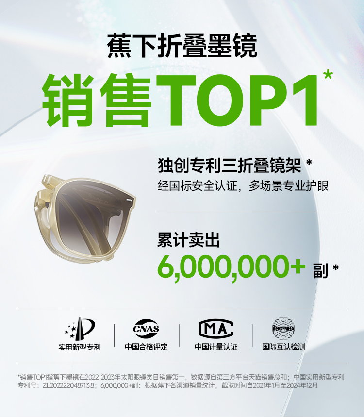 【25年新品】蕉下方圆大框折叠墨镜FD421