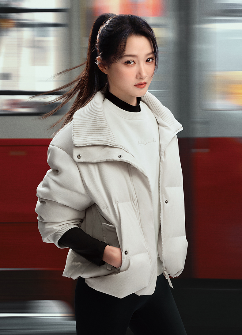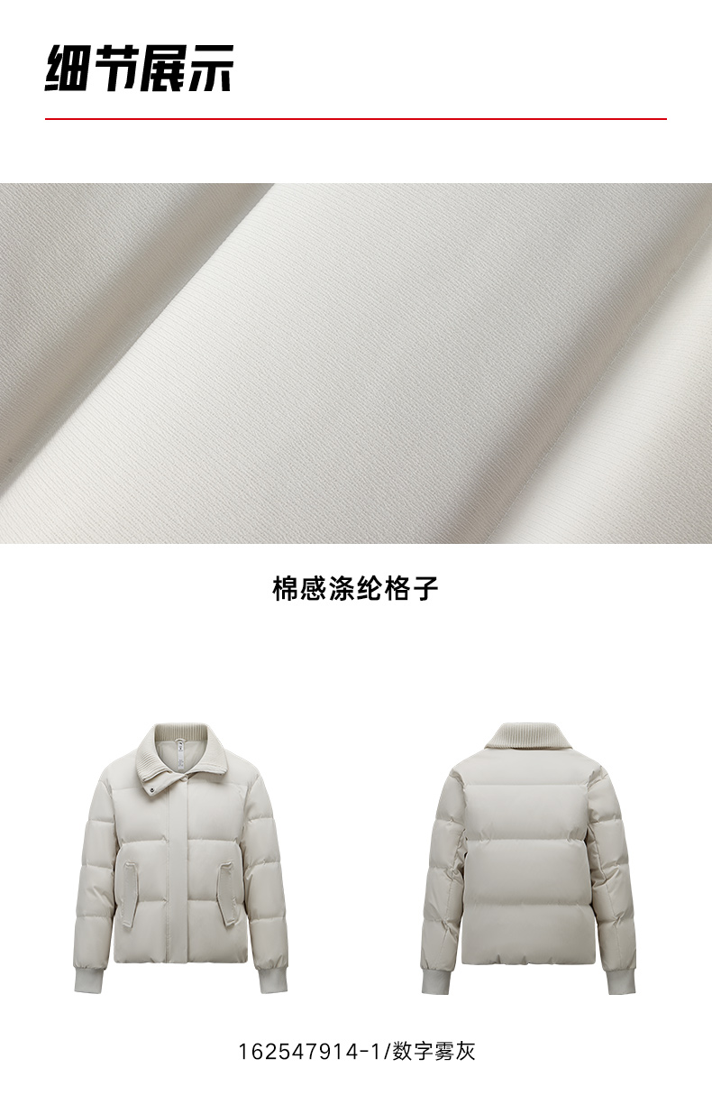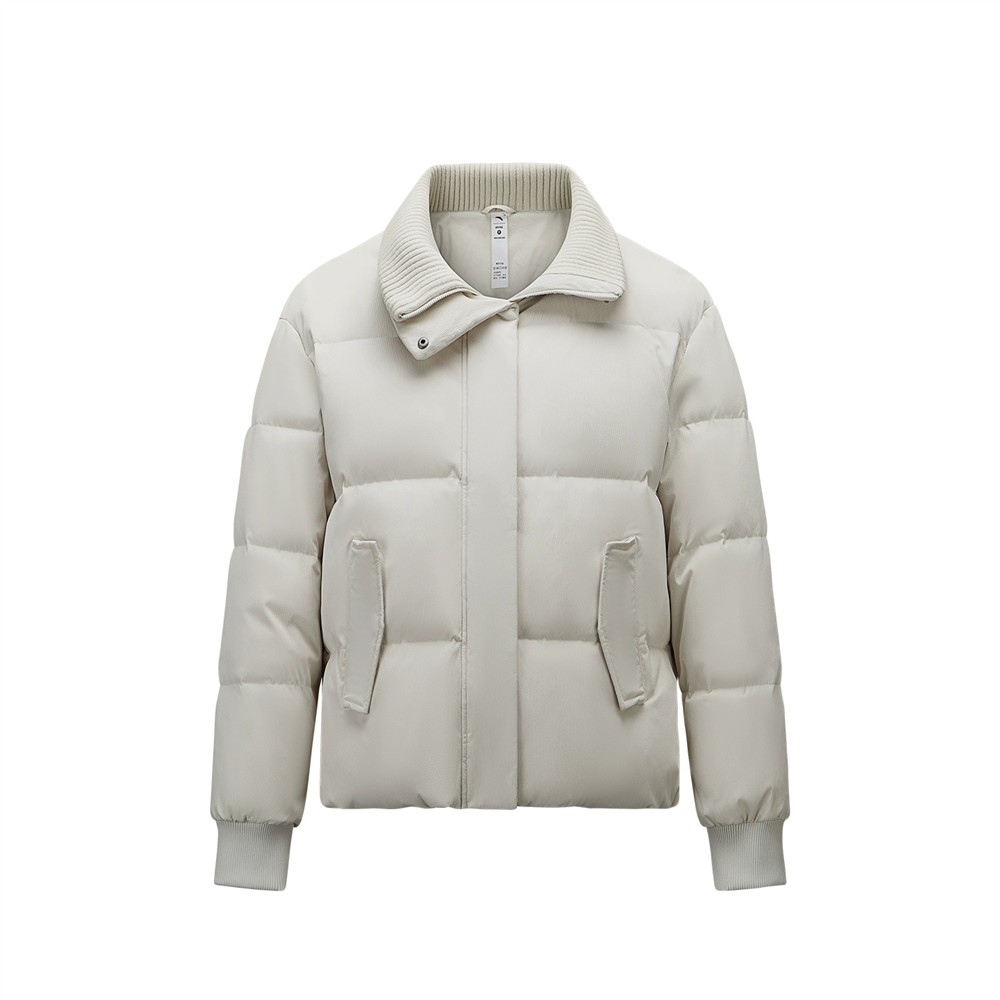 安踏短款羽绒服女针织拼接翻领鸭绒棉服162547914