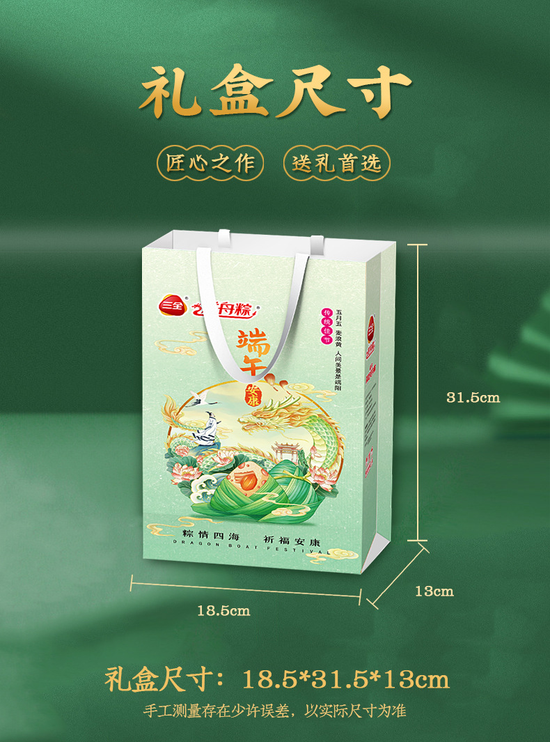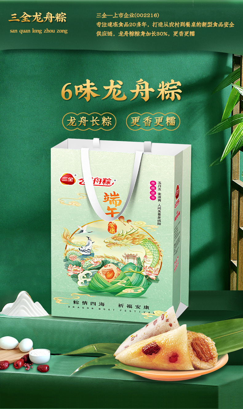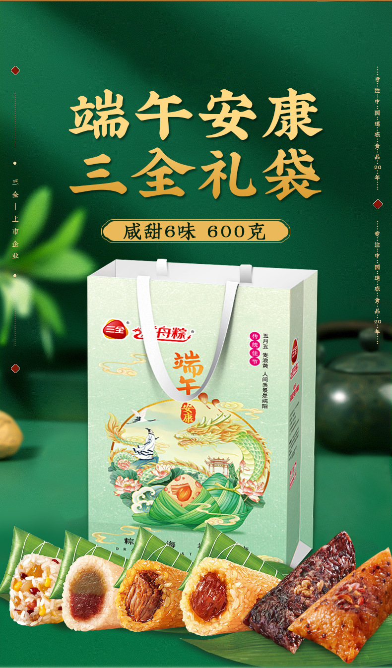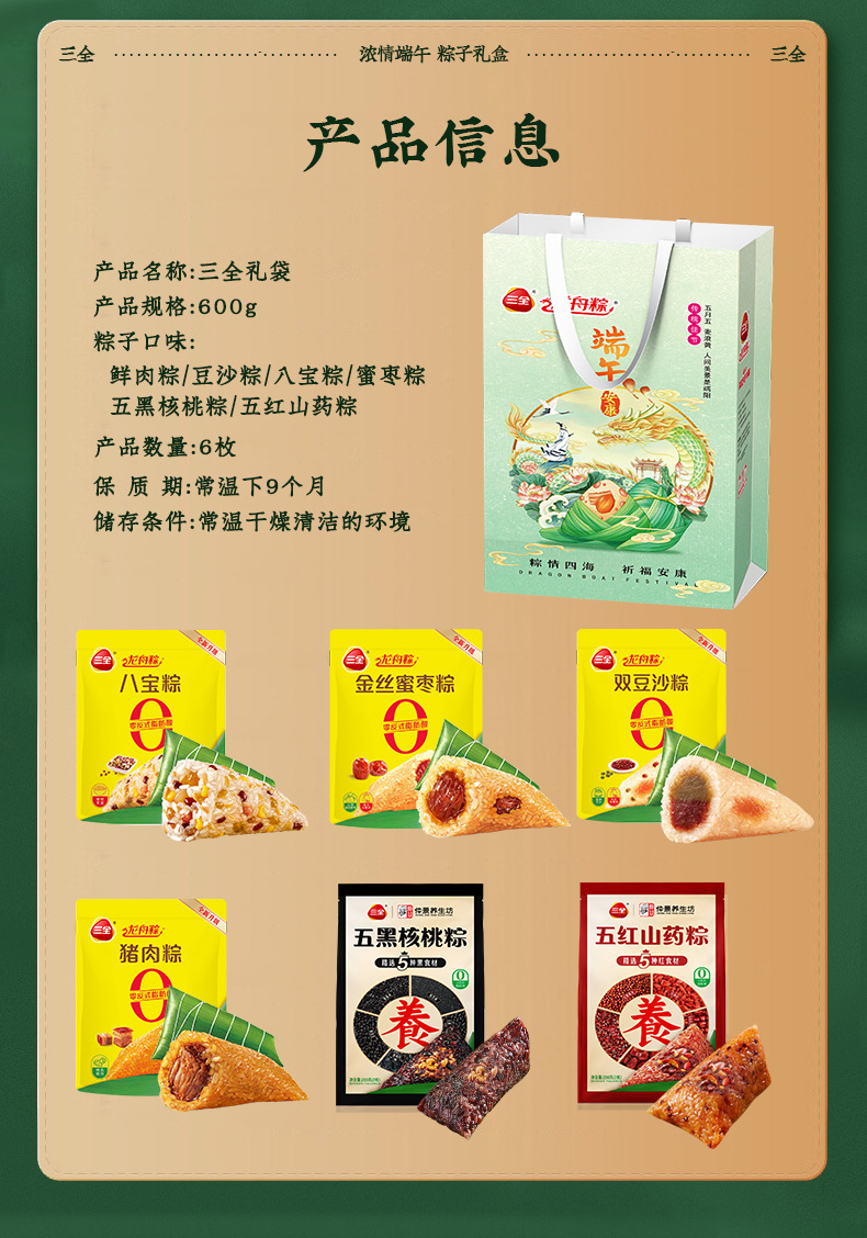 【端午安康,三全礼袋~】三全粽子礼袋粽600g 肉粽蜜枣豆沙甜粽 真空端午节嘉兴粽子 团购好礼-QQ