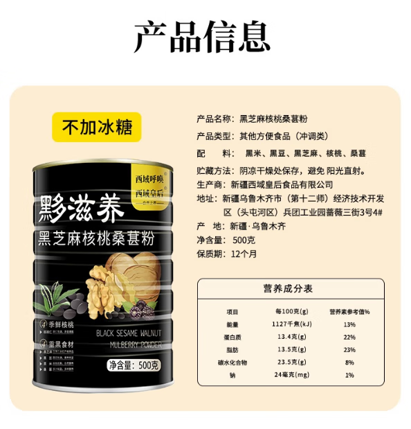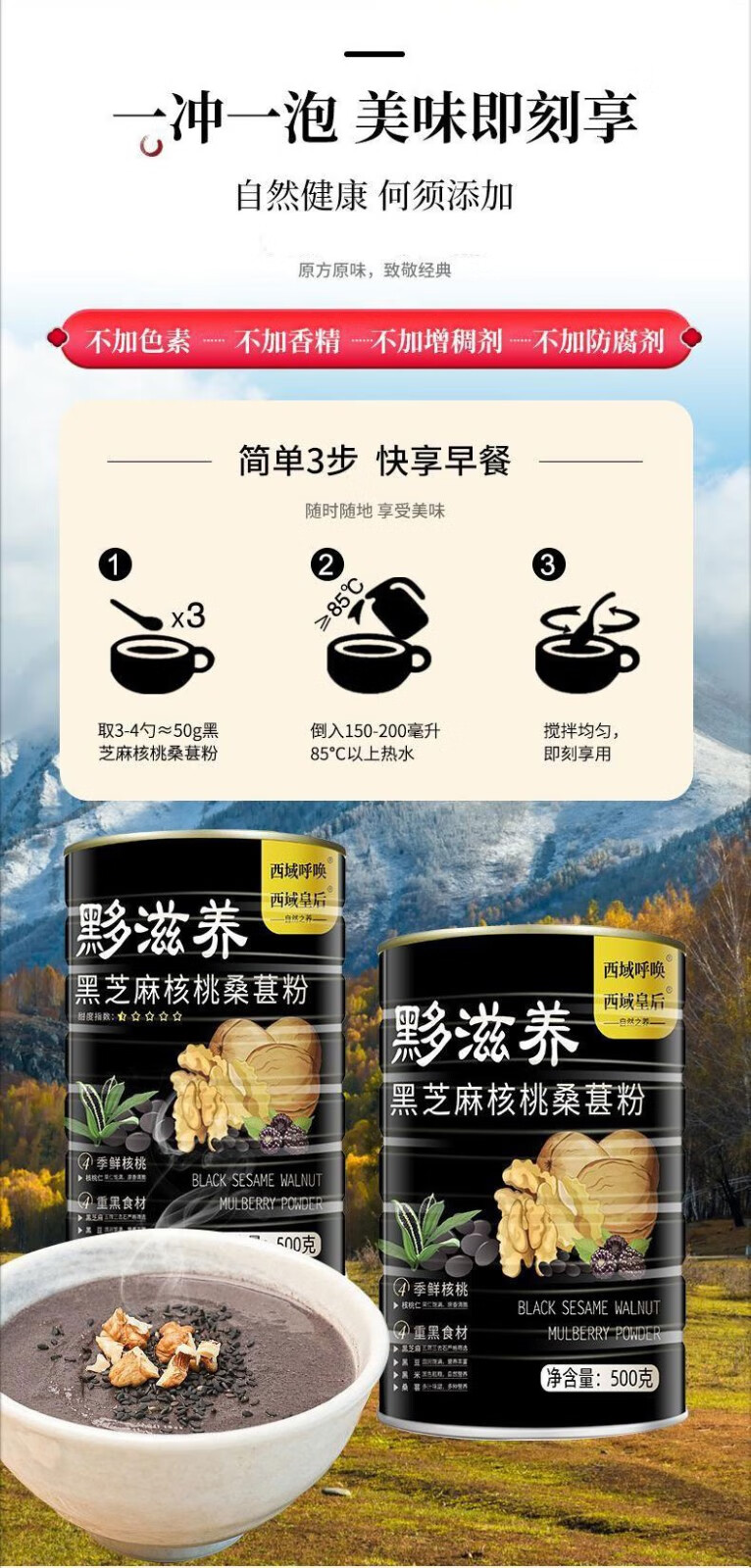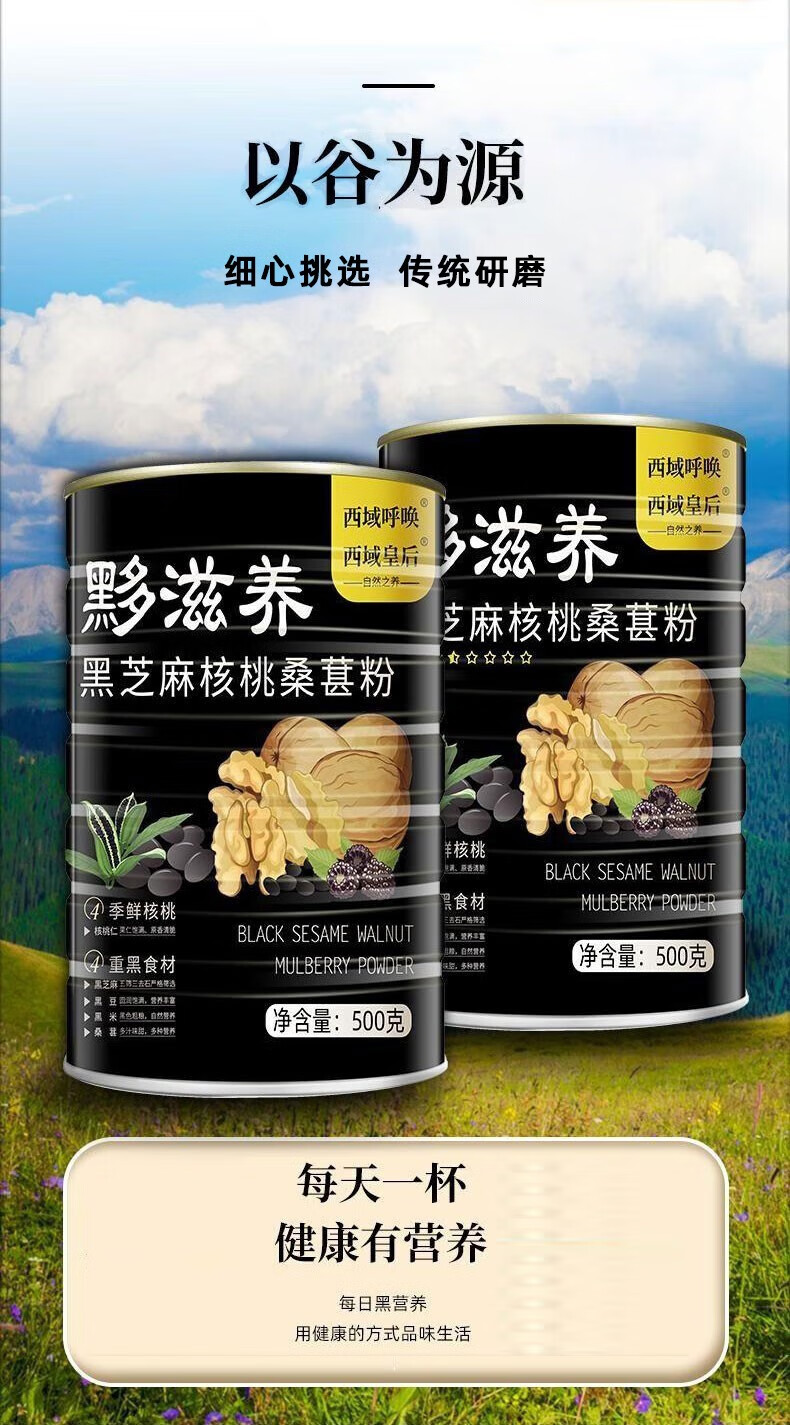 西域皇后·黑芝麻核桃桑葚粉500g*2 多重黑营养 以谷为源 细心挑选 传统研磨