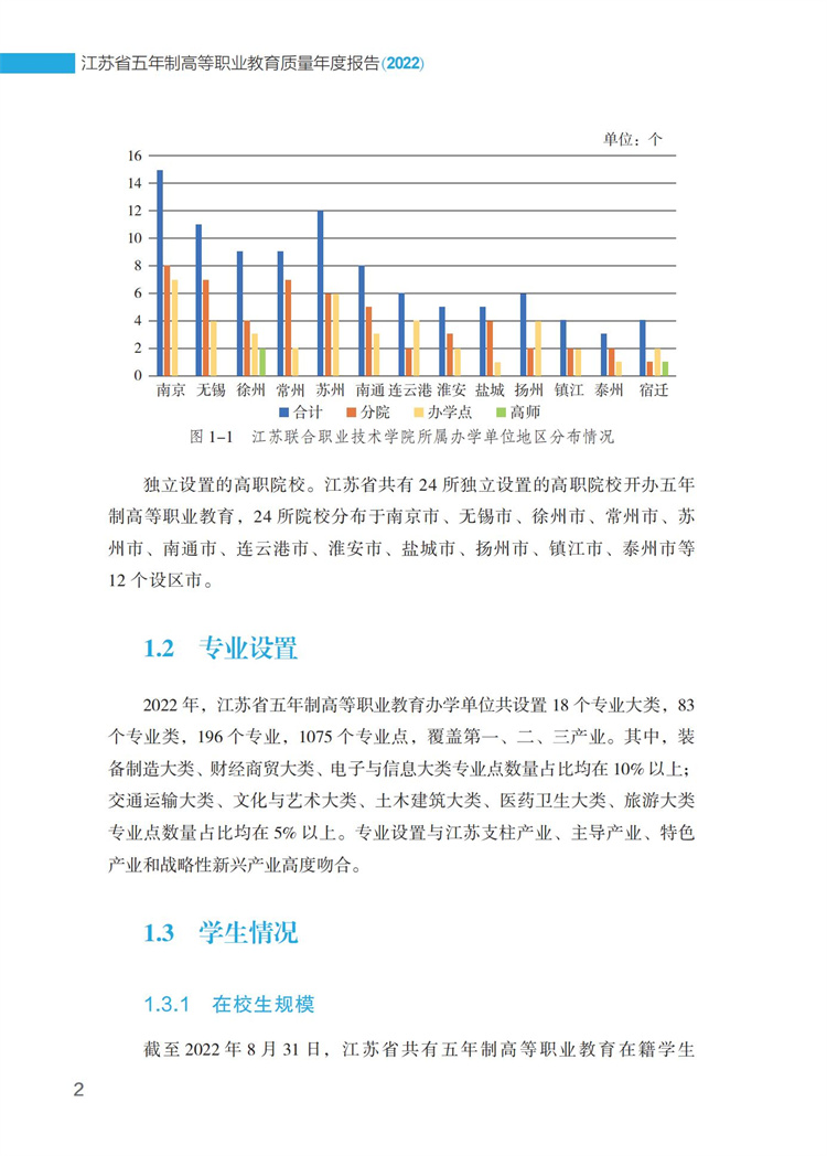 职教 江苏省五年制高等职业教育质量年度报告2022 高等职业教育质量研究 江苏凤凰教育出版社