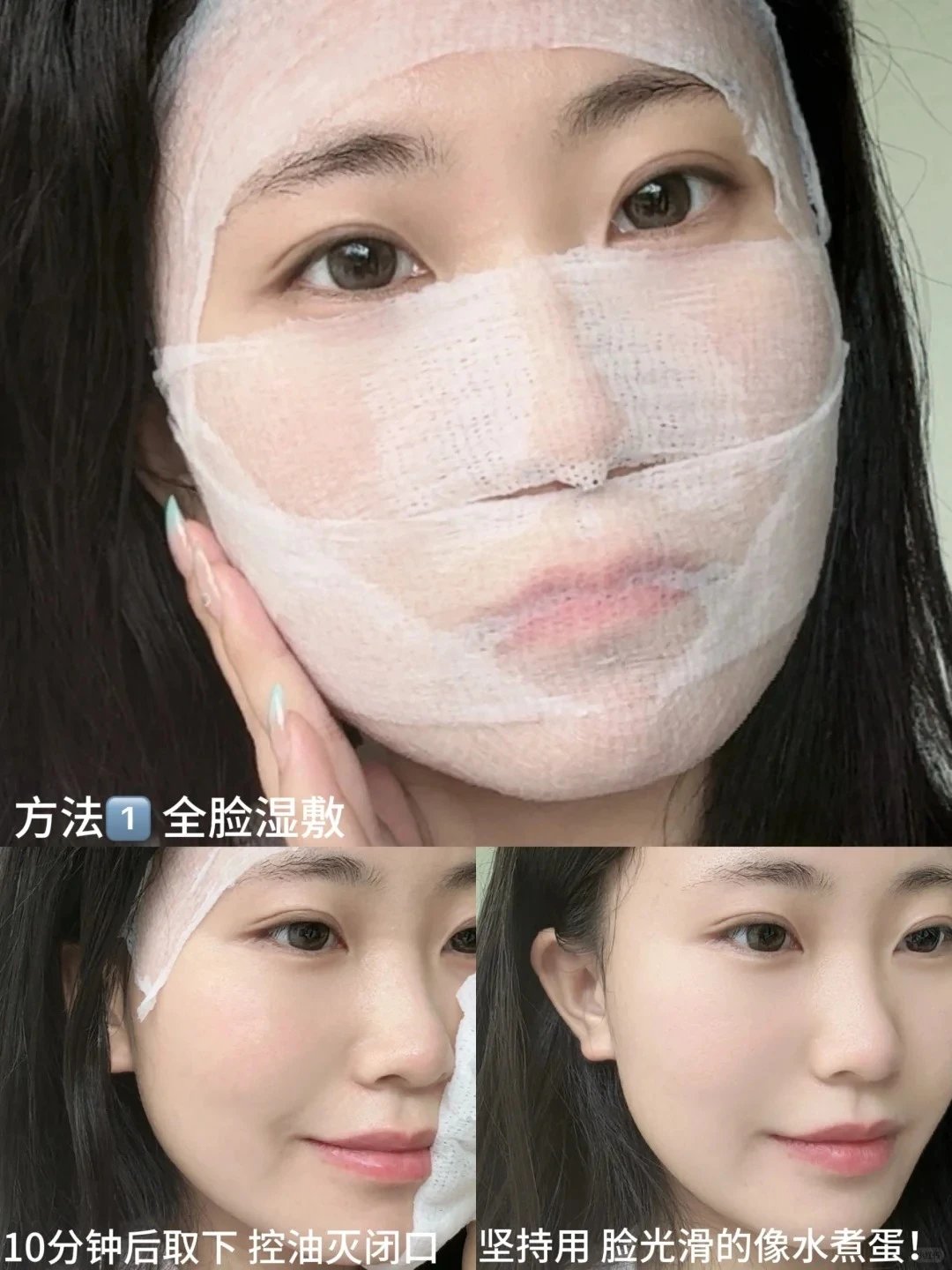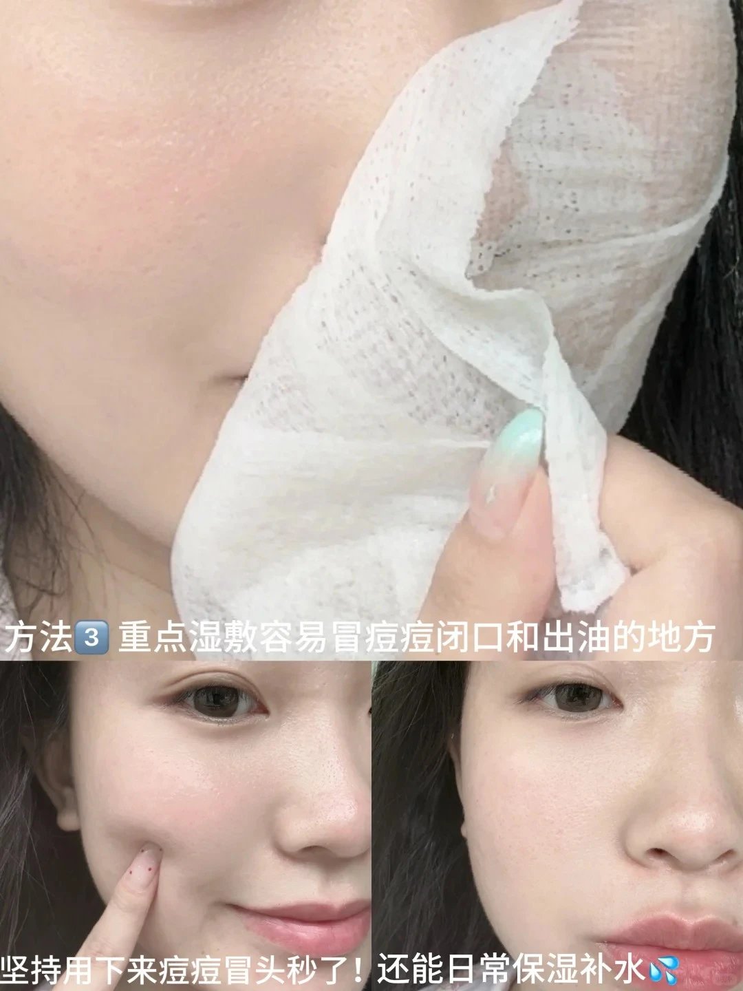 3️⃣把闭口水倒在湿敷棉上,打湿(完全湿透)然后湿敷10分钟