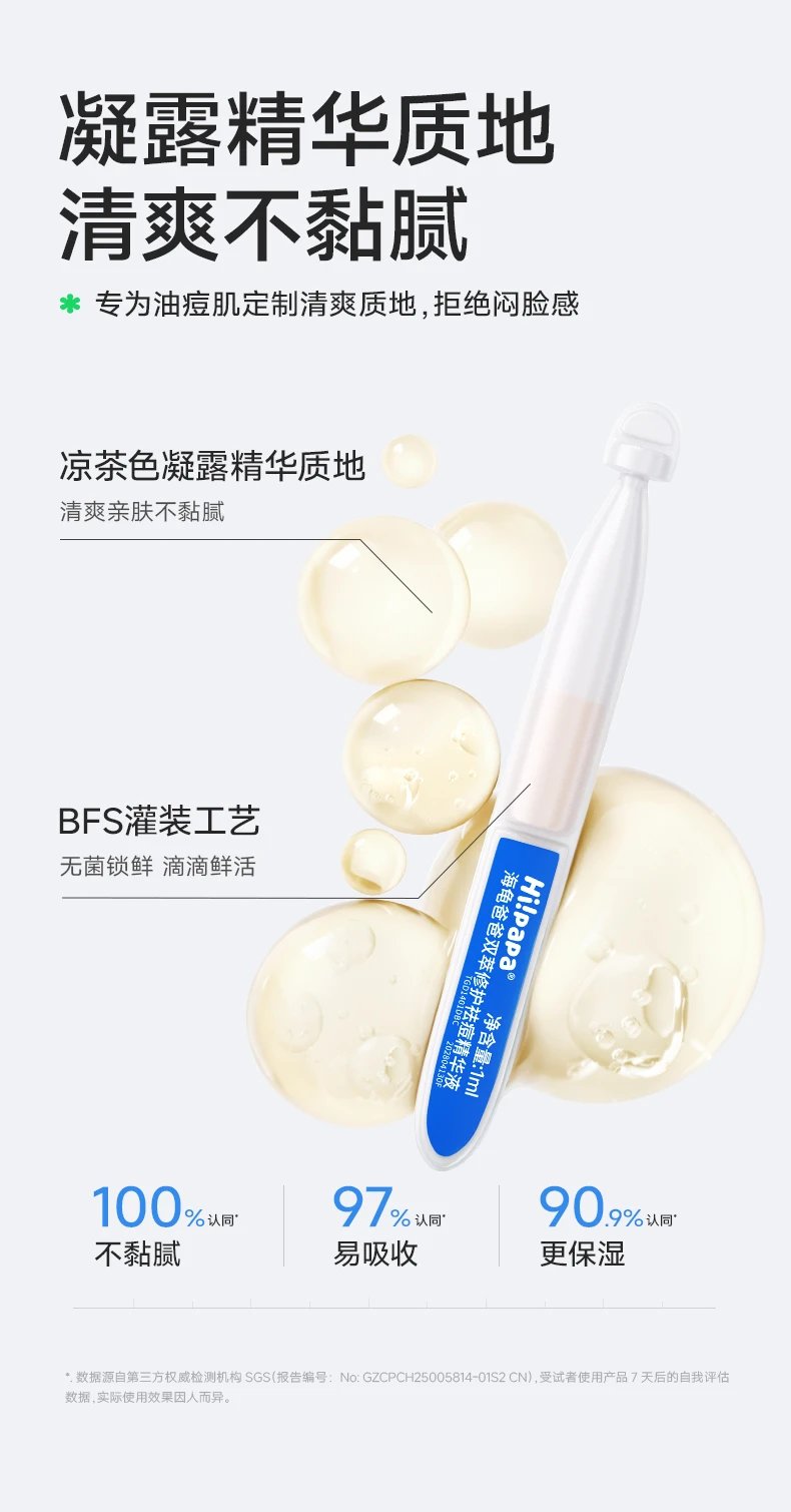 通过双专利积雪草因子来平衡肌肤水油,从而达到预防闭口转痘的效果;