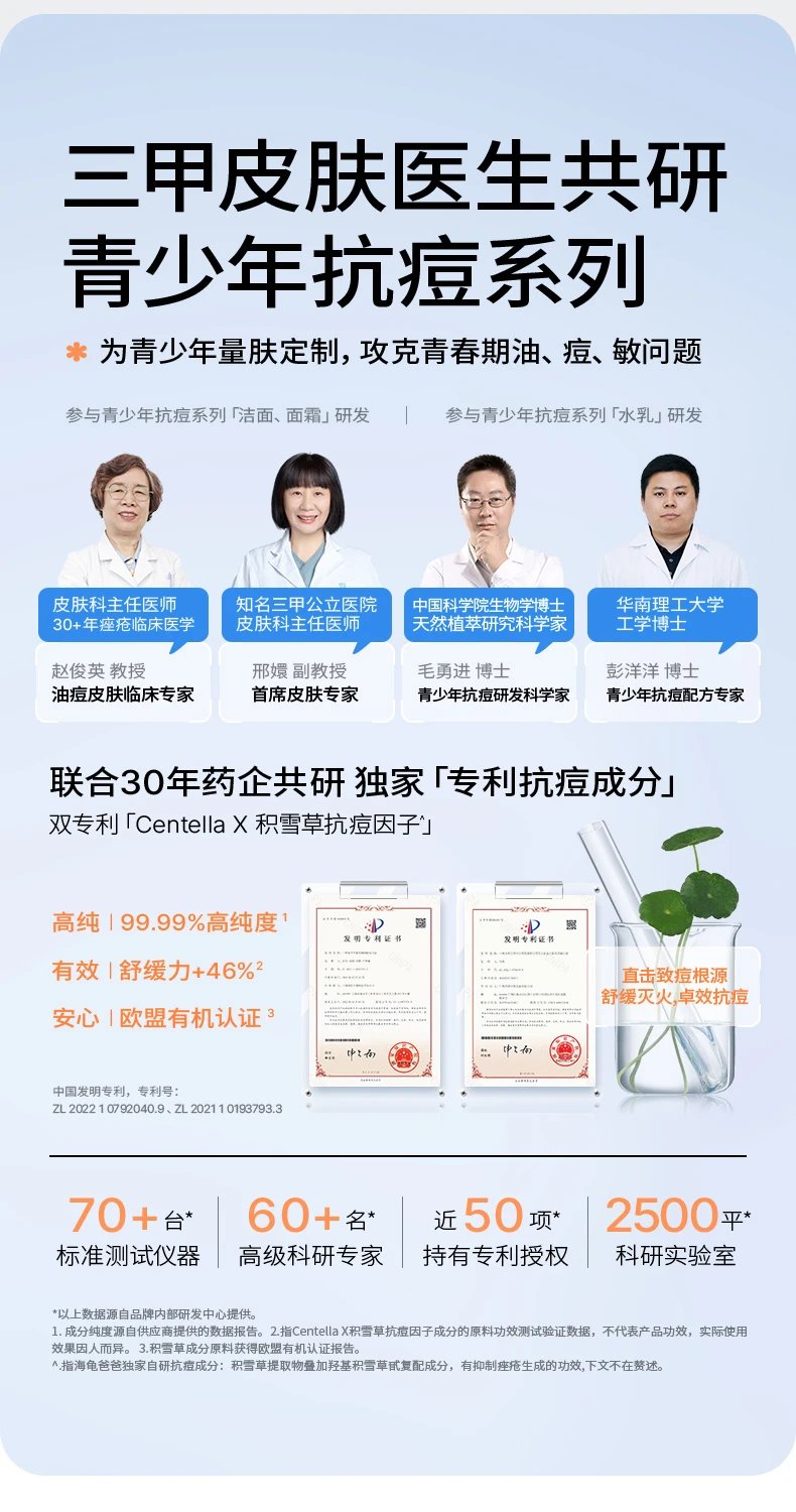 由于青少年肌肤还比较娇嫩,所以海龟闭口水并没有采用主流的刷酸式祛痘法;