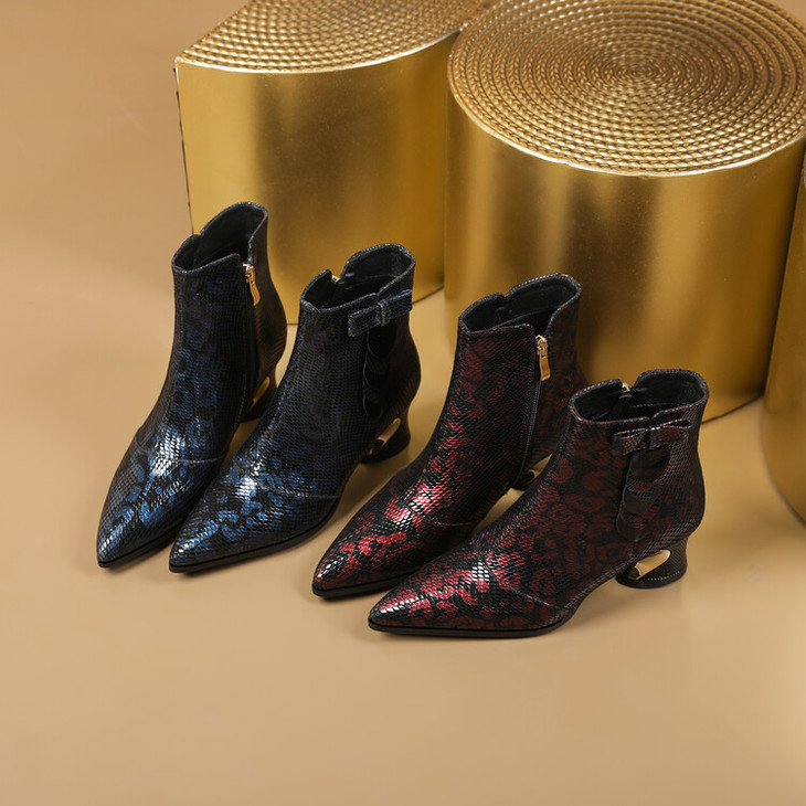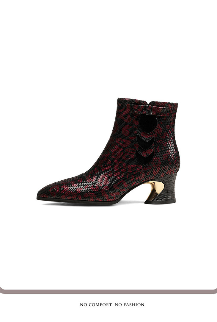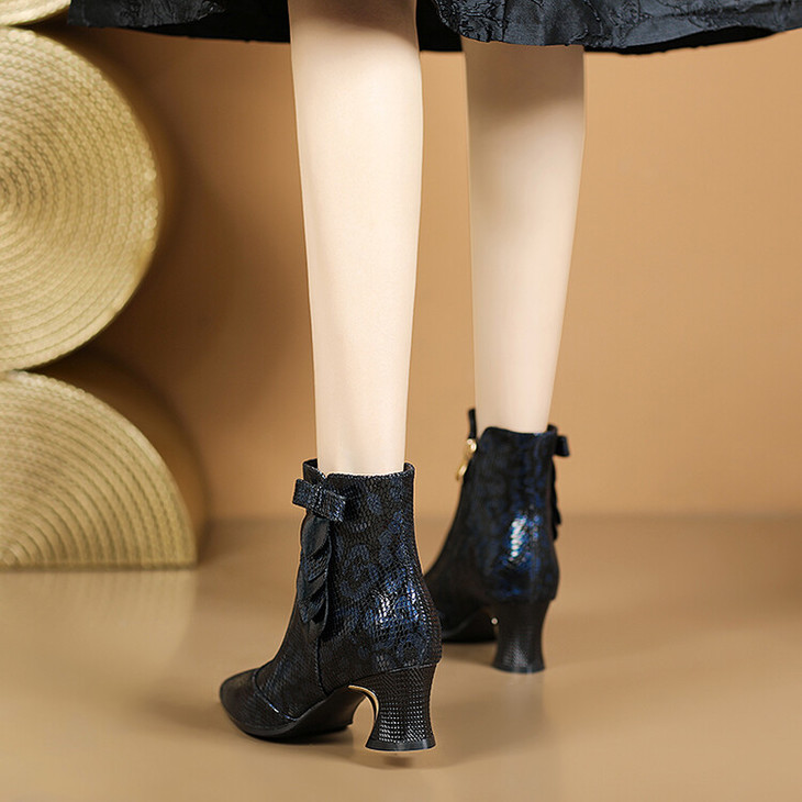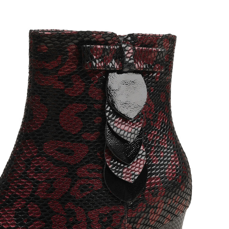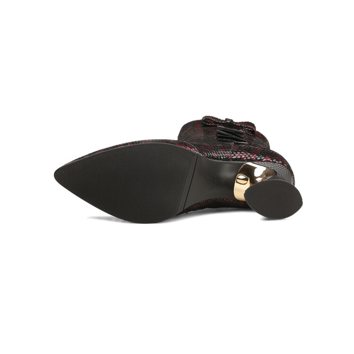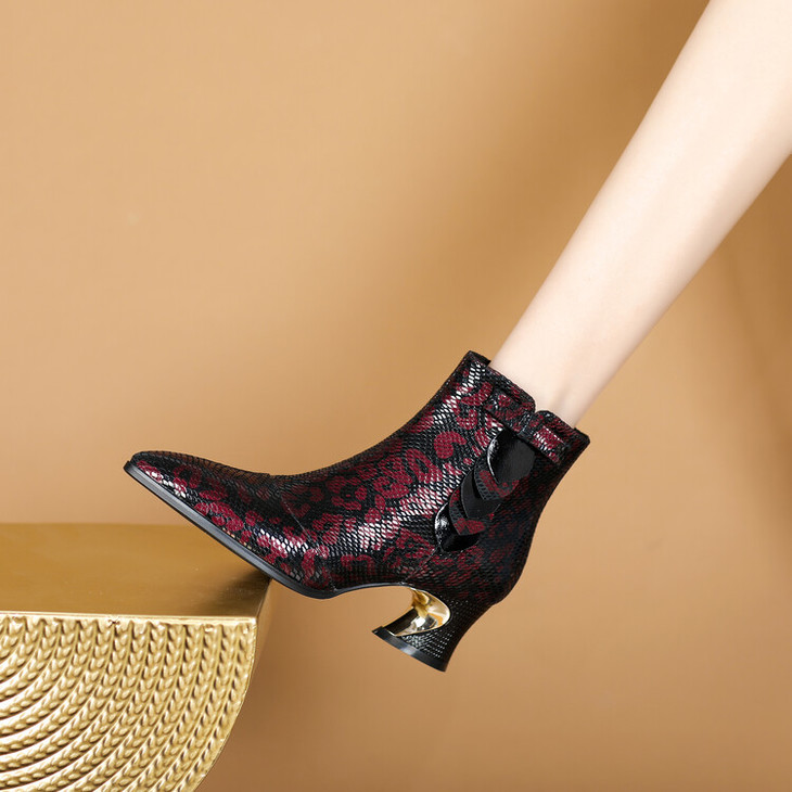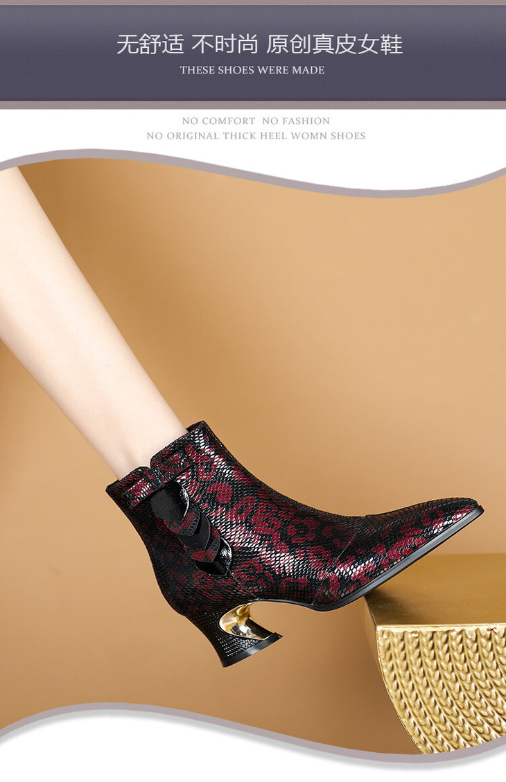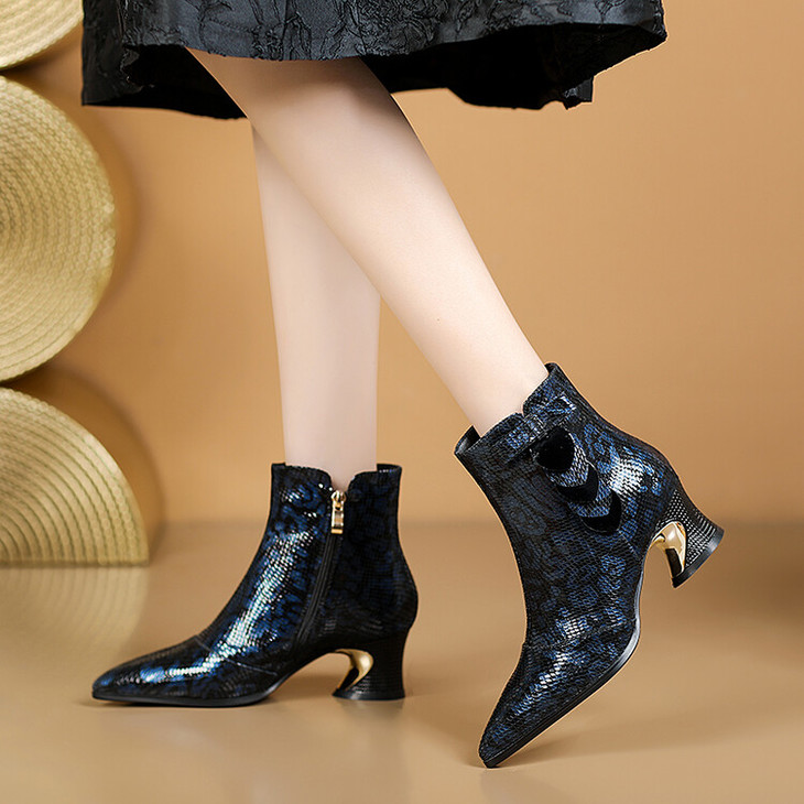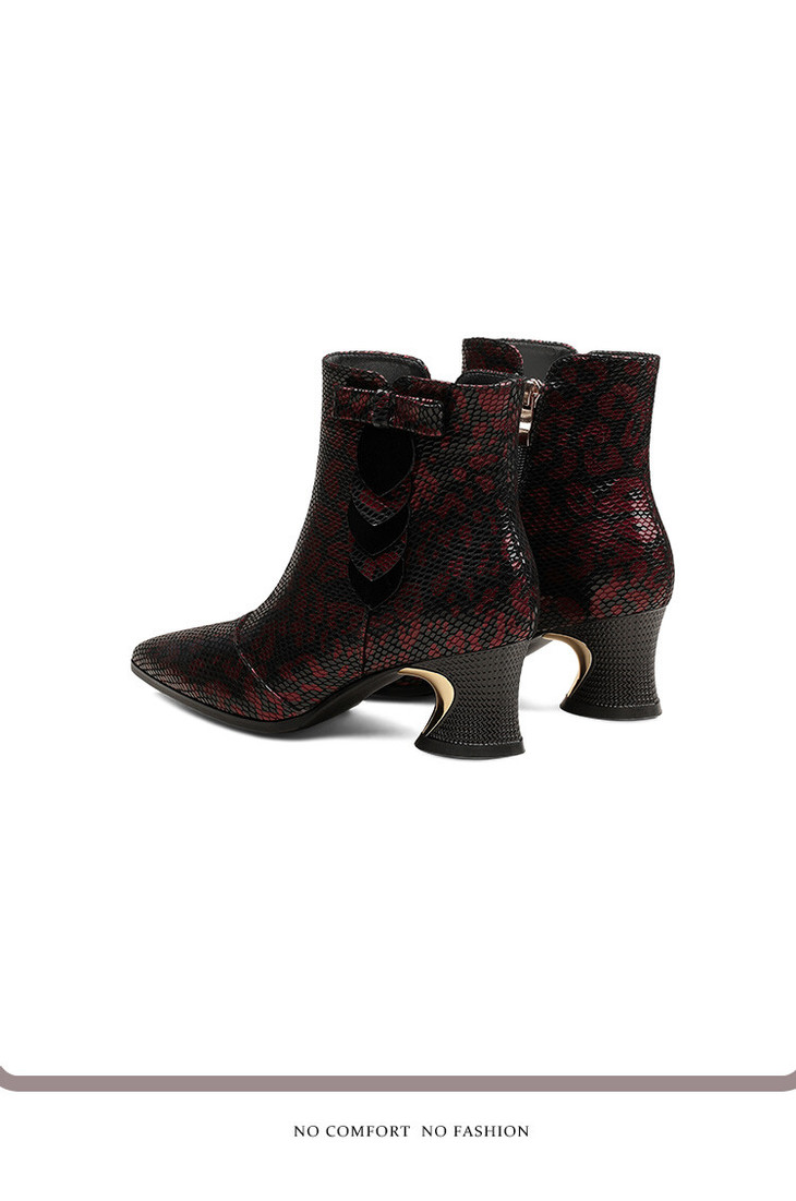 【预售5天】秋冬季新款女鞋尖头粗跟中跟鞋心形压花蝴蝶结短靴子PLGZ&D20-22