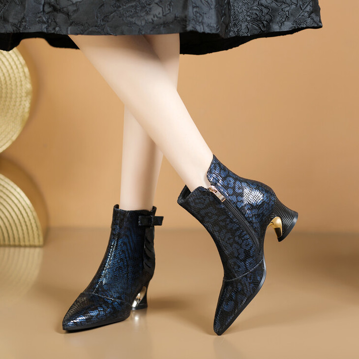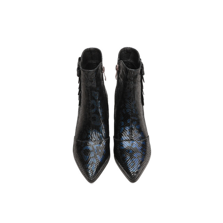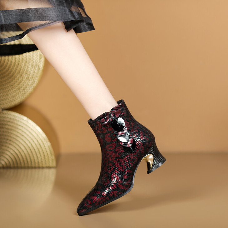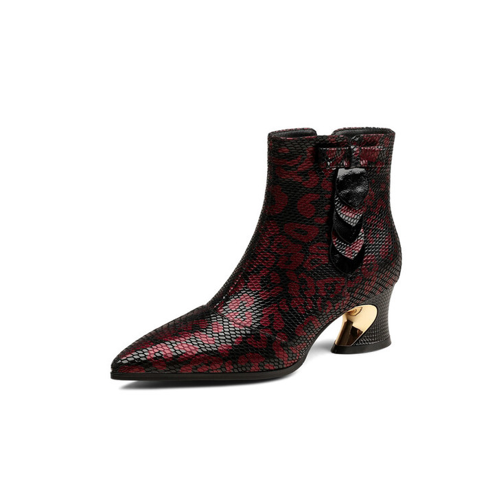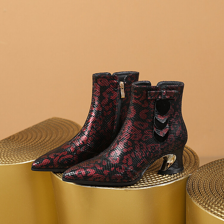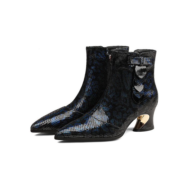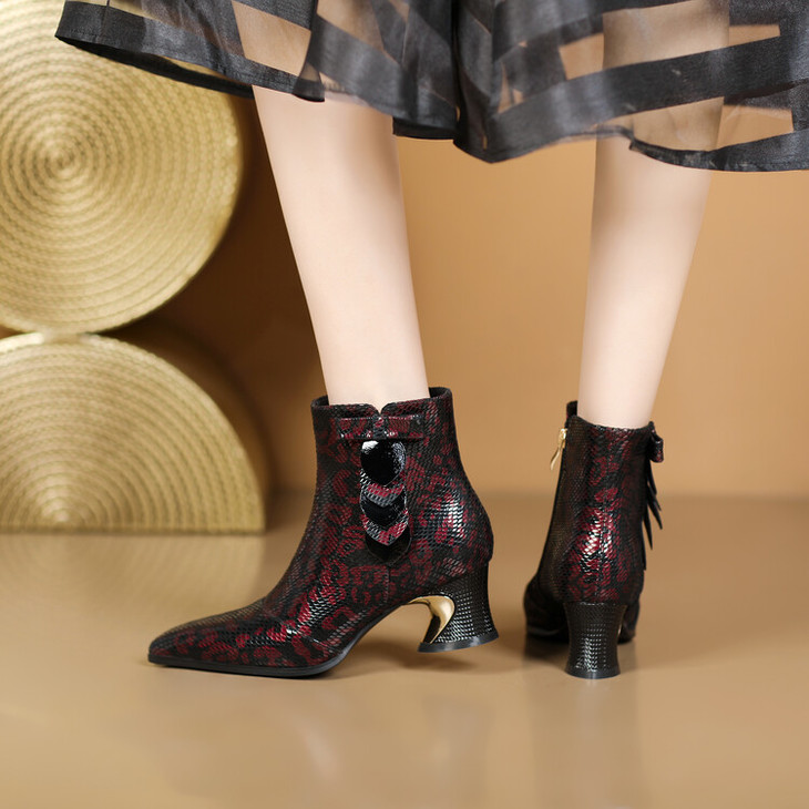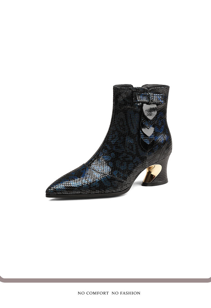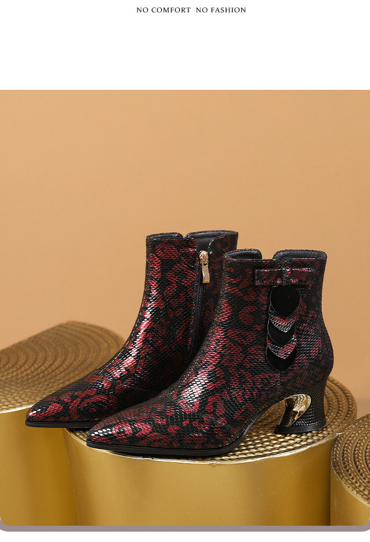 【预售5天】秋冬季新款女鞋尖头粗跟中跟鞋心形压花蝴蝶结短靴子PLGZ&D20-22