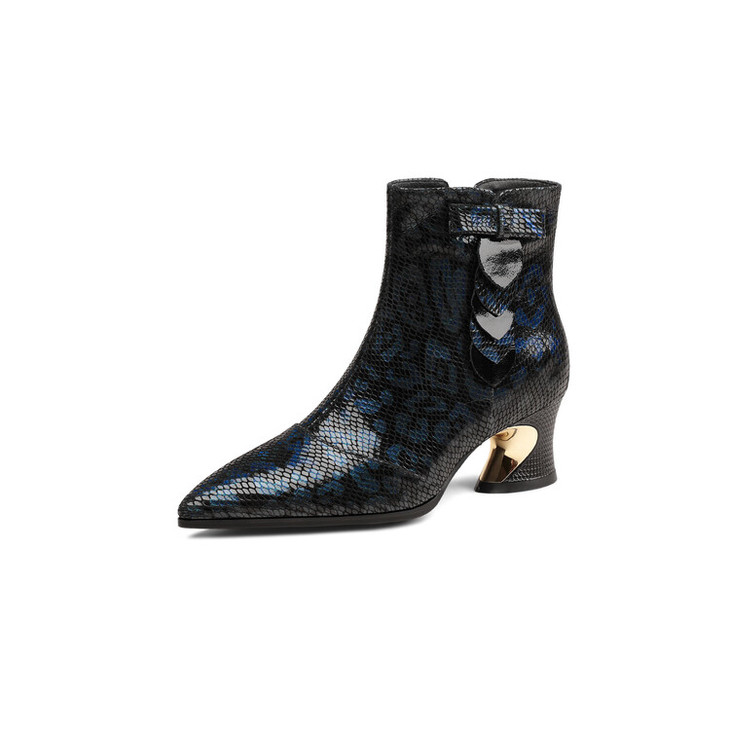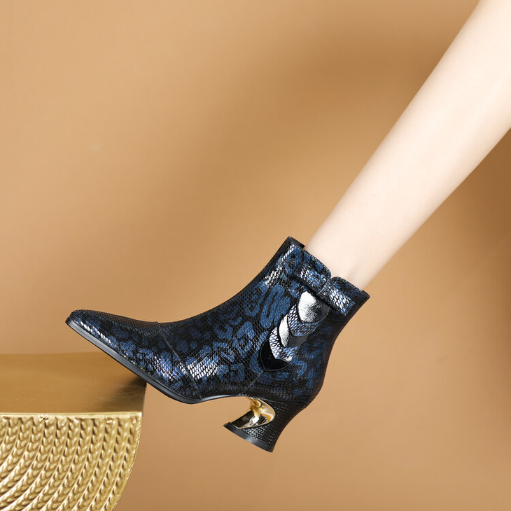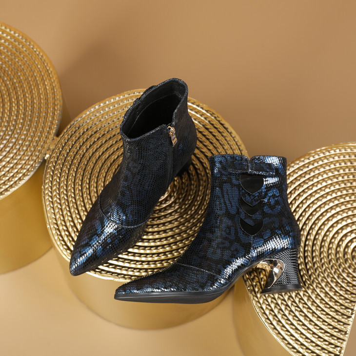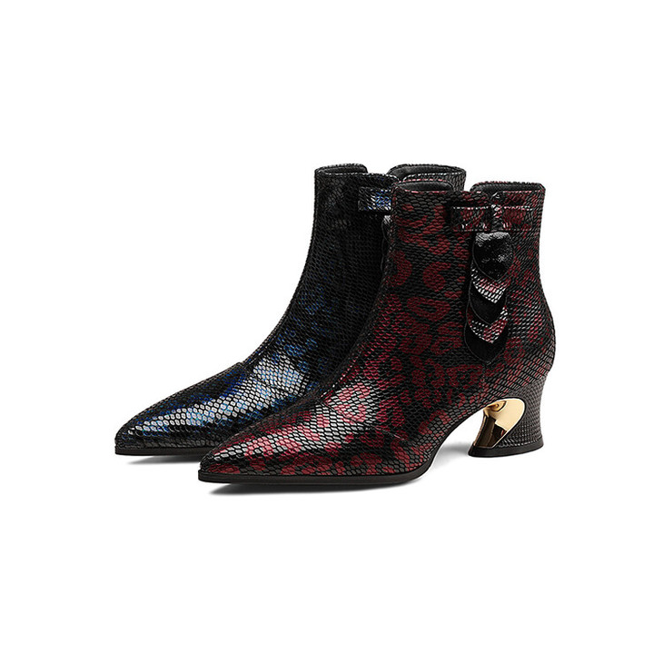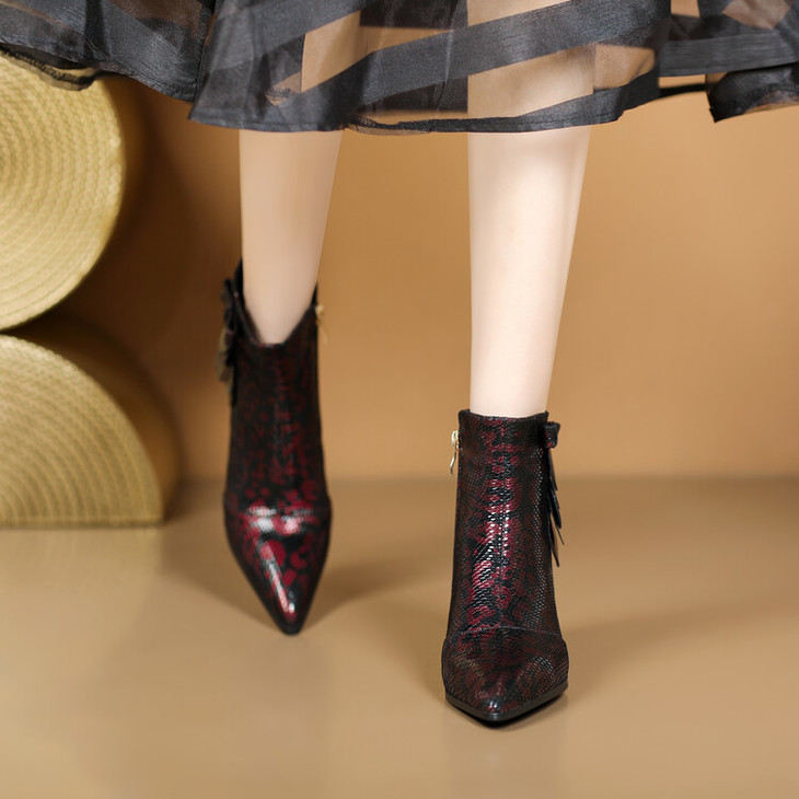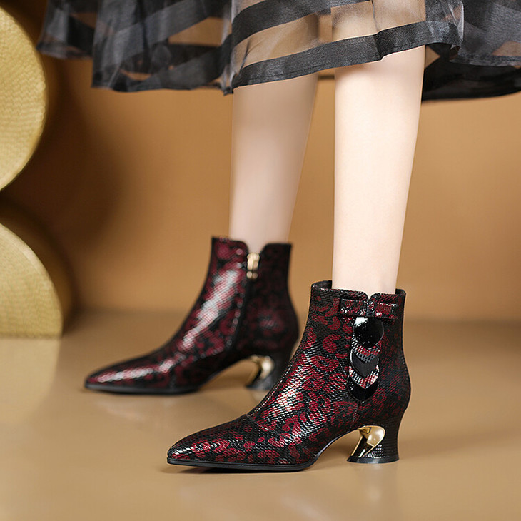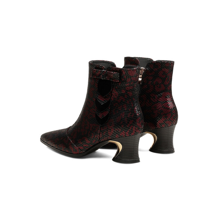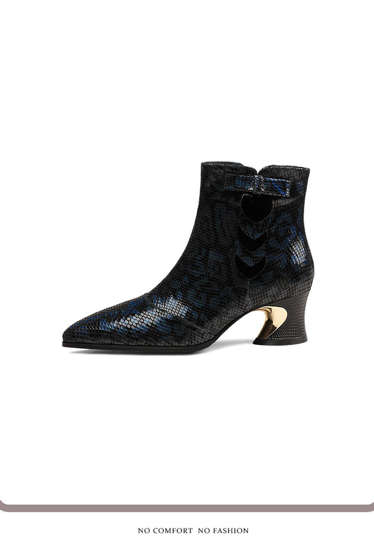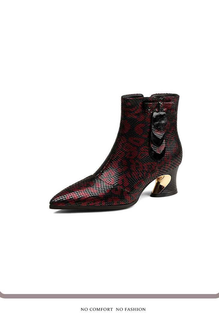 【预售5天】秋冬季新款女鞋尖头粗跟中跟鞋心形压花蝴蝶结短靴子PLGZ&D20-22
