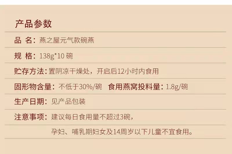 燕之屋即食元气碗燕1380g(138g*10碗)