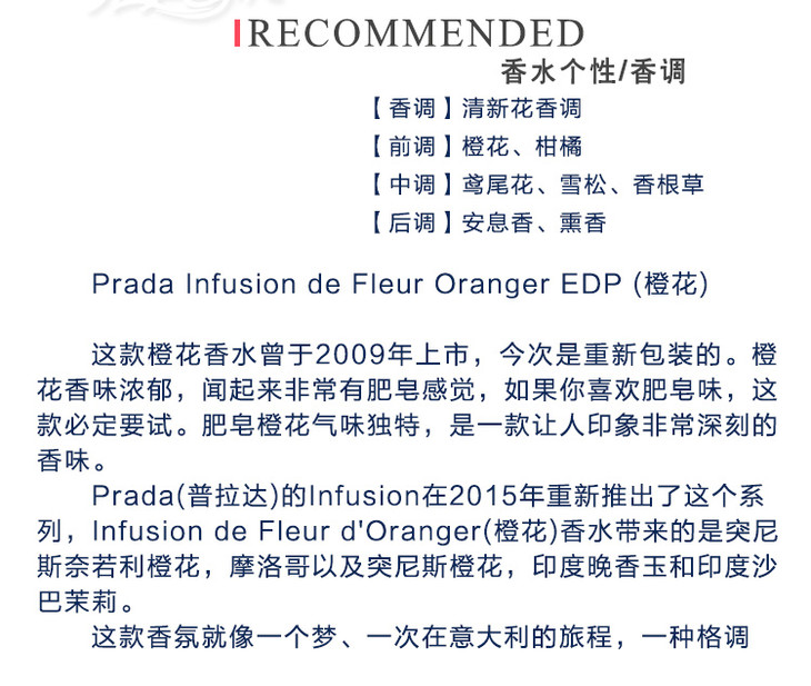 PRADA普拉达橙花白茉香水