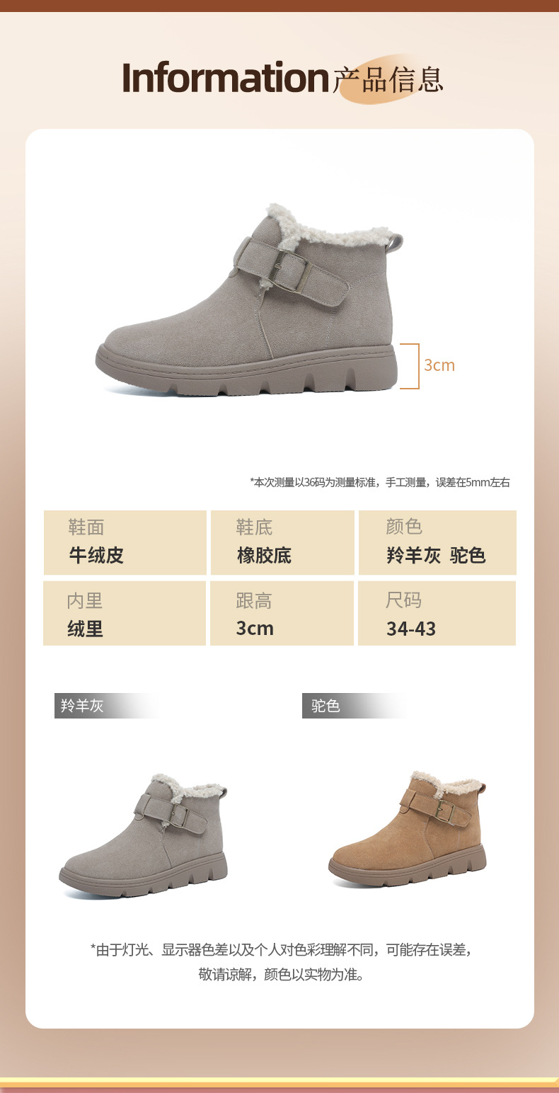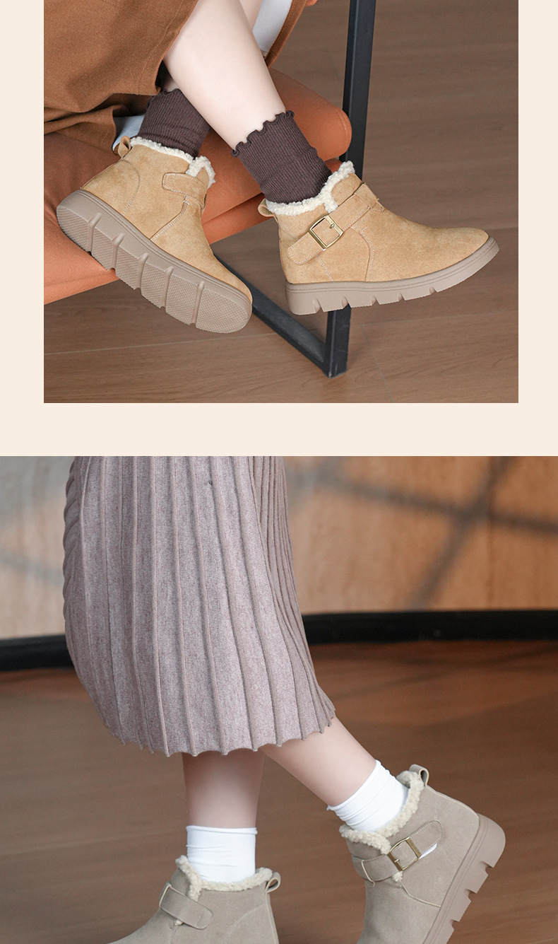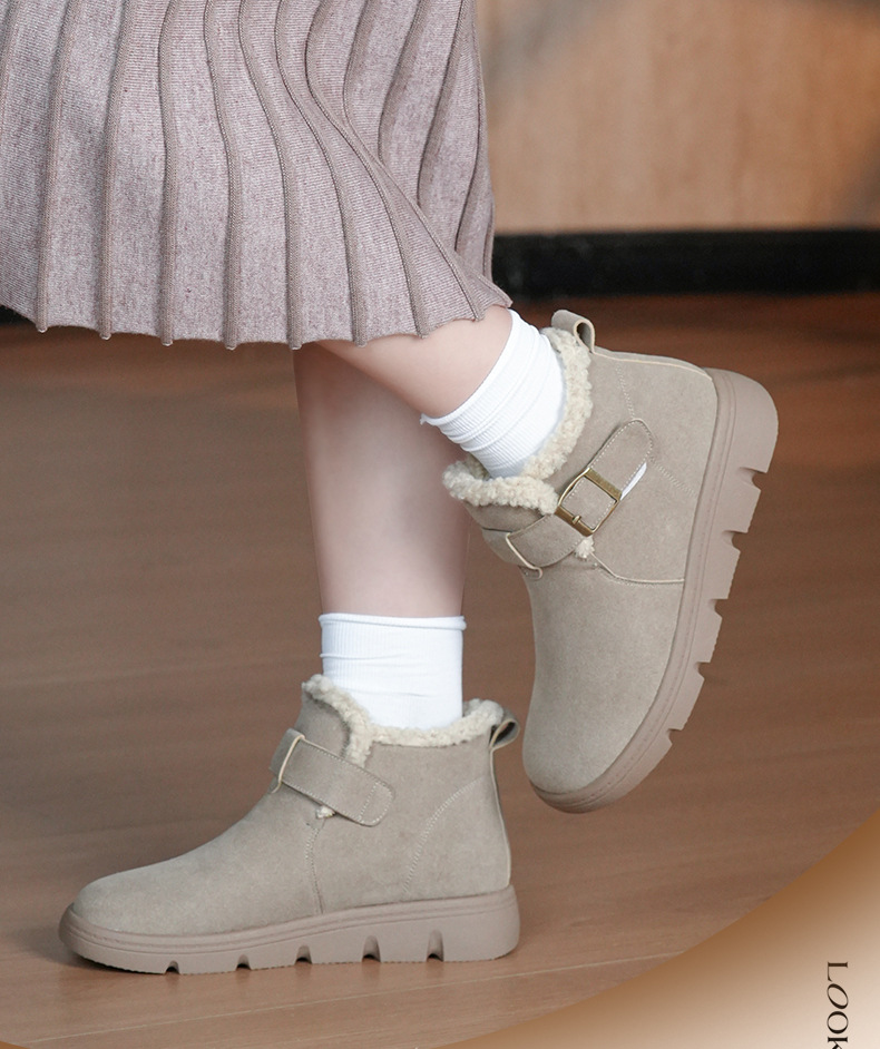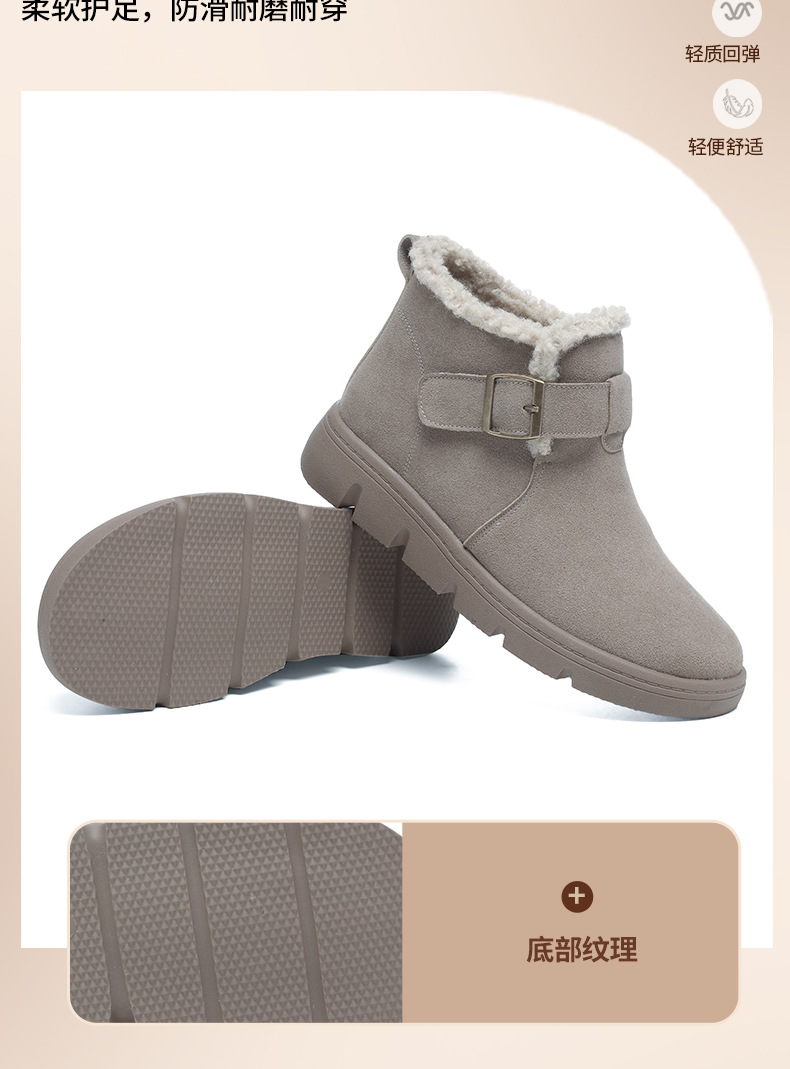 丁摩 磨砂皮雪地靴女防滑棉鞋冬季新款加绒靴一脚蹬套脚加厚棉鞋5ZF-956