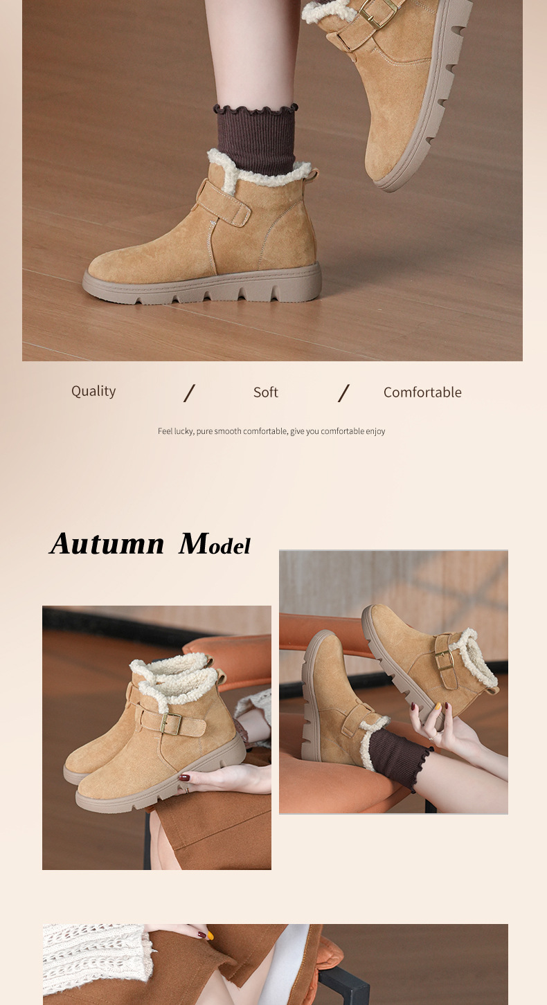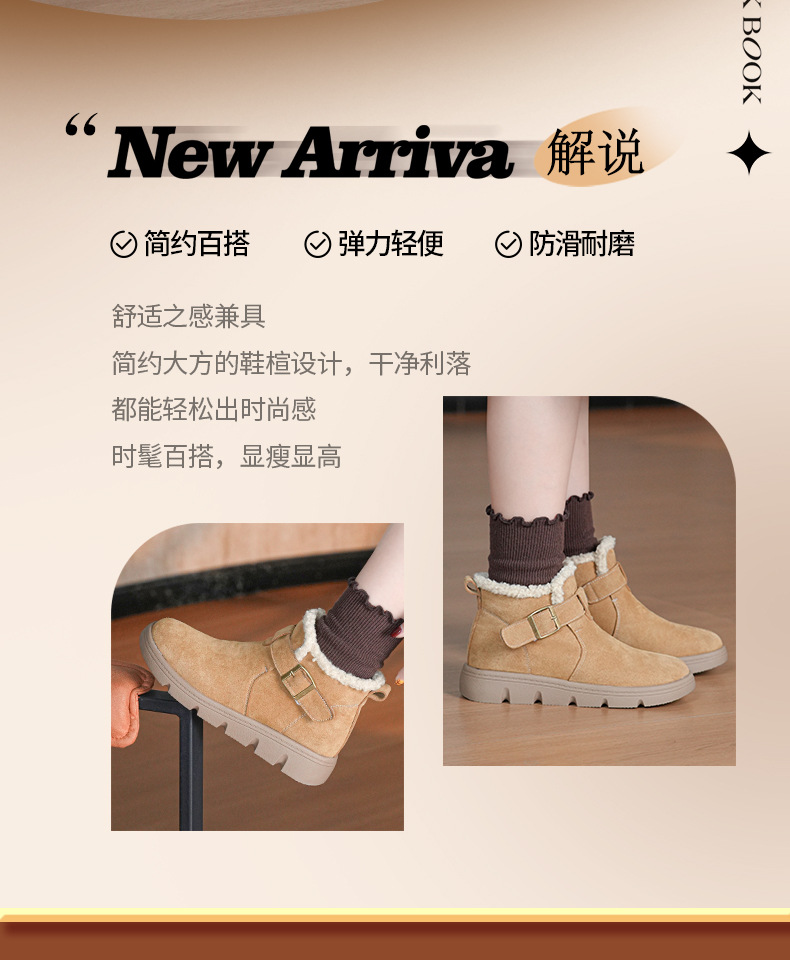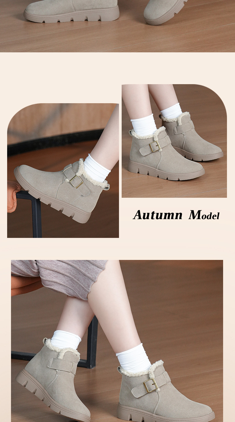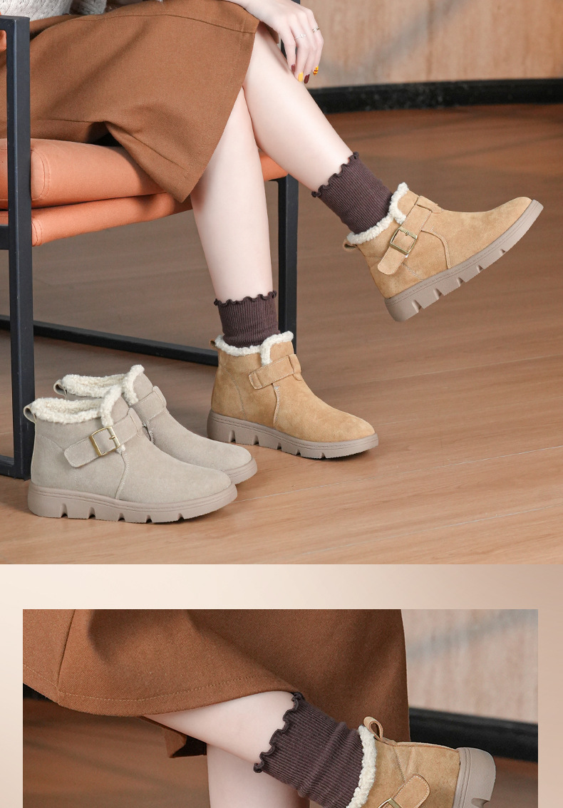 丁摩 磨砂皮雪地靴女防滑棉鞋冬季新款加绒靴一脚蹬套脚加厚棉鞋5ZF-956