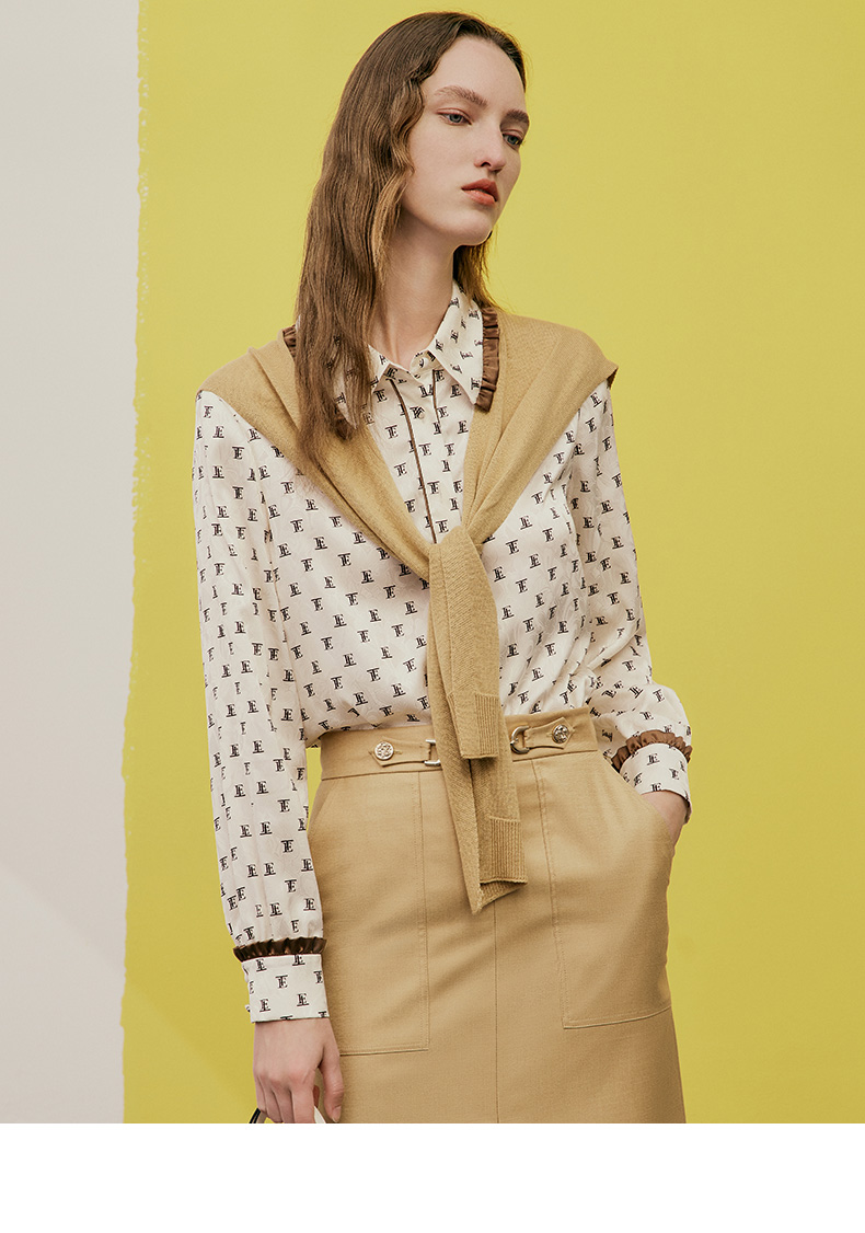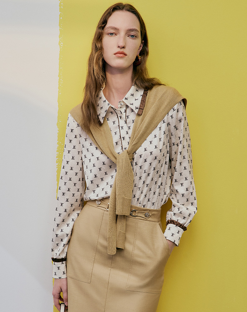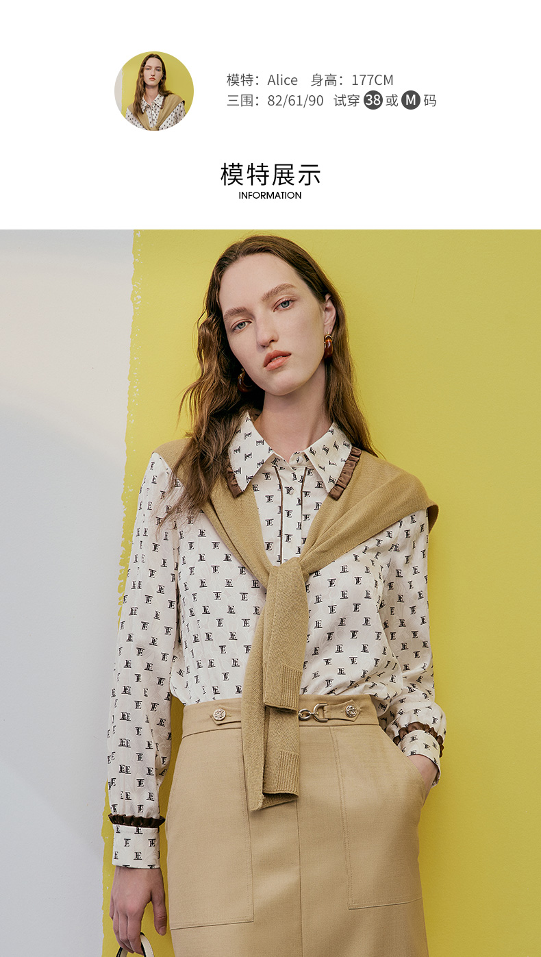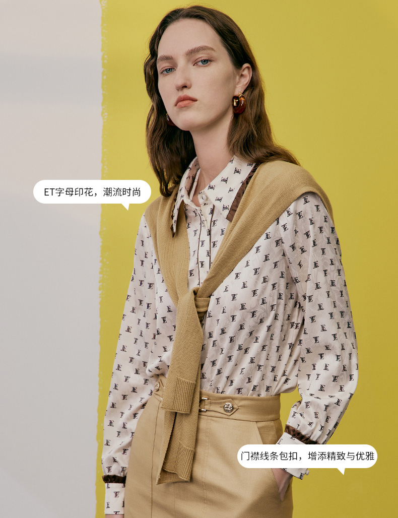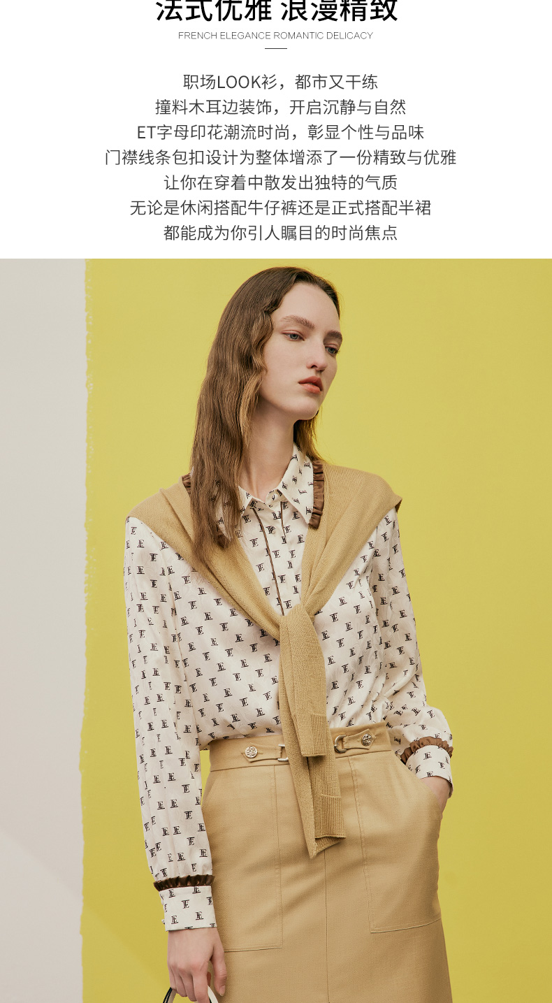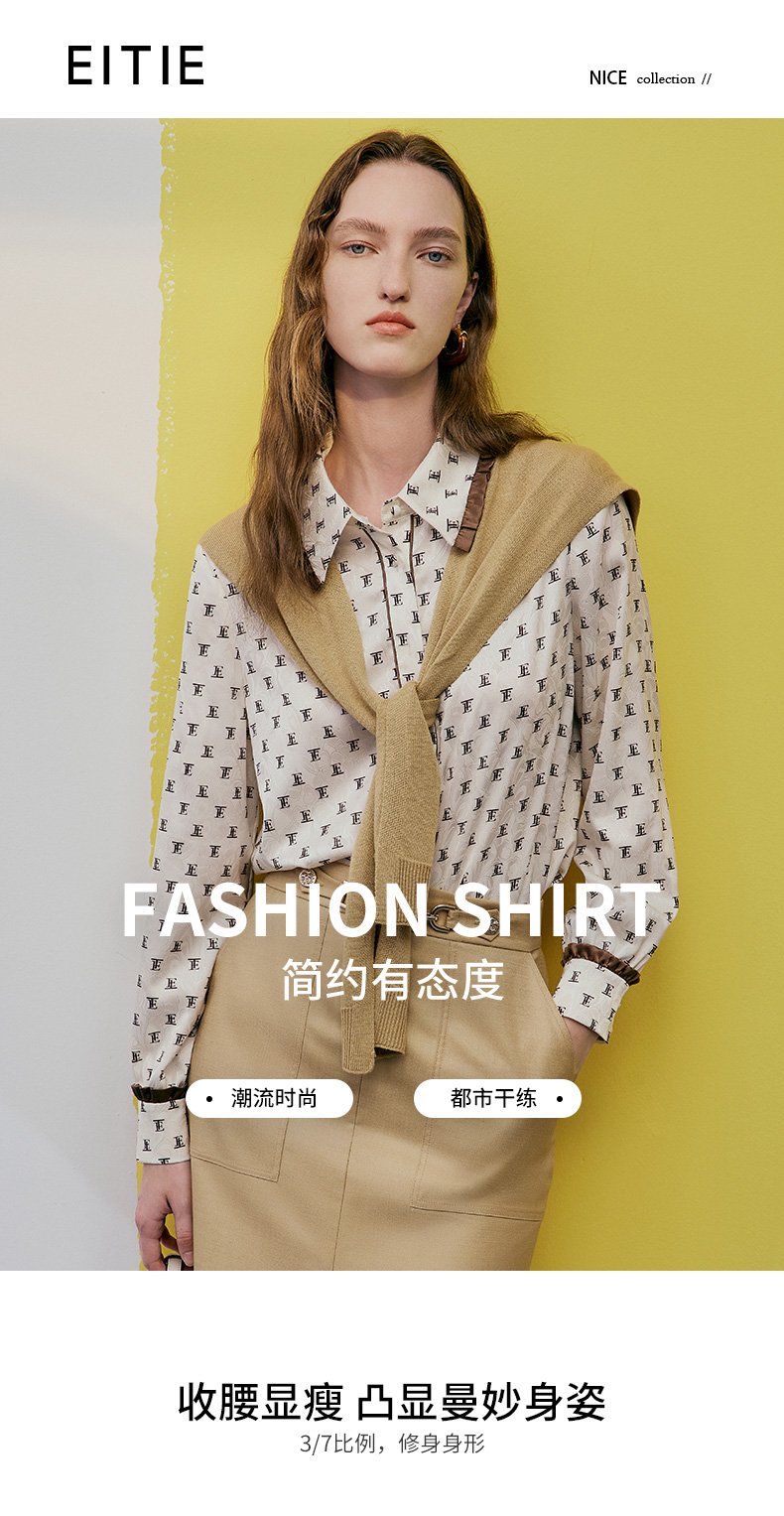 EITIE爱特爱春季新款时尚通勤百搭显瘦印花衬衫女7309006