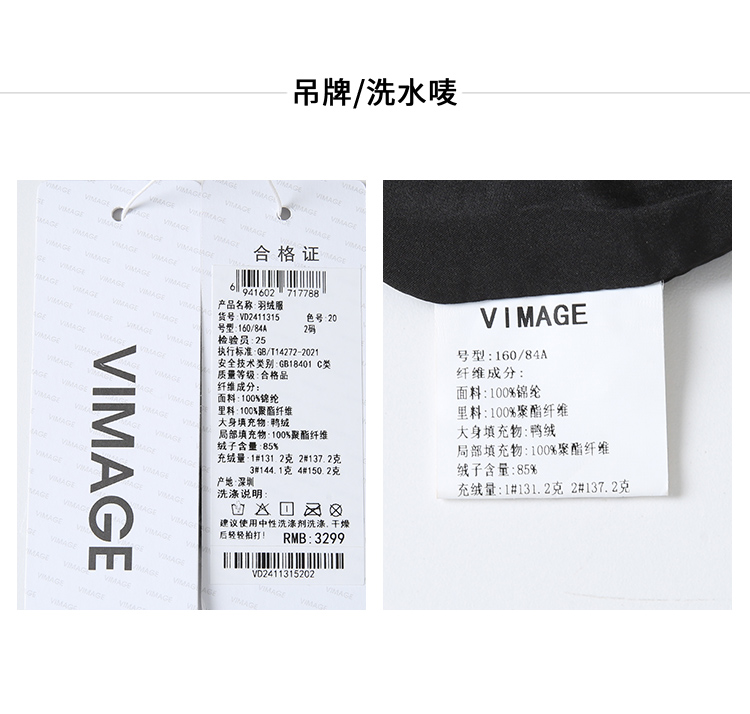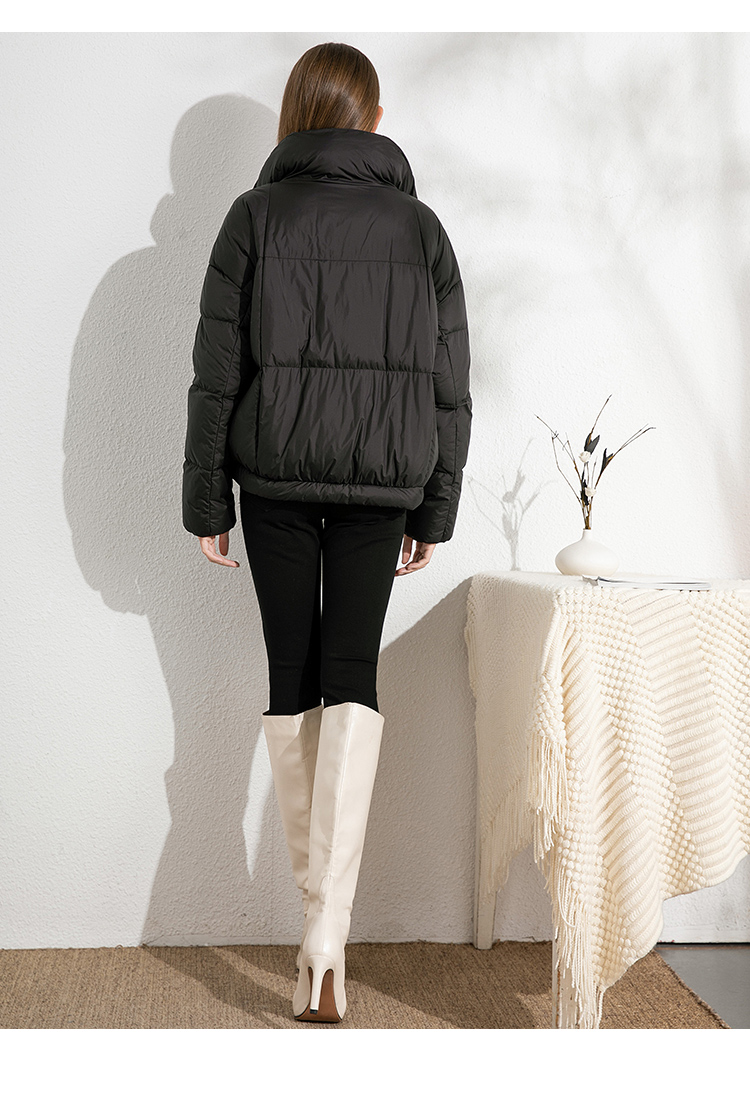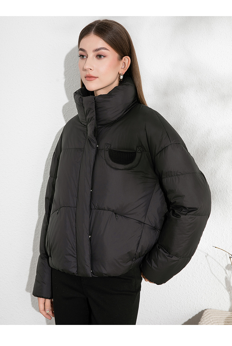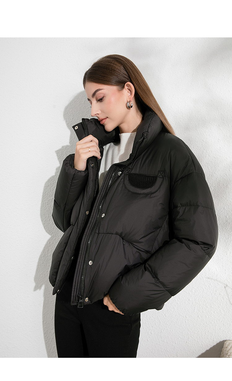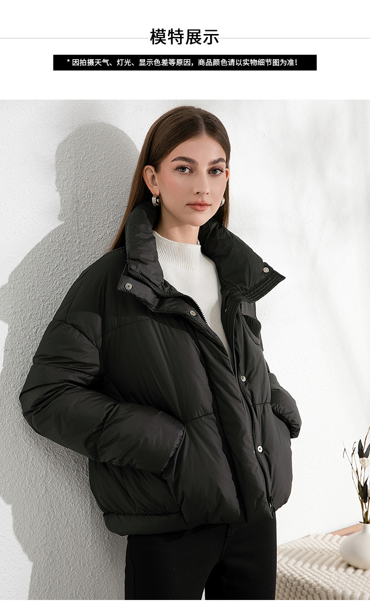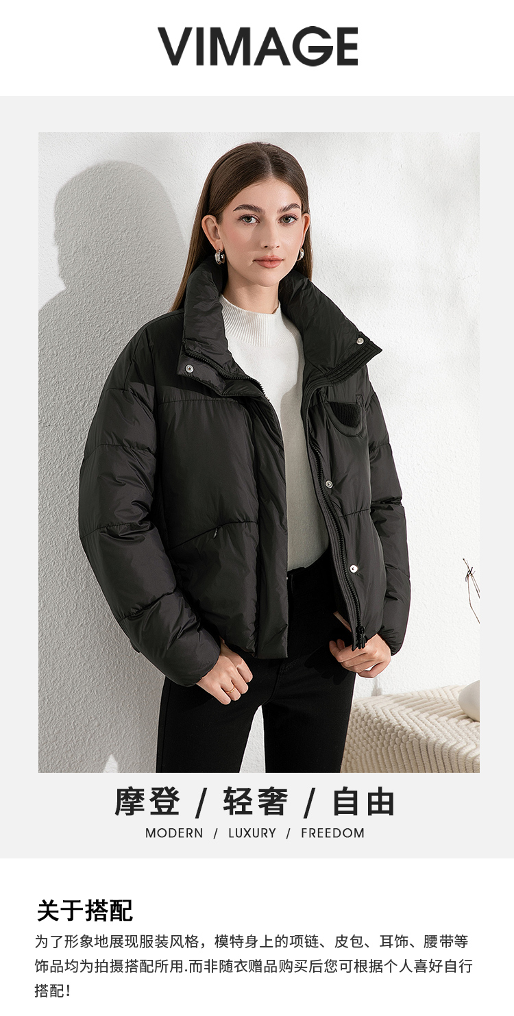 VIMAGE纬漫纪保暖防风立领直筒显瘦黑色短款羽绒服冬季新VD2411315