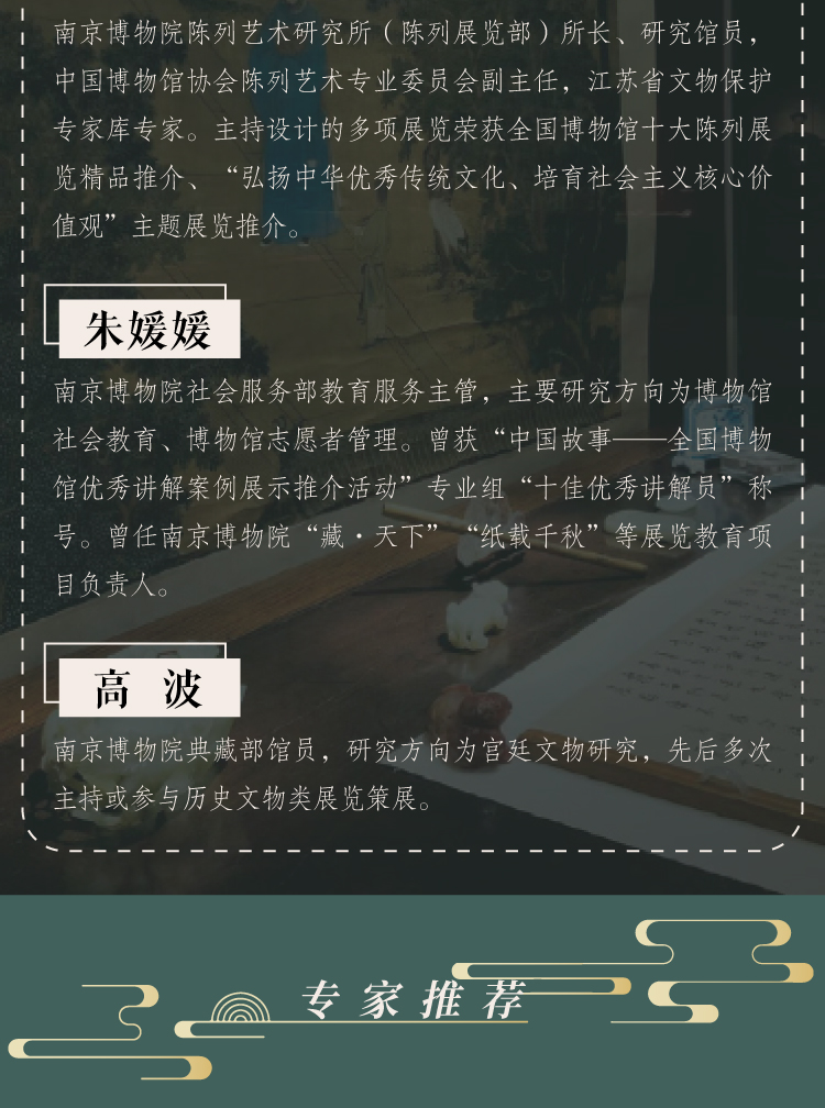 高 波,南京博物院典藏部馆员,研究方向为宫廷文物研究,先后多次主持或参与历史文物类展览策展。