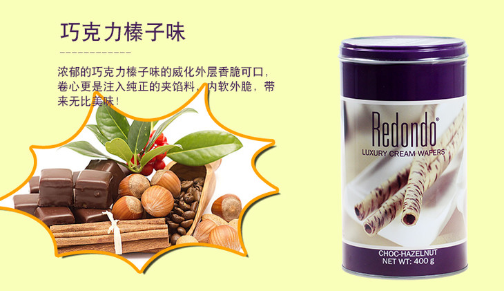 400g瑞丹多牌威化卷心酥(巧克力味)