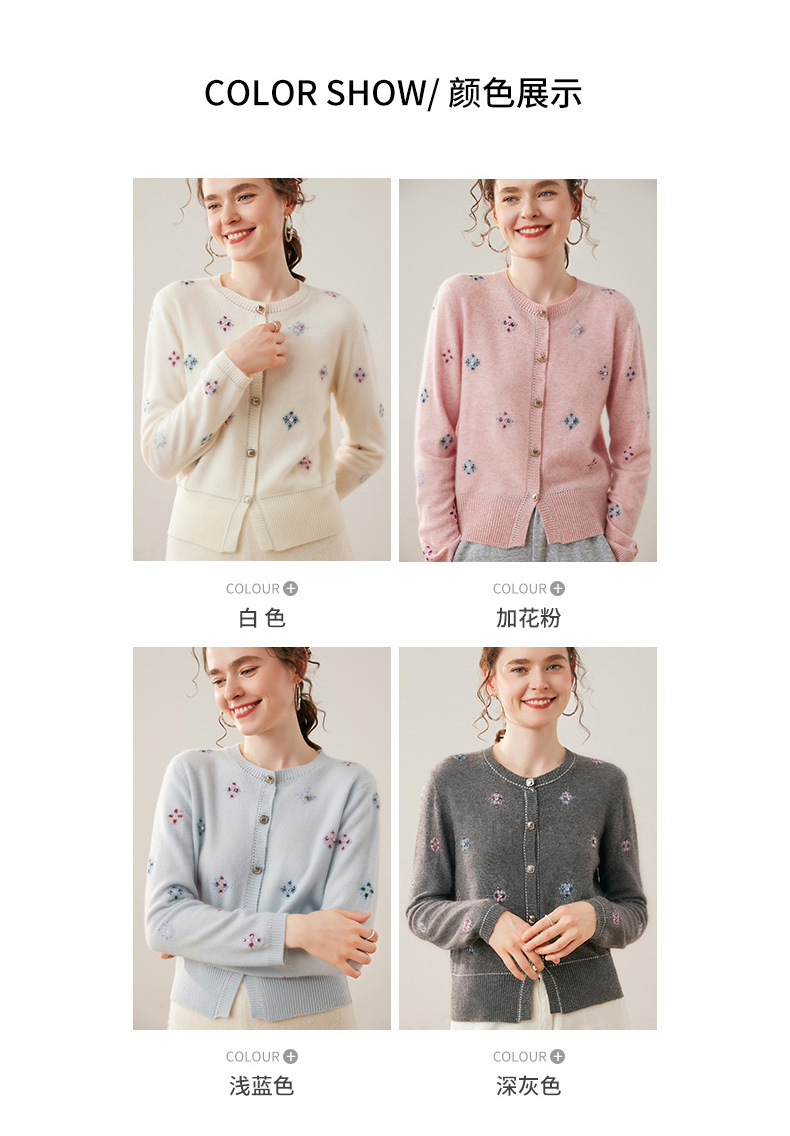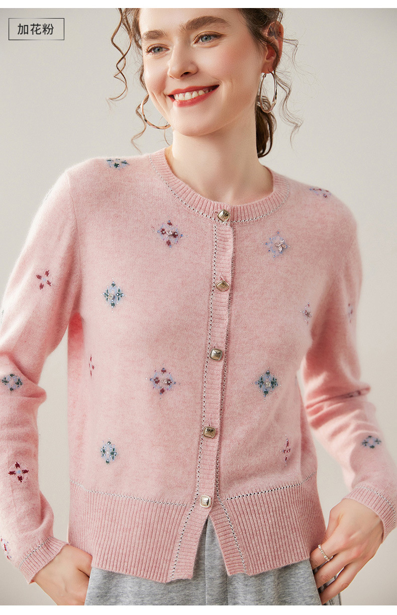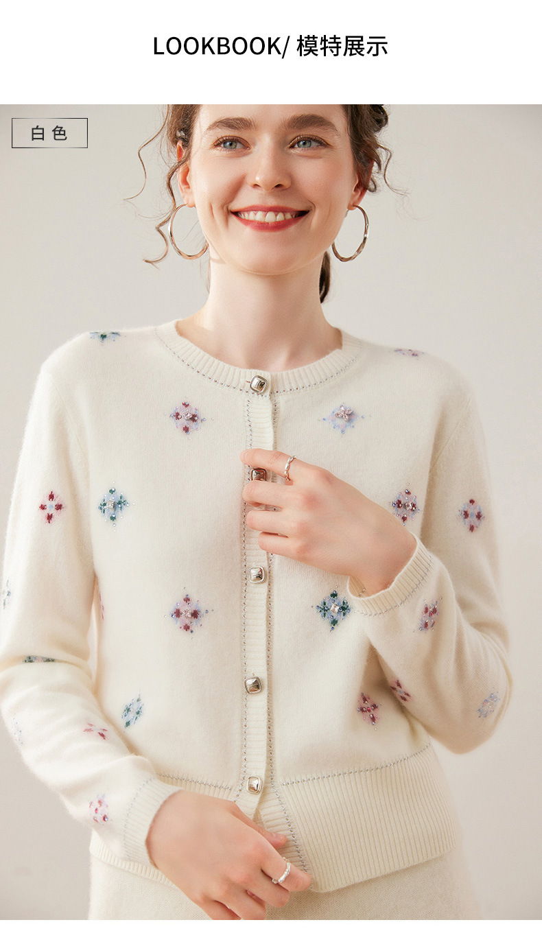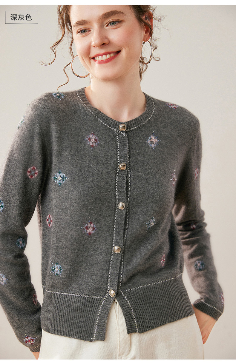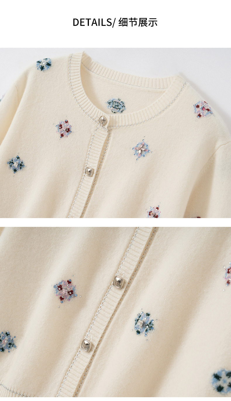 「高货rig」全新升级【铂金会员477/天猫649/差价172】(20648)洛诗琳新款高级感羊绒开衫2025秋冬圆领刺绣花朵针织毛衣