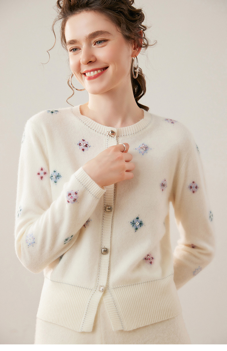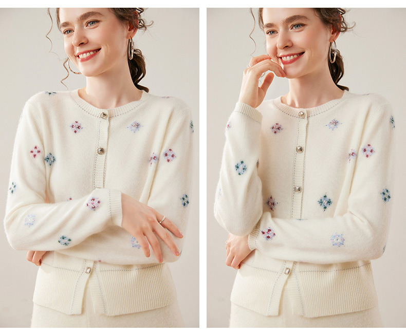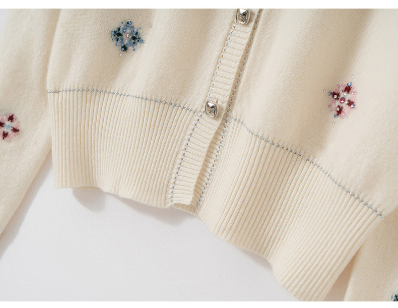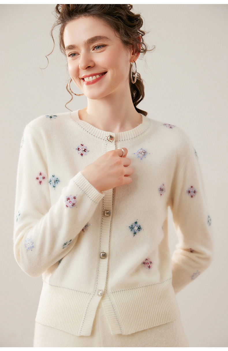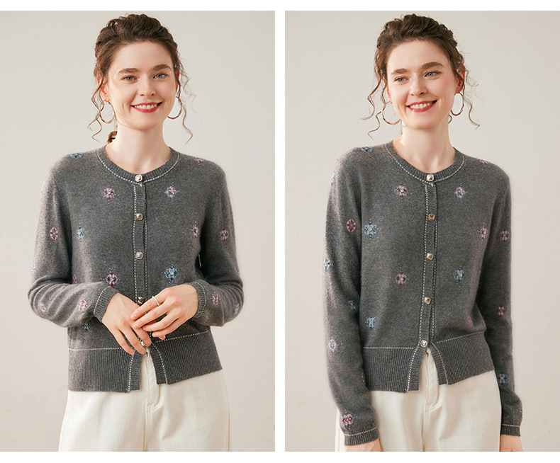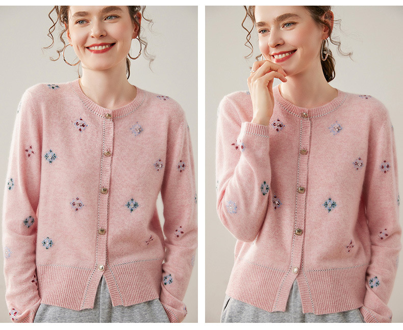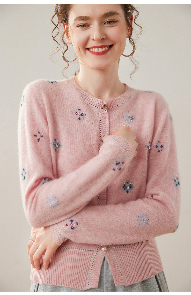 「高货rig」全新升级【铂金会员477/天猫649/差价172】(20648)洛诗琳新款高级感羊绒开衫2025秋冬圆领刺绣花朵针织毛衣