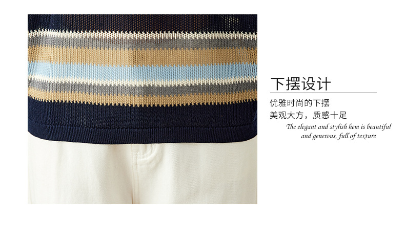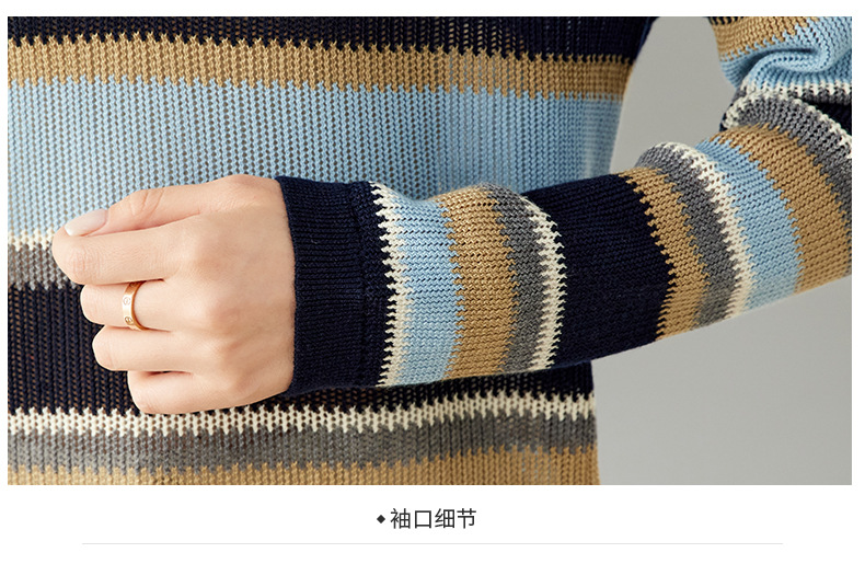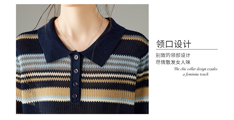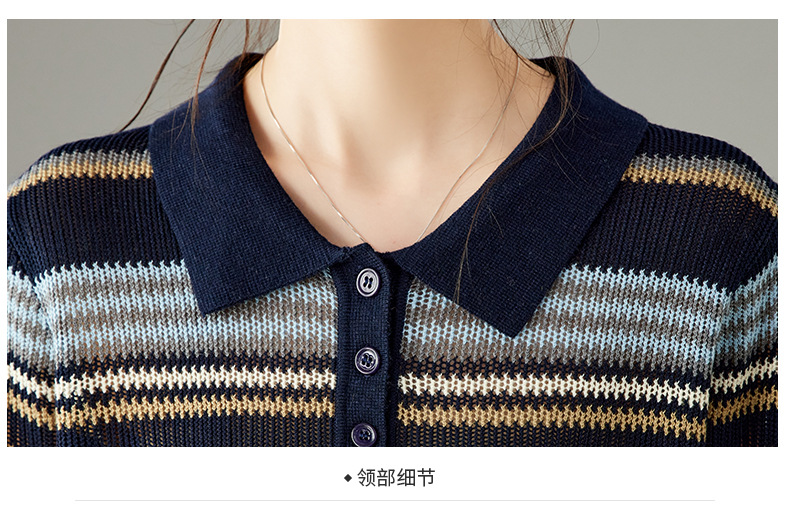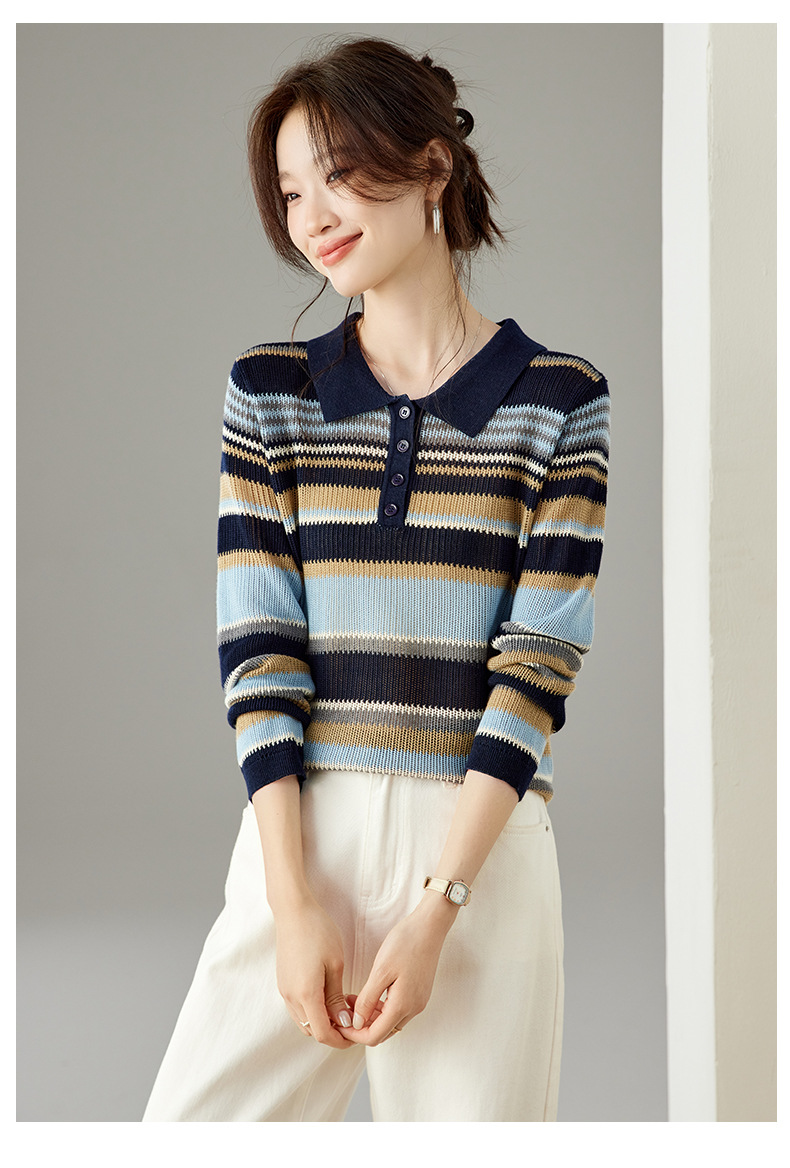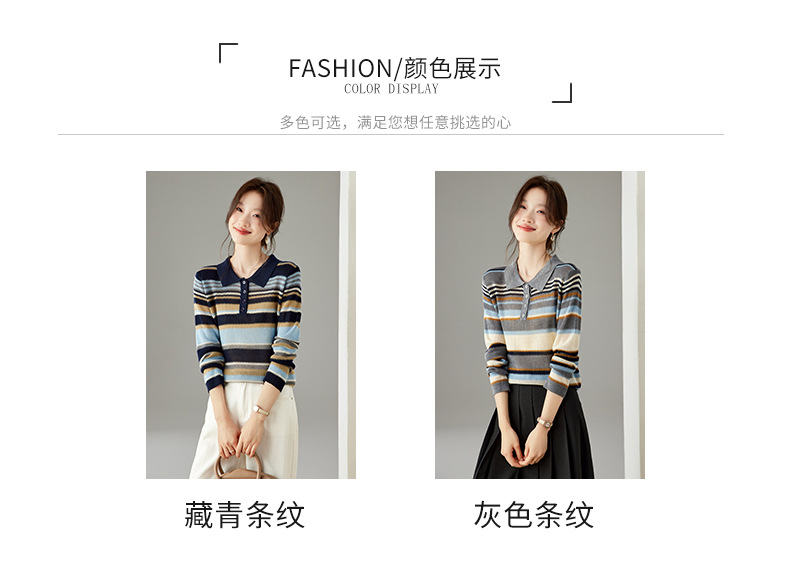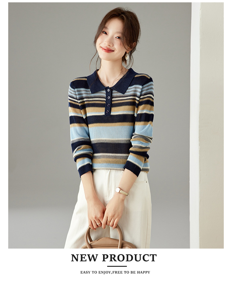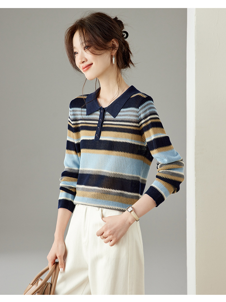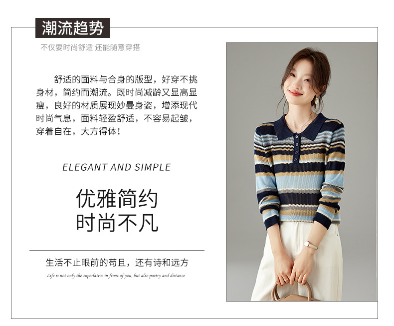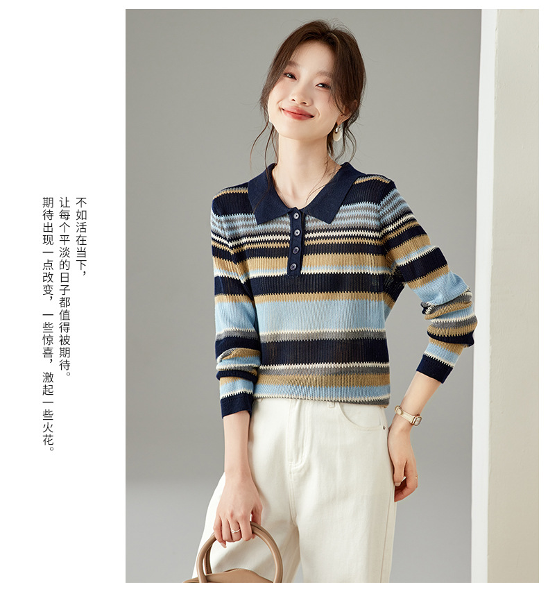 SC35-25161-168 2025秋冬新款翻领撞色条纹针织衫女薄衬衫领宽松线衣外穿女打底衫
