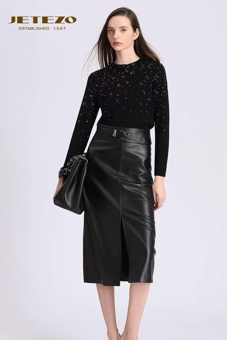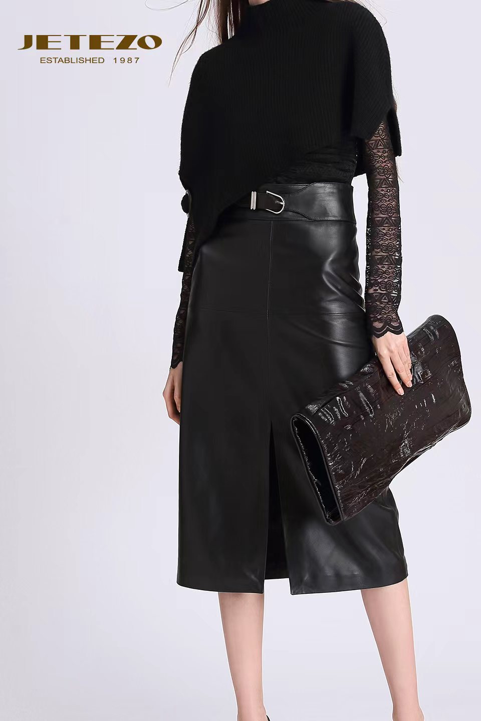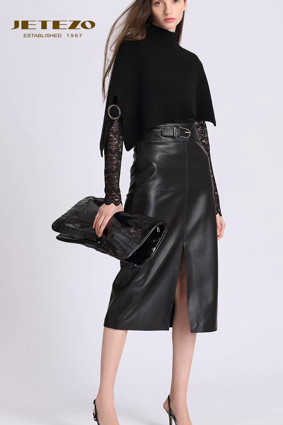 裘堤婼JETEZO 哑光轻奢前卫皮质半裙BD15509C1