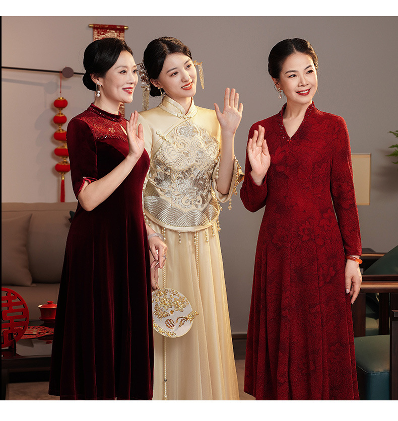 MLY春装新款婚宴中长款连衣裙气质女装